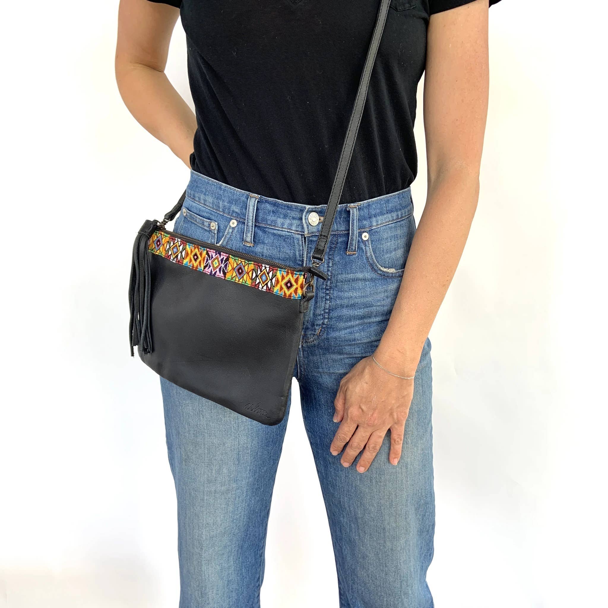 Combinando tecidos guatemaltecos exclusivos com couros de alta qualidade, colaboramos com artesãos para projetar e produzir acessórios exclusivos. Em um mundo onde o valor foi colocado na velocidade e quantidade em vez da qualidade, damos um passo atrás para celebrar o artesanato tradicional. Com produtos exclusivos tecidos à mão de qualidade excepcional preparados por mulheres celebrando sua herança, nossa coleção reflete esses ideais. -Robin e Alex