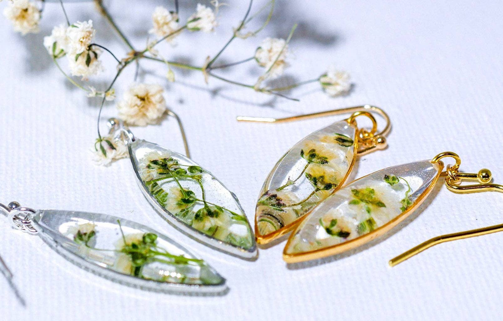 Criamos belas jóias e decoração usando flores prensadas. Nossas peças são feitas de flores que esperamos que evoquem boas lembranças de casa. Bluebonnets, papoulas, pincéis indianos... os detalhes da paisagem das nascentes e verões do Texas. Cada peça é feita à mão em nosso estúdio doméstico com flores que cultivamos ou coletamos em nossa fazenda familiar em Valley Mills, Texas. Preservamos nossas flores usando resina ou vidro, e usamos apenas materiais que sabemos que durarão o teste do tempo. Temos nossas mãos em todas as etapas do processo - desde o plantio das sementes até a colheita, prensagem e criação com nossas flores - despejamos nosso amor e suor em nosso trabalho.