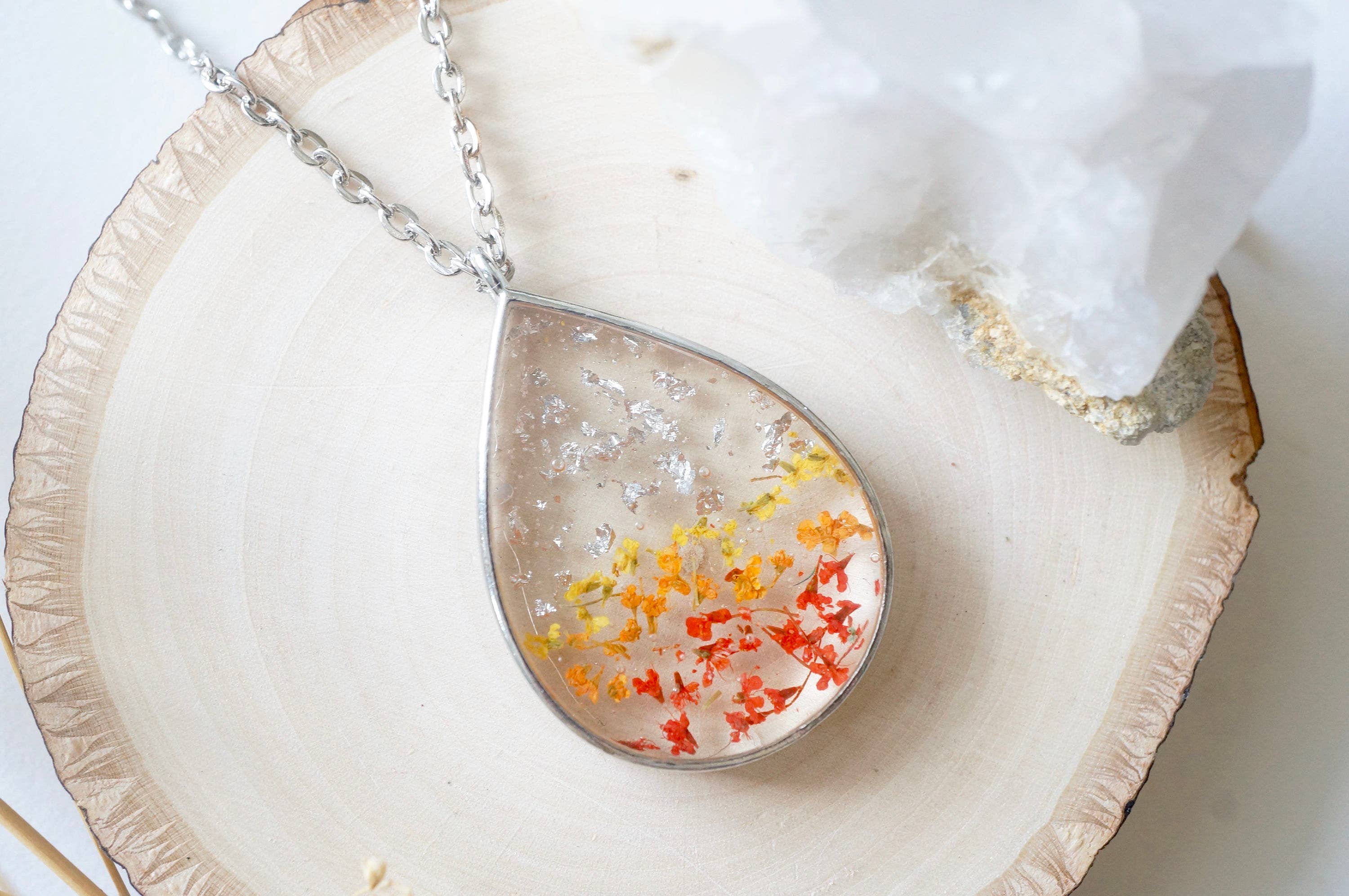 “Joias de flores secas reais feitas por duas irmãs em Miami. Vista a natureza!” Todos os nossos produtos apresentam flores secas reais que encontramos, cortamos, secamos e tingimos. Quase qualquer item pode ser PERSONALIZADO! Escolha as cores que você quiser. Nossas joias oferecem a oportunidade de usar a natureza preservada por toda a vida. Todos os brincos são feitos com fundo de aço inoxidável, ótimo para orelhas sensíveis. Nossos colares e anéis são feitos com liga de zinco, um metal que também é ótimo para peles sensíveis. Para manter nossos preços baixos, não usamos prata esterlina ou ouro 14k. Temos mais de 4000 vendas apenas no Etsy e vendemos em muitas outras plataformas online. Nossas joias são ótimas para mulheres de todas as idades. Se você tiver alguma dúvida sobre nossos produtos, informe-nos. Os itens são feitos sob encomenda. Aguarde tempos de processamento mais longos. Agradecemos sua compreensão.