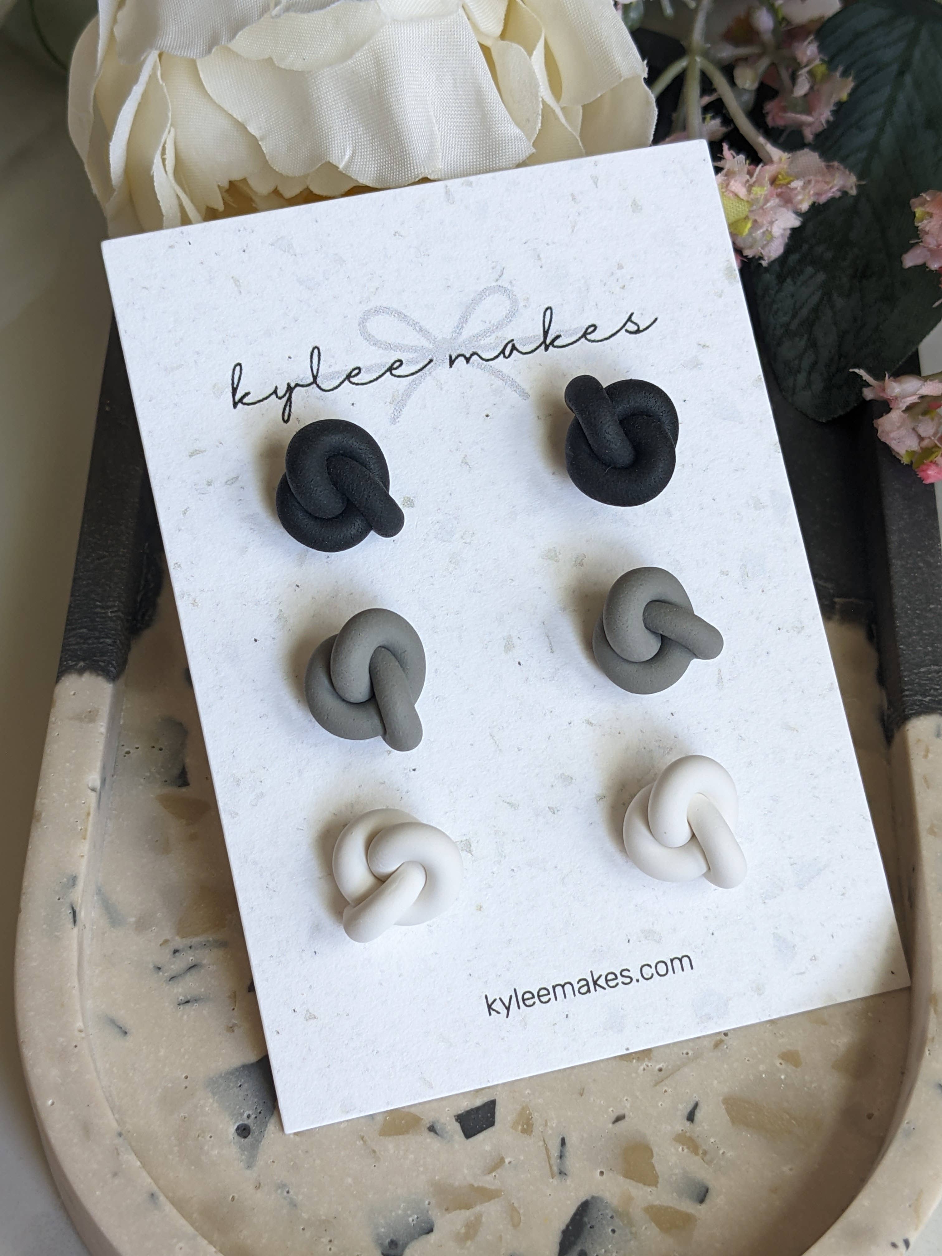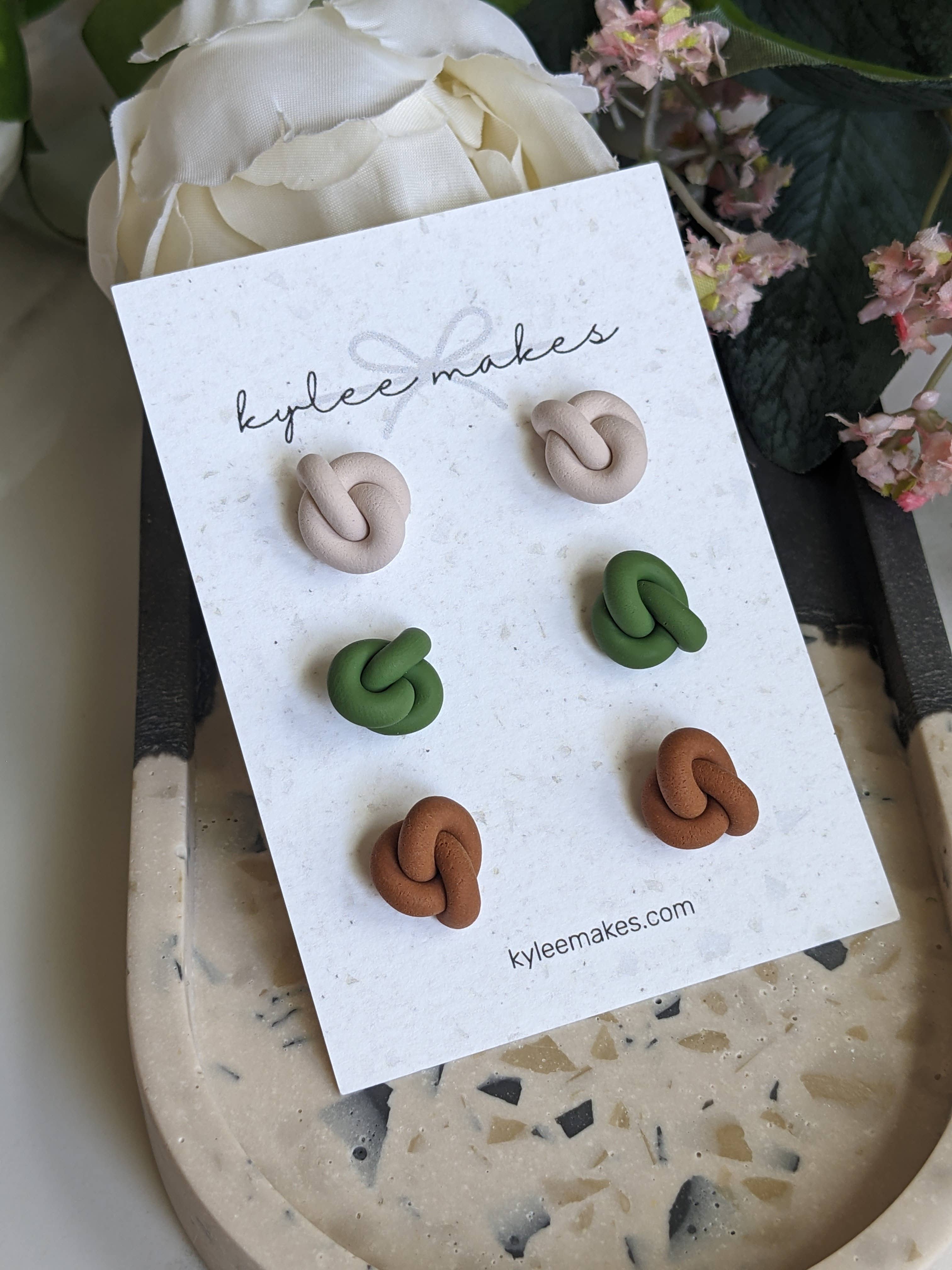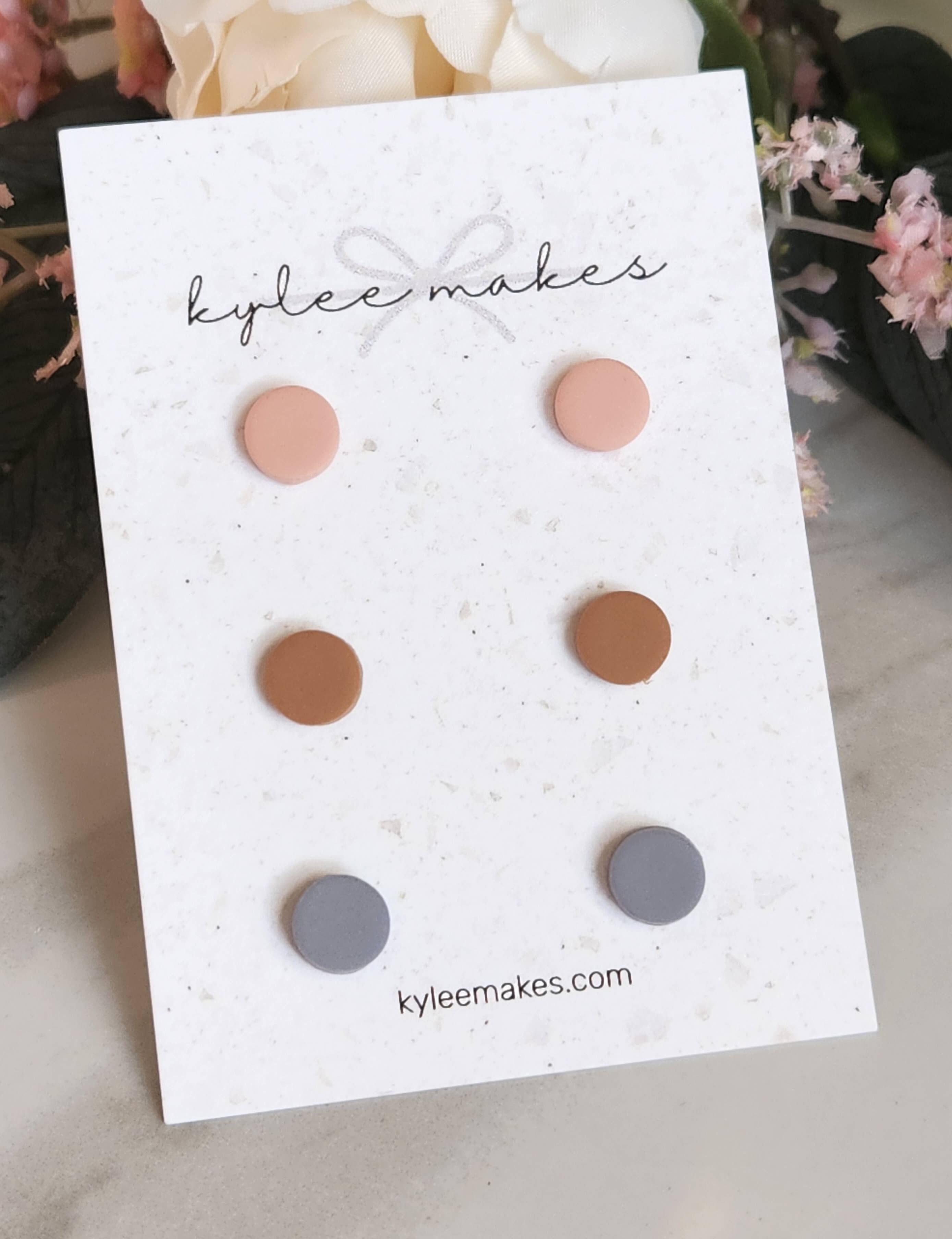 A Kylee Makes cria brincos de qualidade a partir de argila de polímero com metais que são seguros para ouvidos sensíveis. A argila de polímero é um material extremamente leve e durável que pode ser transformado em quantidades infinitas de desenhos e cores. Os metais usados com mais frequência são titânio ou ouro. Entre em contato diretamente se estiver procurando por algo específico que não vê na minha loja. Estou feliz em ver se posso te ajudar!