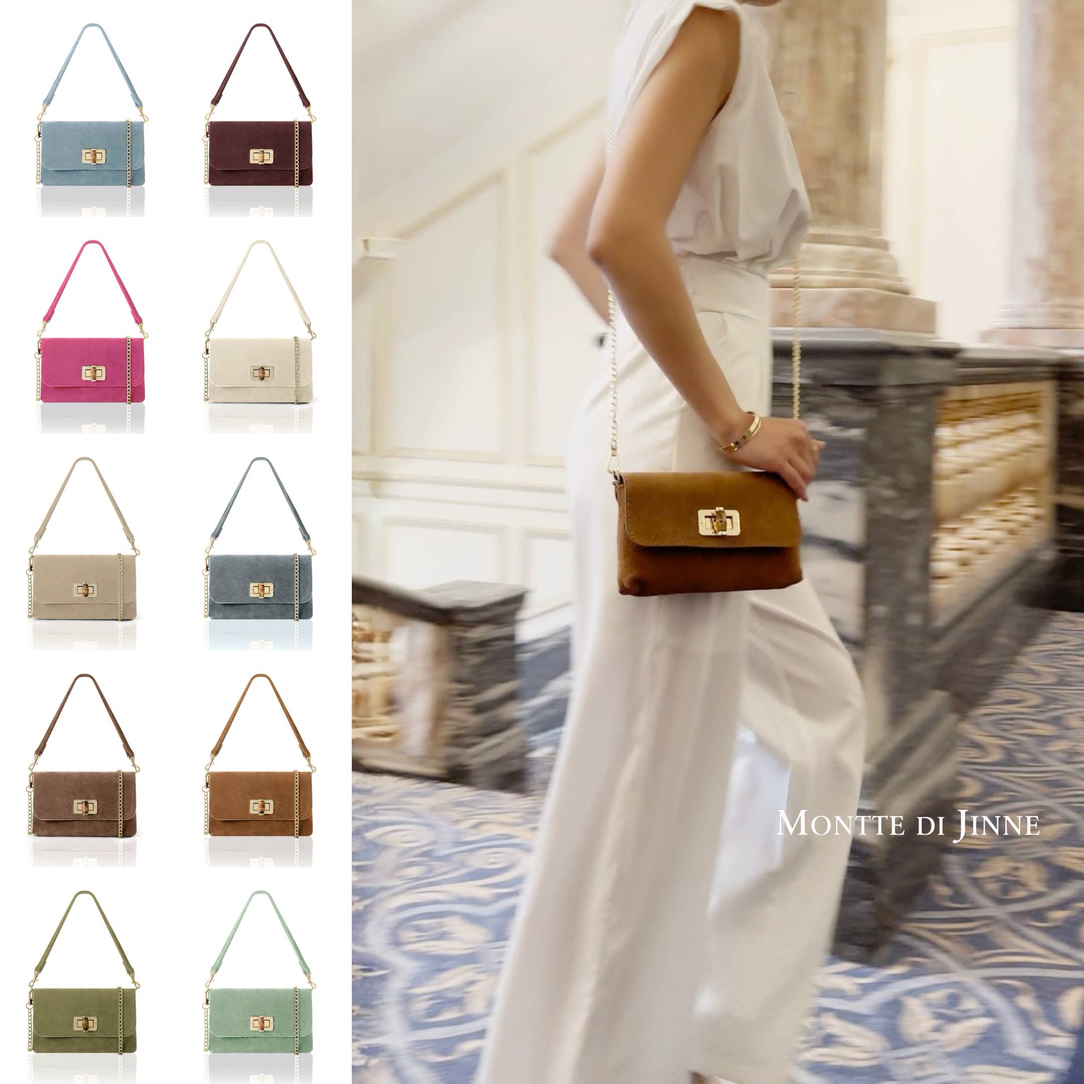 No Montte di Jinne, orgulhamo-nos de usar couro italiano genuíno, com cada mala meticulosamente feita à mão em Itália. A nossa missão é trazer a essência do artesanato italiano para os retalhistas em todo o Reino Unido e Europa, oferecendo aos seus clientes malas de couro italiano autênticas e de alta qualidade que eles possam amar e confiar. Com mais de 10 anos de experiência, mantemos um compromisso com a qualidade excecional e o estilo intemporal em cada coleção que oferecemos. Com envio rápido e fiável, ajudamo-lo a manter-se à frente num mercado competitivo, garantindo que tem sempre acesso a produtos novos e procurados. Como seu parceiro de confiança, estamos dedicados a construir uma parceria mutuamente benéfica, trabalhando juntos para alcançar o sucesso partilhado. Mantenha-se à frente, sempre—deixe-nos ajudá-lo a encontrar o seu próximo best-seller e a trazer a beleza do artesanato italiano aos seus clientes.