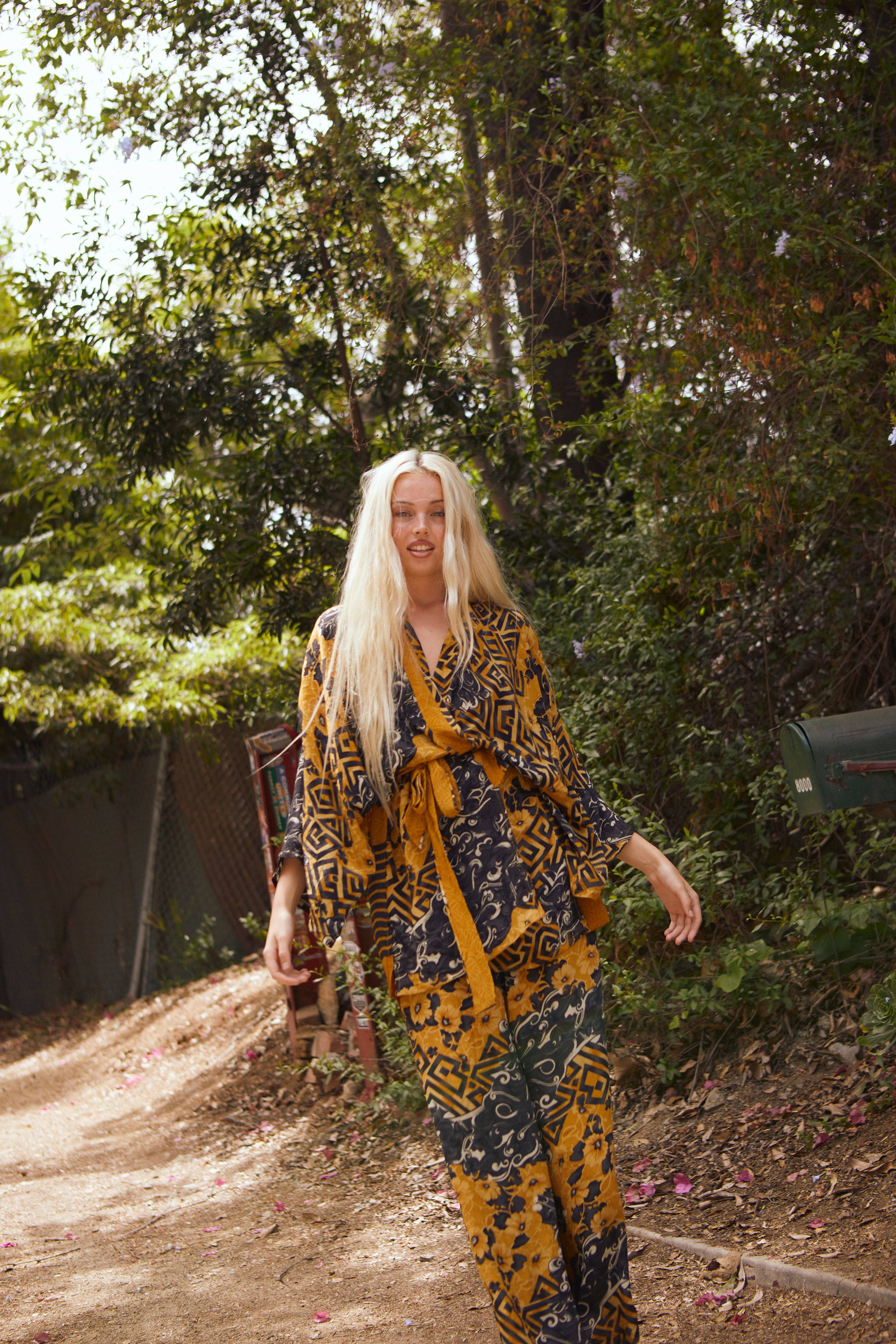 Em 2014, a publicitária de moda Elissa Kravetz viajou para o sul da Índia e encontrou uma família notável que fonte de saris vintage. Tendo trabalhado mais de 20 anos na indústria da moda de Nova Iorque e Los Angeles, Elissa nunca tinha visto nada como estes tecidos. Por desejo profundo de ajudar esta família indiana local a prosperar e a excitação selvagem sobre o tecido nasceu uma marca. As belas sedas vintage são ordenadas à mão para selecionar à direita para ser transformado em arte vestível. A oração e a reverência pelo processo está sempre na vanguarda do que fazemos. Trabalhamos devagar. Trabalhamos com intenção. São utilizadas todas as sucatas de tecido, permitindo-nos ser o mais livres de desperdícios possível. Empregamos alfaiates e artesãos locais numa pequena aldeia, em vez de grandes fábricas de massas. Com a intenção de apoiar a comunidade local, damos emprego às viúvas e alimentamos famílias e animais carenciados. Continuamos, mesmo quando nos parece difícil. Aprendemos, crescemos, questionamos, exploramos. Ao mesmo tempo sentindo mais excitação vendo as peças ganham vida em You.