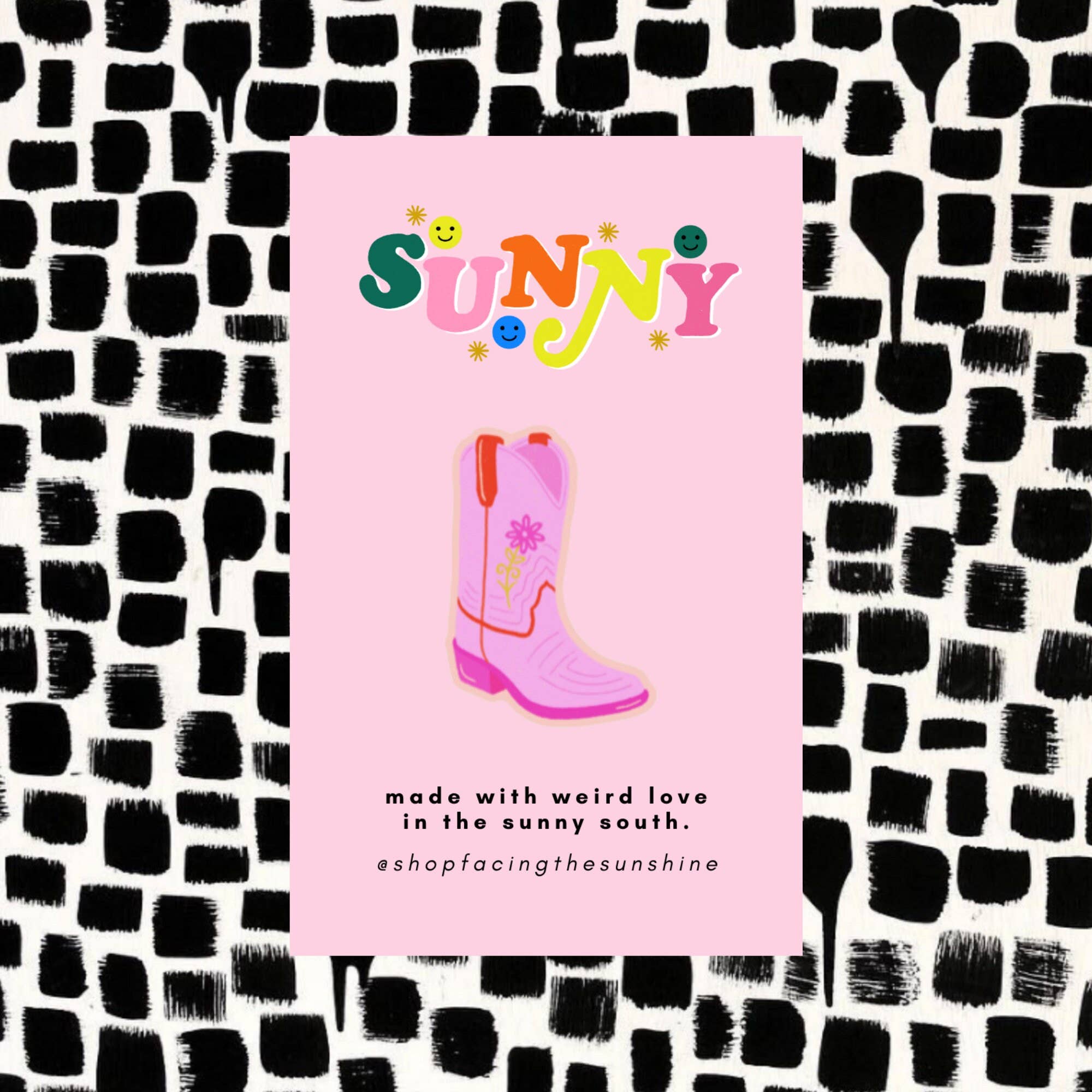 A Facing the Sunshine Stationery + Design é especializada em divertida fine art, papelaria ridículo, novidades e roupas e acessórios bonitos como roupas e acessórios f*ck! de Cutie croc charms a cartões de saudação coloridos e impressões de arte, até autocolantes da cultura pop e camisetas cheeky e camisolas, todos os nossos goodies são feitos com amor esquisito em Nashville, TN. então whatcha waitin' para? venha comprar um sol lil!