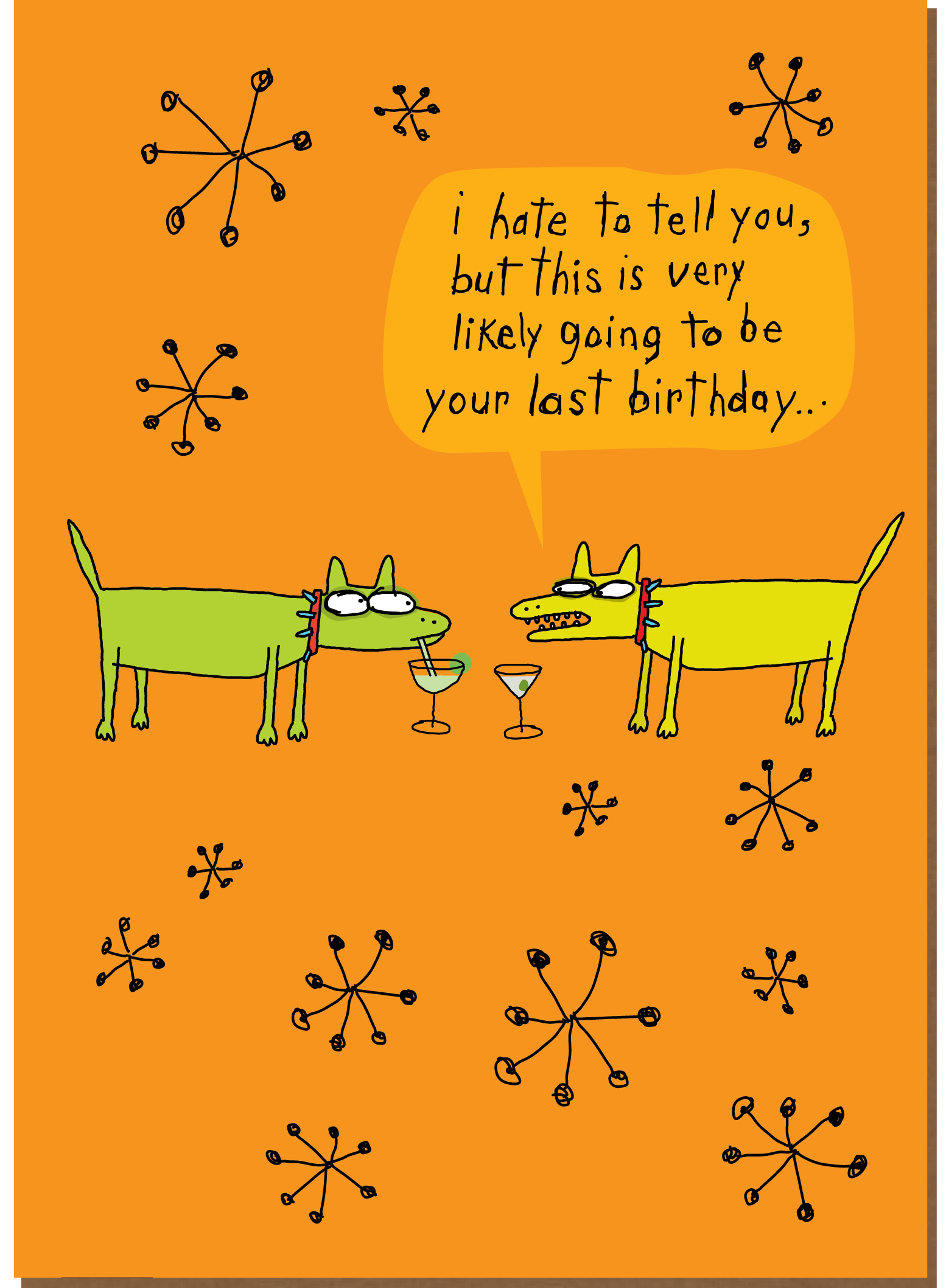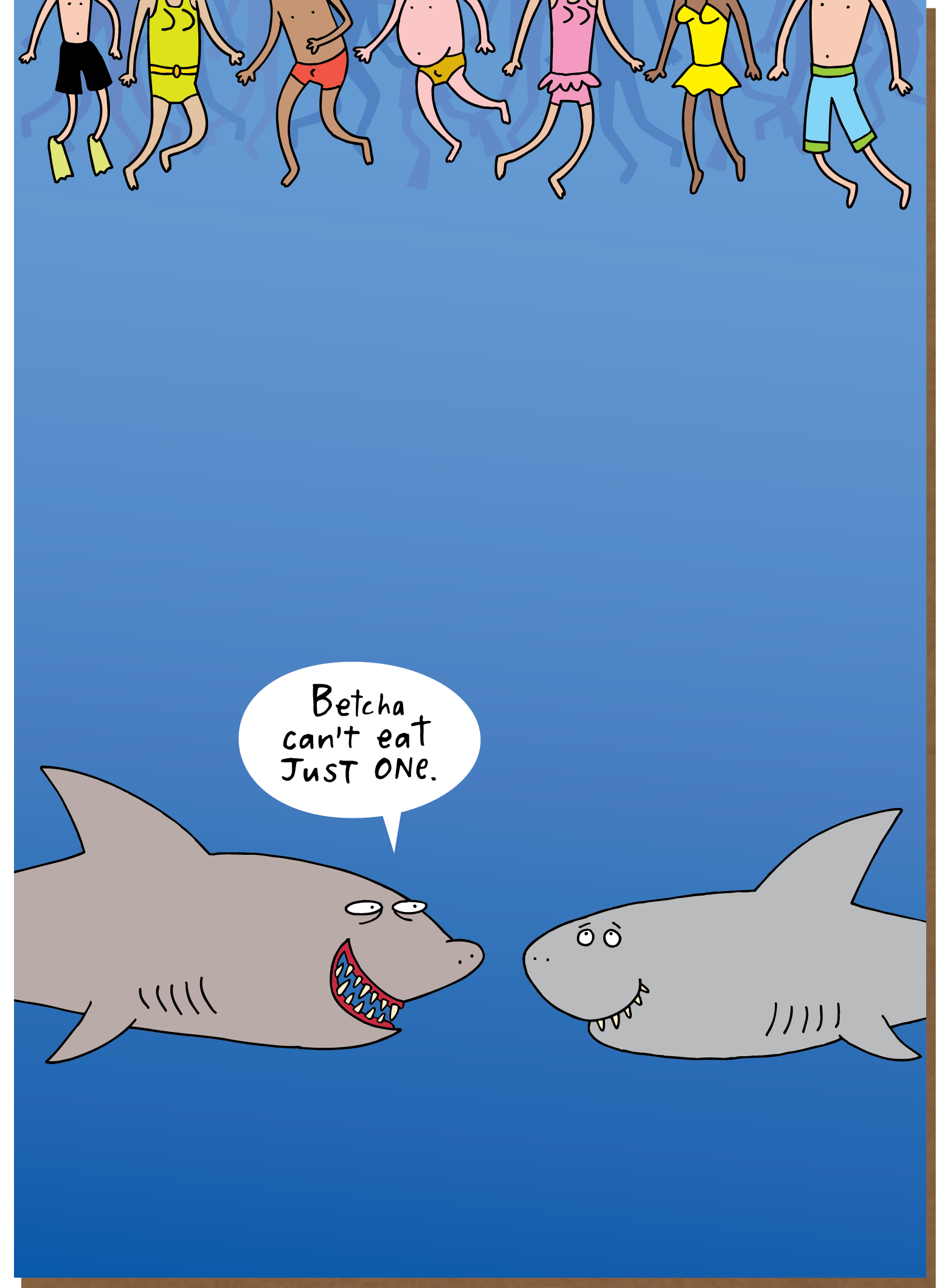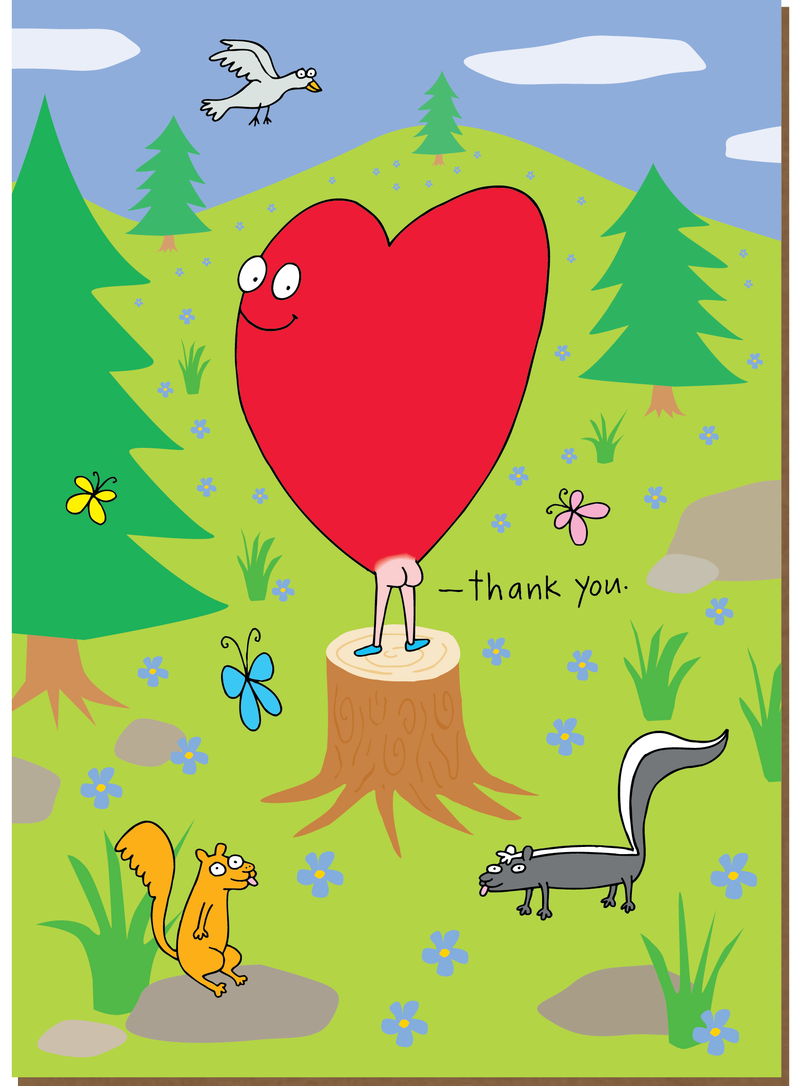 Todos os cartões são de 5x7" e custam $4,95. Bem-vindo à Clayboys. Criadores de cartões inteligentes, atrevidos, sarcásticos, espirituosos, exagerados, irónicos, perversos, extravagantes, irreverentes e engraçados. Provavelmente, o que distingue os cartões Clayboys de outros cartões é a nossa 'narrativa em três partes'. A arte e o conceito são mantidos ao longo de todo o cartão; a frente, o verso e a parte de trás. Não terminou de ver um cartão até ter olhado para os três. As lojas que vendem cartões Clayboys costumam dizer que gostam de tê-los porque é ótimo ouvir as pessoas a rir em voz alta. Dê uma olhada, se conseguirmos fazê-lo sorrir, fazer uma cara de espanto, ou melhor ainda, rir em voz alta, então estamos a fazer o nosso trabalho. Os cartões são impressos nos EUA em papel reciclado. Os cartões e envelopes podem ser reciclados.