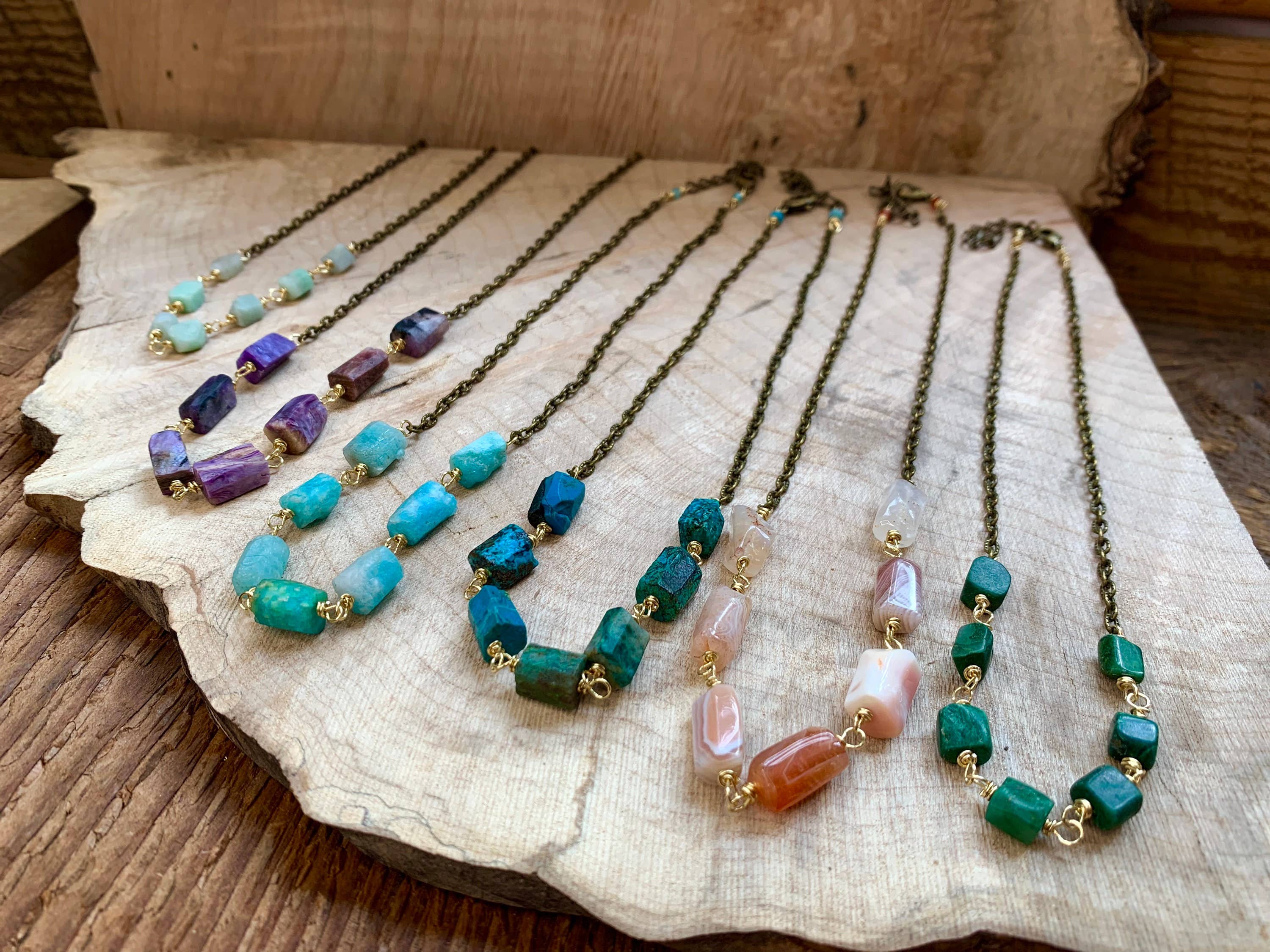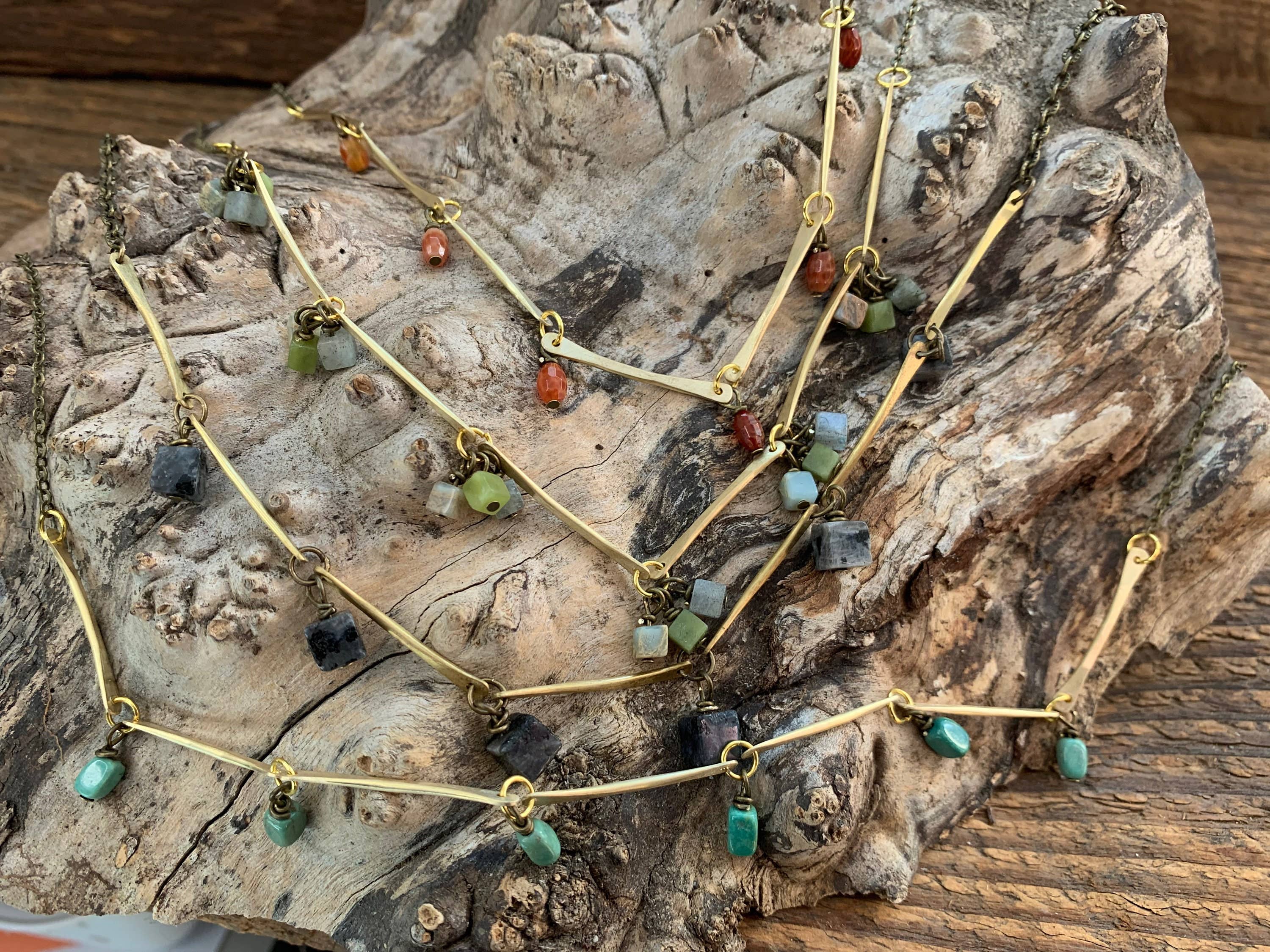 Comecei a desenhar joias quando estava grávida do meu primeiro filho. Eu sabia que queria ser uma mãe que ficava em casa, mas precisava encontrar uma maneira de gerar alguma receita e usar minha criatividade. A criatividade é o que mantém minha alma viva. Criar lindas joias e criar meus dois filhos é minha paixão. Eu desenho minhas joias usando metais e pedras naturais. Adoro pegar um pedaço de arame ou uma folha de metal e transformá-lo em uma bela joia. Cada peça da minha coleção é feita à mão por mim.