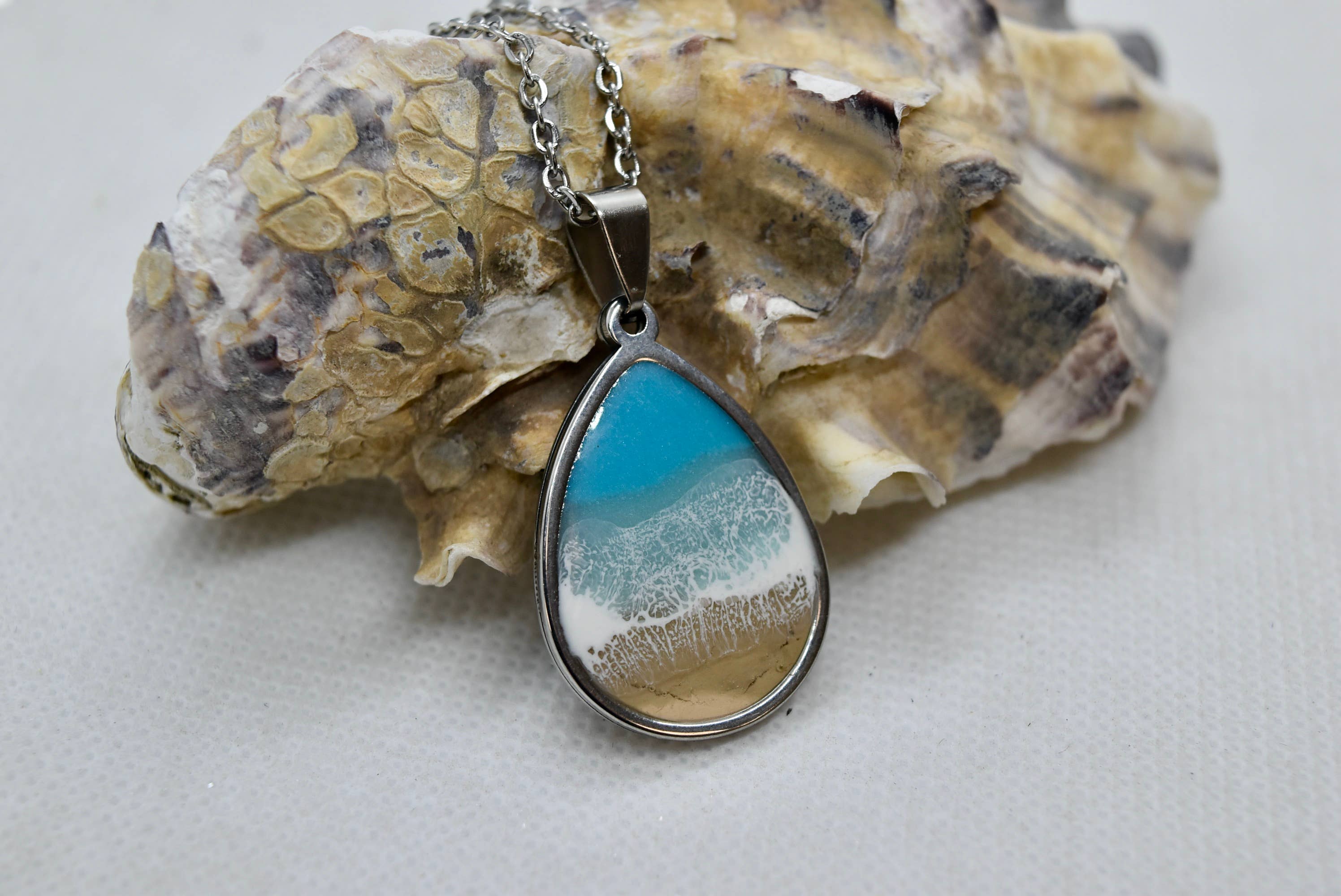 Cada peça de Joalheria de Praia é feita à mão por Caitlin Accurso, garantindo que cada item conte a sua própria história. De colares delicados a brincos pendurados, a nossa coleção captura a essência do mar e leva-o até si em arte vestível. Quer esteja a vestir-se para uma ocasião especial ou a adicionar um toque de charme costeiro ao seu look do dia a dia, a Joalheria de Praia oferece algo especial para todos. Abrace a beleza do oceano e use-o com orgulho, sabendo que cada peça é trabalhada com cuidado e inspirada nas maravilhas da natureza. Criar as minhas pinturas em resina produz muitos materiais “desperdiçados”. Decidi que poderia usar a resina colorida extra de escoamento para fazer ART funcional e vestível, criando menos desperdício para o meio ambiente. Junte-se à nossa comunidade de amantes do oceano e deixe o seu estilo refletir o seu amor pela costa. Descubra a peça perfeita que fala consigo e faz ondas onde quer que vá. www.Caitilnaccurso.com