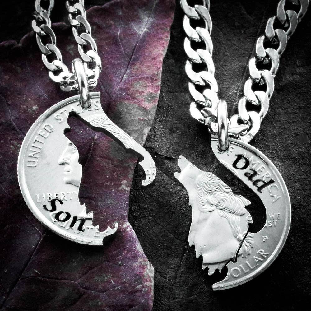 Olá! Bem-vindo à NameCoins, somos uma empresa familiar com mais de 40 anos que se especializa em um tipo muito único de joalharia. Não só cortamos e gravamos moedas em centenas de designs, como também adoramos ajudar a desenhar e criar peças personalizadas especiais para si! Cada detalhe dos nossos designs de moedas recortadas foi meticulosamente cortado à mão com uma pequena serra de joalheiro. Esforçamo-nos muito para criar estas peças com perfeição, e pode ver pelas nossas fotos o quão detalhados e precisos somos! Esperamos que goste de ver as nossas peças!