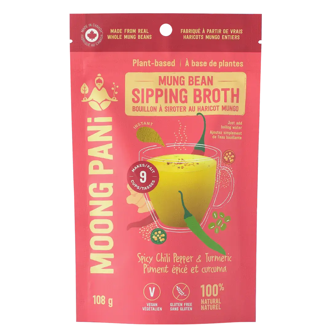 Os caldos SPROUTED MUNG SPIPPING, Dals e Khicharis da Moong Pani's são verdadeiramente únicas. Porque são feitos de feijão MUNG GERMINADO - um superalimento antigo. A nossa paixão é revitalizar os alimentos da antiga aldeia ayurvédica. Os produtos Moong Pan são saudáveis, rápidos e fáceis de fazer para o nosso estilo de vida em movimento. Todos os nossos produtos são 100% naturais, vegetais, veganos, sem glúten, não-OGM, sem soja, sem nozes, sem laticínios e sem soja Não usamos quaisquer corantes artificiais, conservantes, sabores, sulfitos, MSG ou óleos hidrogenados. Todos os nossos produtos são totalmente fabricados no Canadá nas nossas instalações dedicadas. Usamos feijão SPROUTED MUNG como a proteína vegetal, enriquecida com especiarias aromáticas como gengibre, açafrão, cominho e limão fresco. Estes são conhecidos por ajudar a digestão, a saúde do coração, a saúde intestinal e são anti-inflamatórios e ricos em antioxidantes. Os nossos caldos Moong Pano vêm em cinco sabores robustos - cada um é um abraço acolhedor numa caneca!
