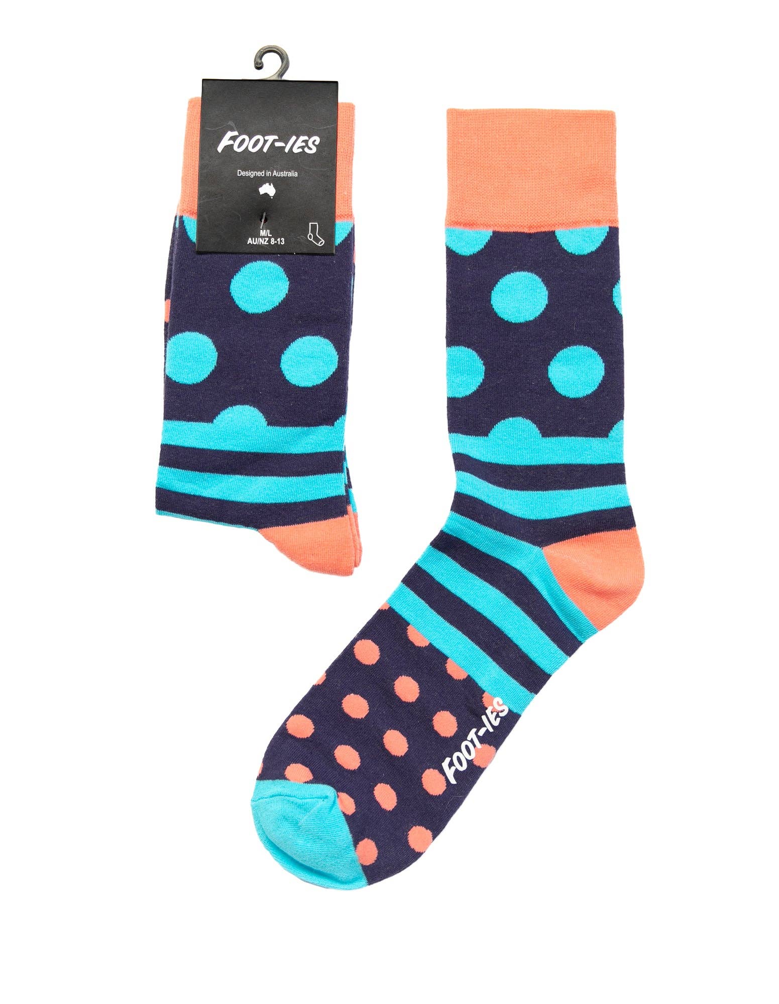 Propriedade e design australiano. Estamos cuidando dos pés com nossas meias de mistura de algodão/poliamida/elastano de 200 agulhas super confortáveis e de alta qualidade. Os pés estão lá do quintal à sala de reuniões e todos os momentos intermediários. Referenciando a nostalgia australiana em nossa oferta principal, bem como colaborando com marcas australianas icônicas como NRL, AFL e CUB, temos meias para todas as ocasiões.