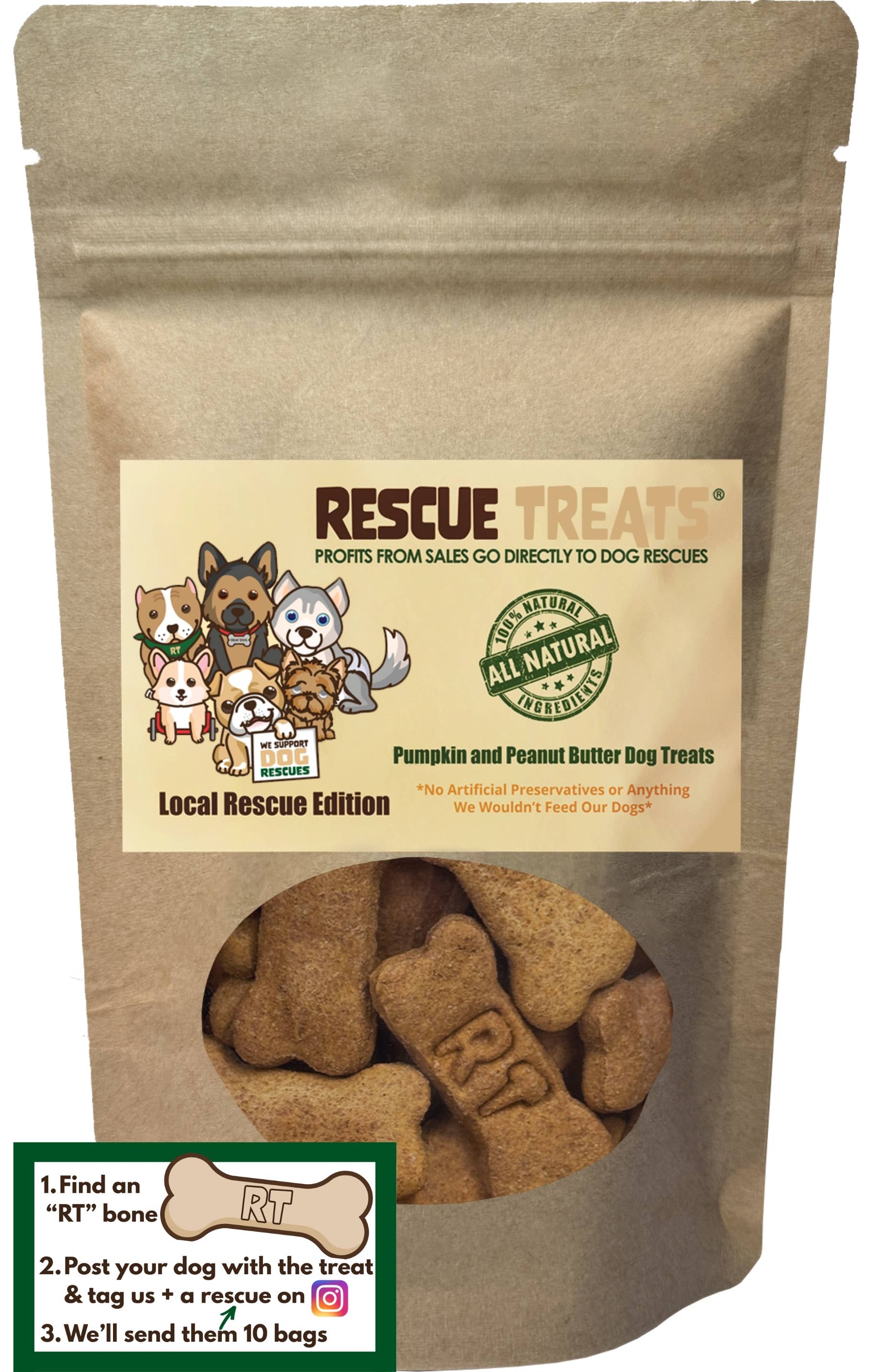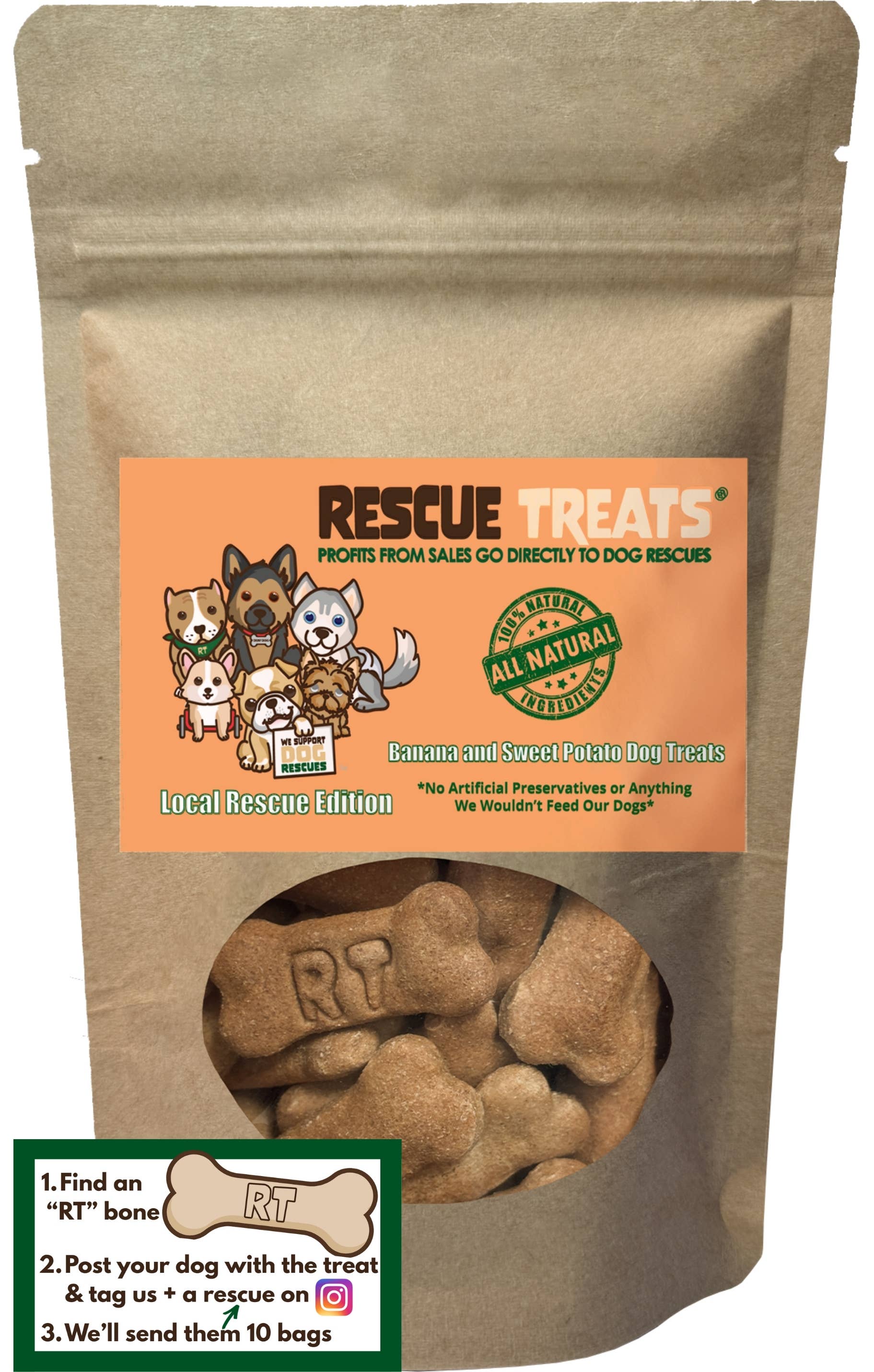 Na Rescue Treats® assamos guloseimas totalmente naturais para cães e depois doamos os lucros para resgates de cães. As nossas guloseimas não contêm nada de artificial. Sem lixo, sem enchimentos, sem conservantes e sem ingredientes artificiais. Rescue Treats® encontram-se em todo o lado onde os cães são apoiados. Cafés, mercearias, lojas de presentes, salões, boutiques e retalhistas que se importam. O nosso fundador é um antigo filho adotivo que agora ajuda os cães adotivos a encontrarem os seus lares para sempre.
