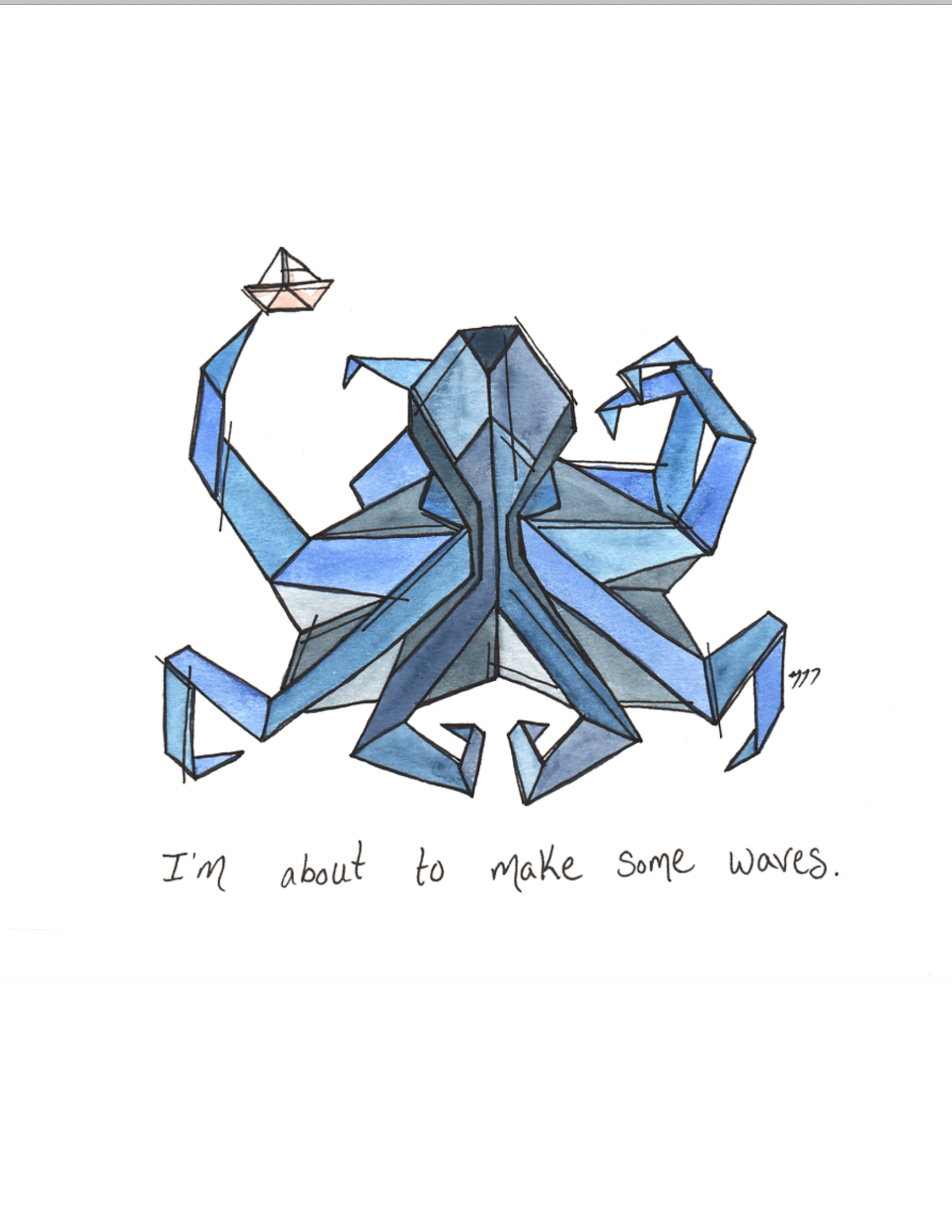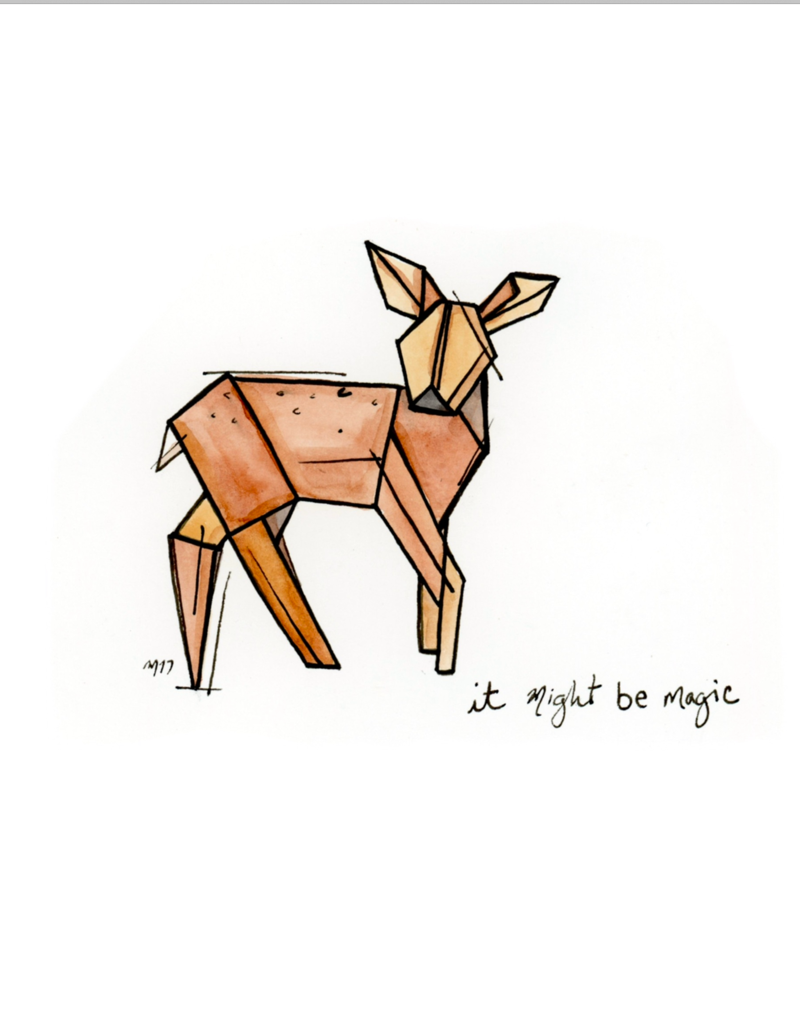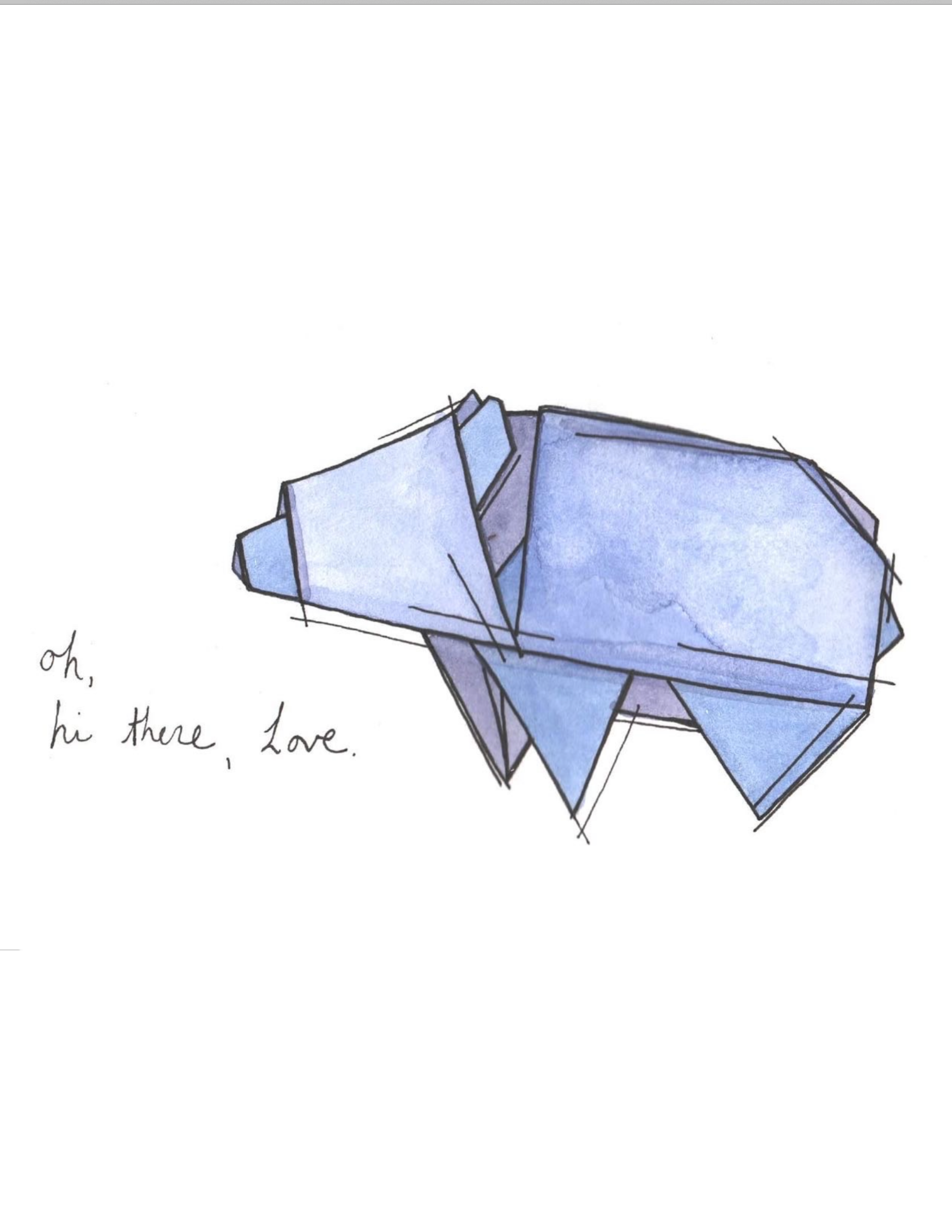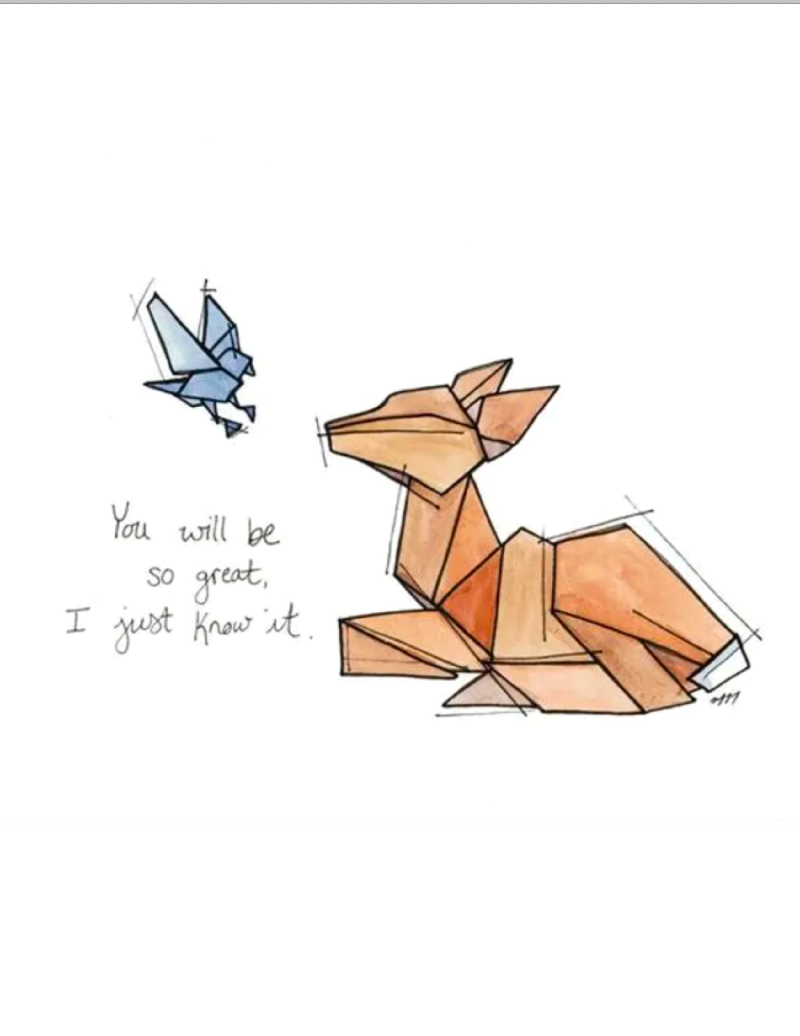 Pequenos momentos tranquilos de ligação. Como esposa e mãe, ex-professora, uma crónica que diz “Sim”, estou constantemente a fazer recados e a tentar lembrar-me de compromissos. Percebe, tenho a certeza que também o sentiram. Às vezes é difícil estar presente, experimentar as pequenas felicidades que aterram em nós. A minha arte tem como objectivo encontrar-vos naqueles tempos agitados, atrasar-vos à primeira vista, e levar a vossa vida de memórias. Desenhos delicados inspirados no origami, cada peça original em aquarela é finalizada com uma linha de texto. Às vezes, o agridoce é bom, e a minha esperança é que estes desenhos vos dêem permissão para simplesmente pausarem e sentirem.