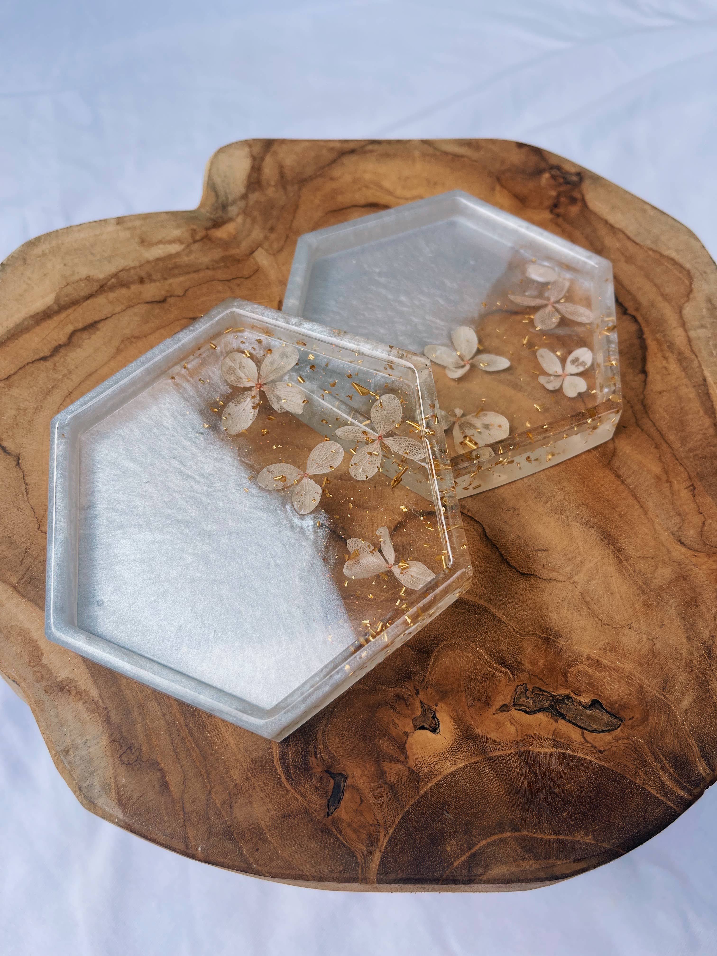 Msn J Arts é feito à mão por Reyna Kimura em Kailua, Oahu. Nós nos concentramos em uma variedade de produtos de resina para serem usados em casa ou no escritório - porta-copos, bandejas de joias, tábuas de corte de charcutaria, bandejas de servir, decoração de parede e muito mais! Cada item serve a vários propósitos, é seguro para alimentos e fácil de limpar.