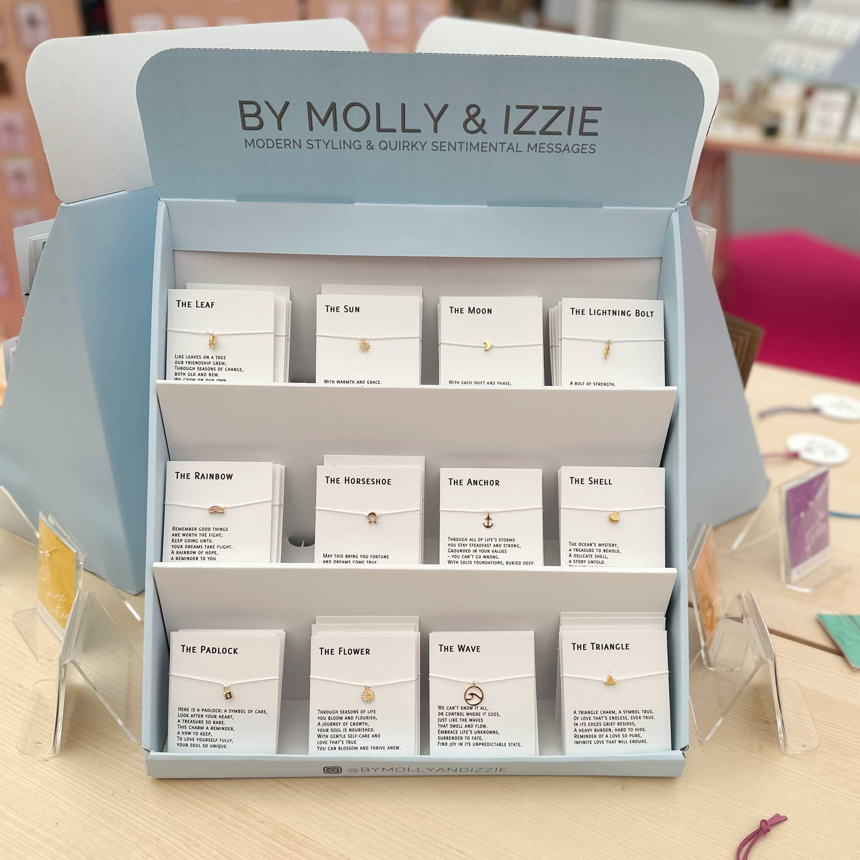 Bem-vindo à Molly & Izzie Wholesale. Aqui você pode comprar todas as nossas gamas de presentes e joias a preços de atacado, juntamente com material promocional e de exibição. by Molly&Izzie cresceu ao longo dos últimos 6 anos para se tornar uma marca conhecida por pulseiras de desejo de design de alta qualidade, joias e presentes. Do nosso estúdio no interior da Cúmbria, nossa equipe de Wish Makers e Gravadores a Laser faz ou finaliza quase todos os nossos produtos. Sempre que possível, usamos materiais de origem local e apoiamos outras pequenas empresas locais. Combinando estilo moderno com mensagens peculiares e sentimentais, nossa equipe criativa está constantemente adicionando novos produtos para garantir que nossas gamas permaneçam atualizadas e sob demanda. Todos os nossos produtos liderados por design oferecem uma sensação de coesão em uma gama variada de preços e são registrados e protegidos pela lei de direitos autorais. Prometemos reduzir o uso de plástico em 50% até o final de 2021 e já alcançamos 33% disso.