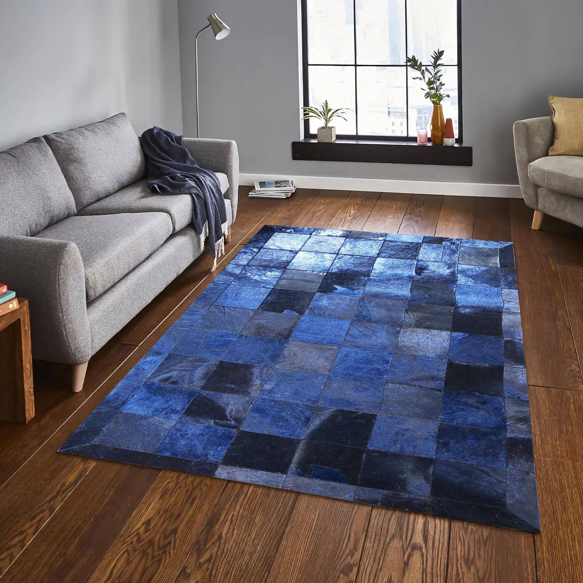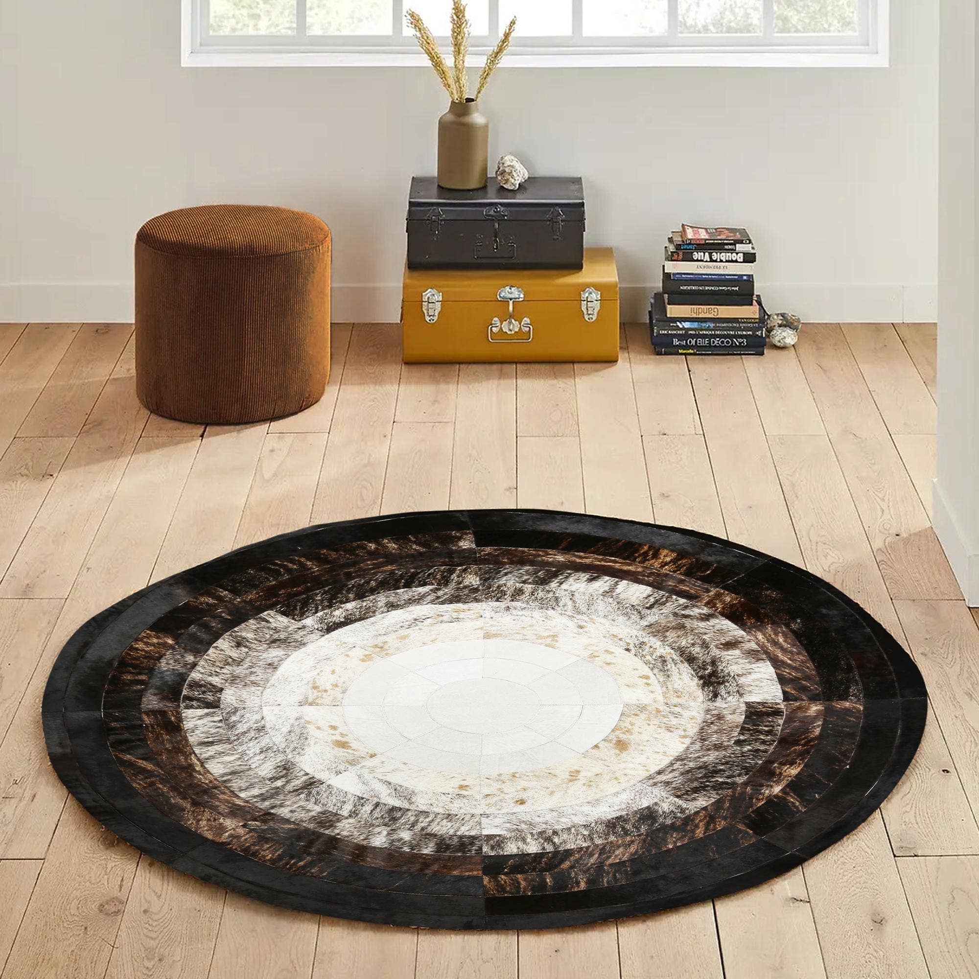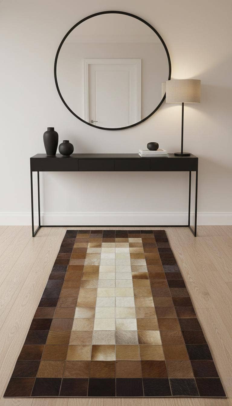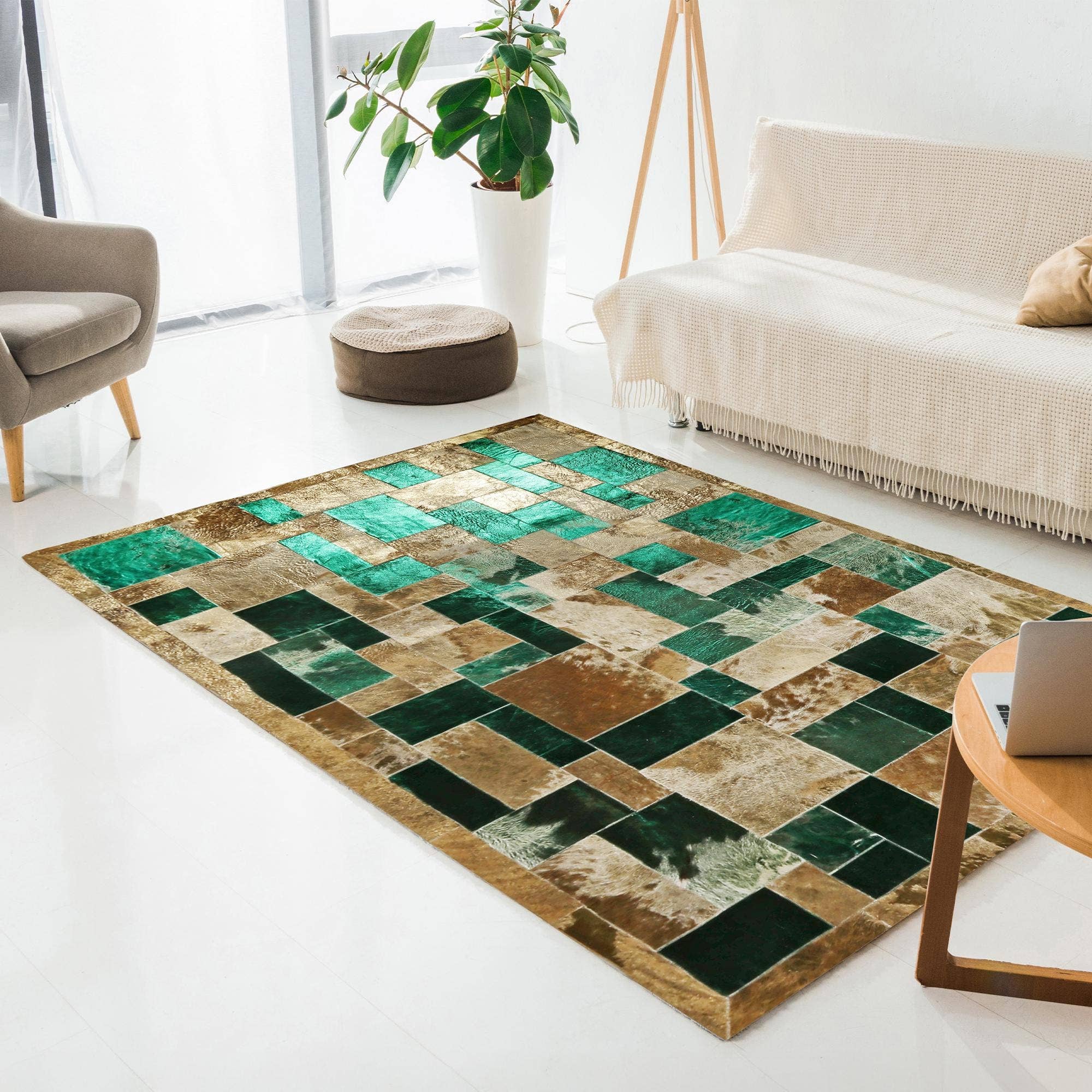 Desde 1998, temos adicionado elegância e estilo aos seus espaços de convivência com os nossos tapetes cuidadosamente feitos à mão. Usando pele de vaca genuína e vários materiais naturais, oferecemos designs únicos que se destacam. Os nossos tapetes de retalhos são especialmente populares, conferindo à sua casa um toque moderno e único.