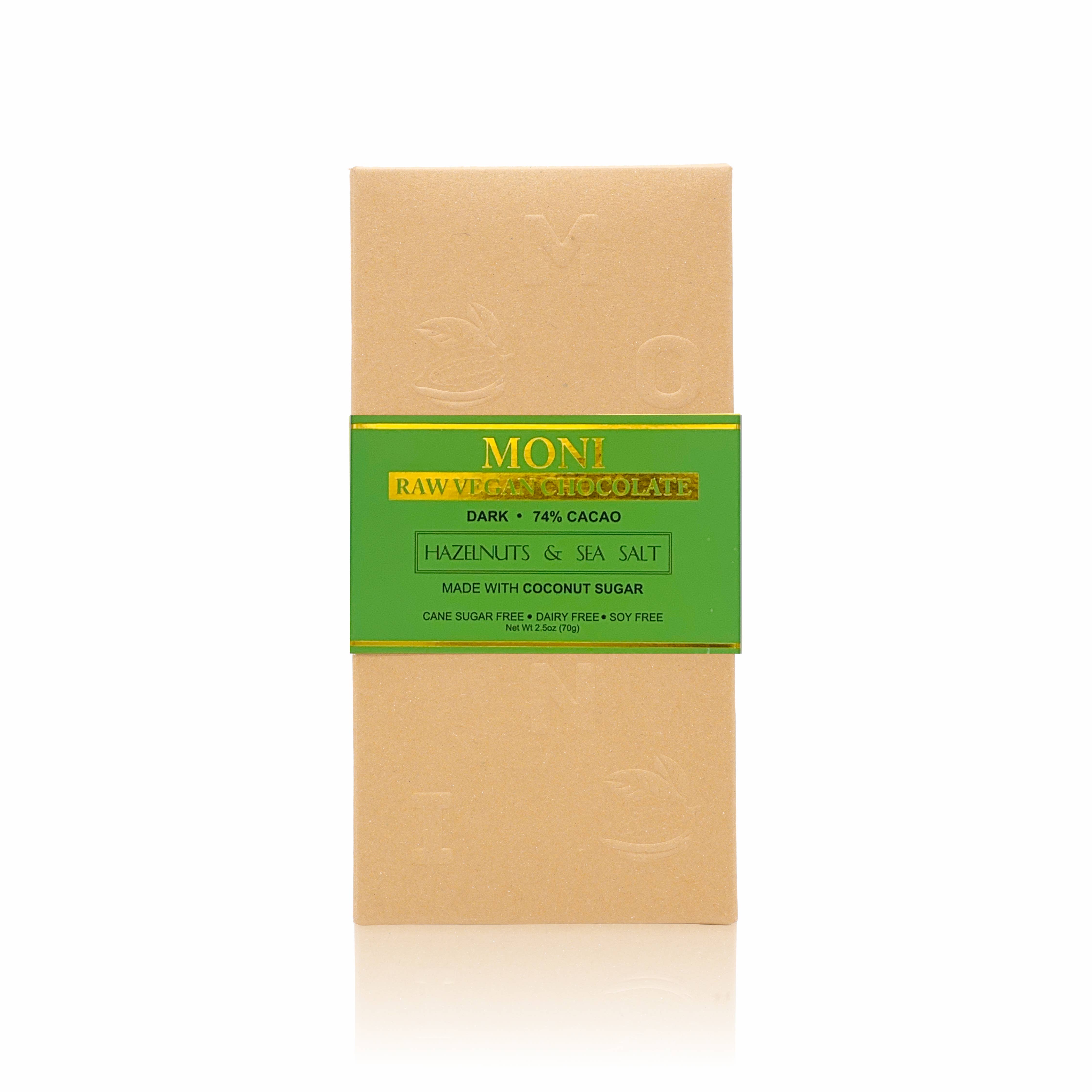A MONI foi fundada na Califórnia em 2016 por marido e mulher. Somos uma empresa orientada para a ética que acredita que os alimentos são curativos. Criamos chocolate artesanal feito de ingredientes totalmente à base de plantas e da melhor qualidade. Nossos grãos de cacau nunca são torrados, para que você possa ter a qualidade mais saudável ao saborear nossa barra de chocolate cru. Para adoçar, usamos açúcar de coco orgânico não refinado. Ele contém naturalmente minerais e outros elementos com propriedades antioxidantes. Também tem menor índice glicêmico do que o açúcar de cana, permitindo que seu corpo seja mais eficaz na manutenção dos níveis de açúcar no sangue. Nosso chocolate é sem laticínios, sem soja e sem glúten. Vegan e paleoamigável.