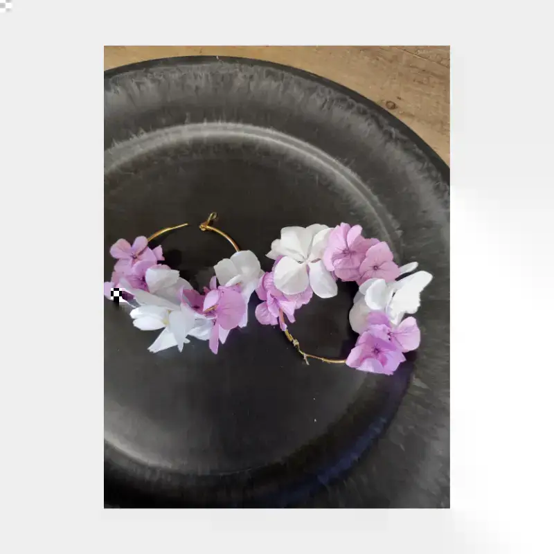 Florista no oeste da França, as plantas são a minha paixão por isso decidi usá-las em acessórios para melhorar o rosto das mulheres. É assim que imagino cada um dos meus brincos criados para vocês, senhoras. ESTEFANO