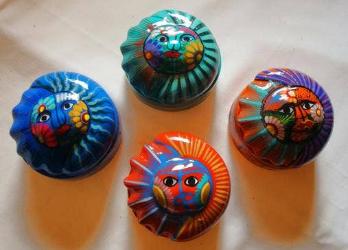 Ao comprar sua mercadoria na Arara Enterprises, você ajuda a apoiar artesãos e artesãos tradicionais em países do terceiro mundo. Representamos artesãos regionais, que trabalham fora do sistema de distribuição disponível em todo o mundo. Em alguns lugares, trabalhamos com 3 gerações da mesma família. É importante que eles permaneçam fiéis ao seu povo e artesanato. tradições e que esses artesanatos não são reproduzidos de forma barata em outros lugares. . Temos orgulho em mostrar e explicar essas tradições artesanais também para mantê-las vivas em um mundo em mudança. Sendo nós mesmos latino-americanos, nosso conhecimento das guloseimas artesanais das Américas se reflete em nossa vasta coleção de artesanato do México, El Salvador e outros países da região. A Arte Popular Religiosa Tradicional é uma expressão essencial para artesãos no México na confecção de cruzes, crucifixos e arte religiosa, presépios e ornamentos de férias. De El Salvador, temos sido importadores diretos da Cerâmica La Palma e Ilobasco.