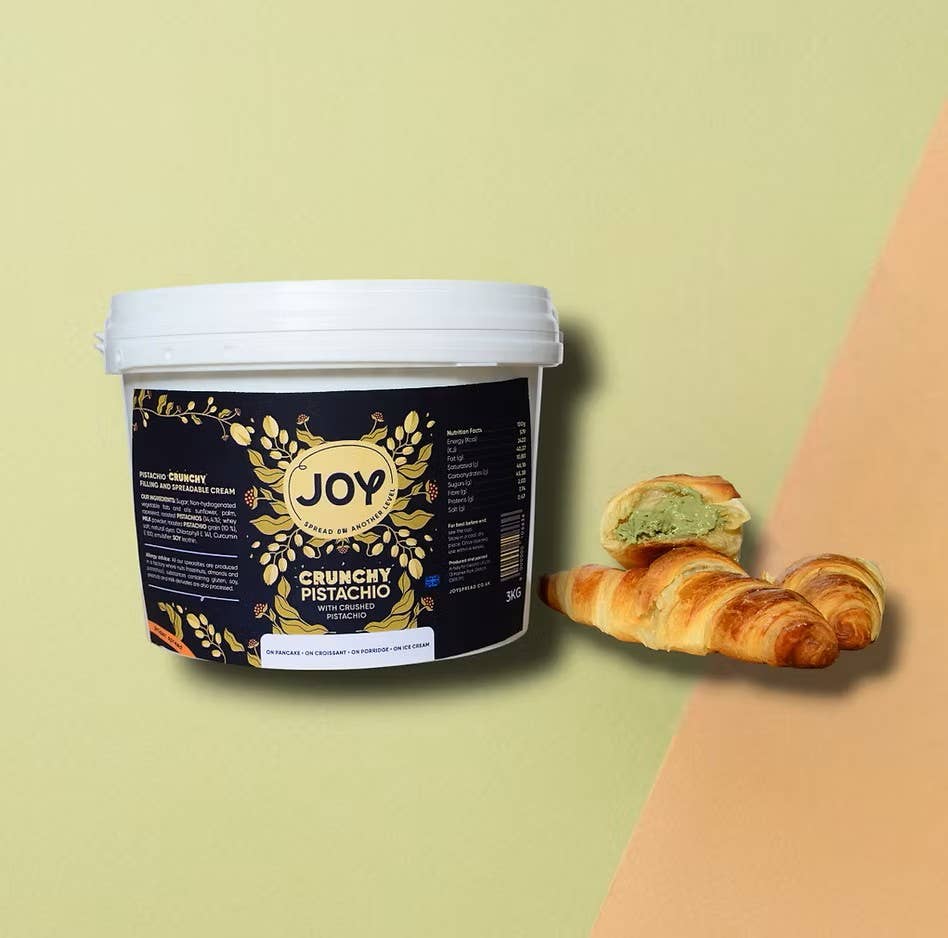 Lançada em 2024, a Joy está pronta para agitar o setor de cremes para barrar com os seus sabores e texturas indulgentes! Os criadores da Joy, originalmente fabricantes de gelato, transferiram os sabores marcantes e as texturas únicas do seu gelato para cremes para barrar à temperatura ambiente. O objetivo era produzir a próxima geração de cremes, com sabores luxuosos e texturas emocionantes, diferentes de tudo o resto. Embora estes cremes sejam melhores para serem apreciados como sobremesas por si só, também oferecem uma variedade de utilizações como molhos de cobertura em sobremesas ou como cremes de recheio em pastelaria e bolos. A gama agora inclui pistácio crocante, pistácio suave, coco crocante e avelã com chocolate crocante. Novas variedades, como pistácio crocante vegan e massa de bolacha crocante com chocolate, estarão disponíveis em breve também.