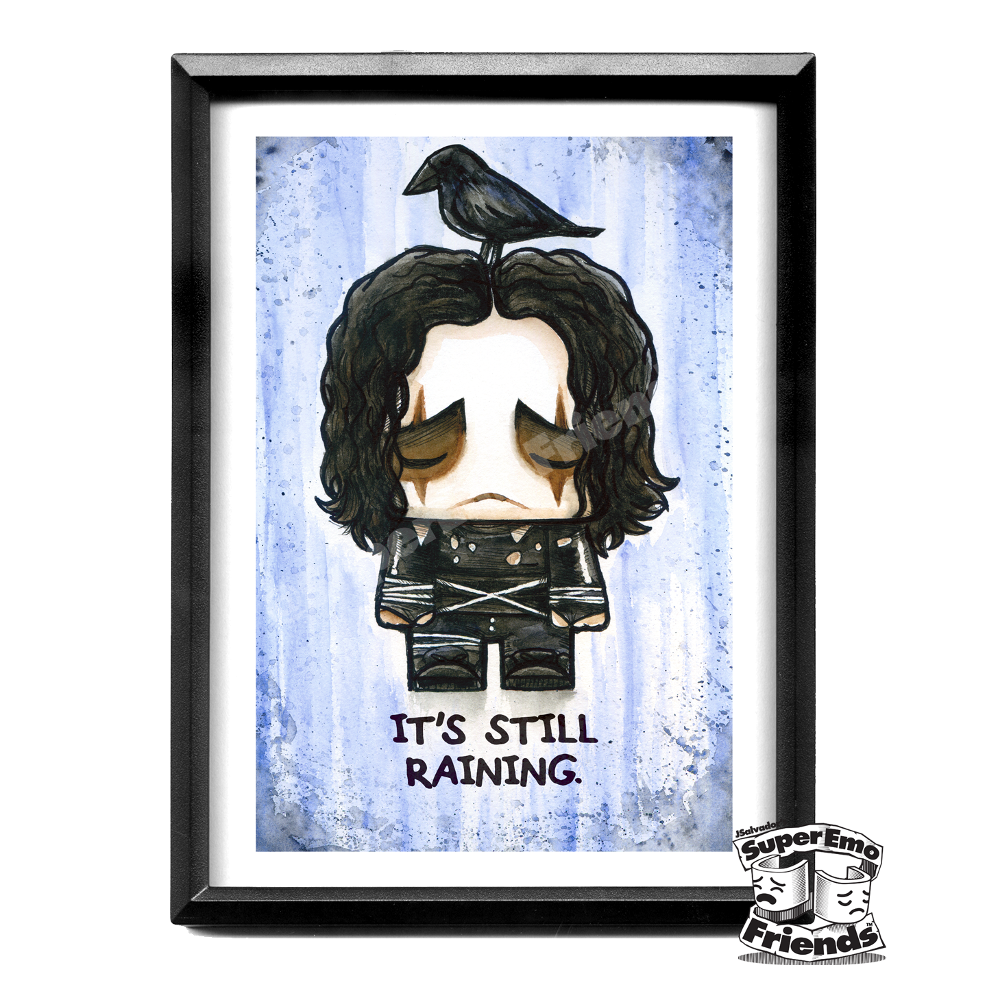 Imagine ter uma coleção das suas personagens favoritas parodiadas com um toque de super emo joy, mostradas em impressionantes frames 5x7. Estas gravuras, desenhadas pelo talentoso J.Salvador, têm sido um grande sucesso em convenções e lojas de banda desenhada em todo o país. Agora, tem a oportunidade de trazer esta obra de arte com tendência para as suas prateleiras! Criada com precisão e tristeza, cada impressão 5x7 é belamente embalada e enquadrada para melhorar o seu impacto emocional. A atenção ao detalhe garante um produto premium que os seus clientes vão rir e chorar por gerações.