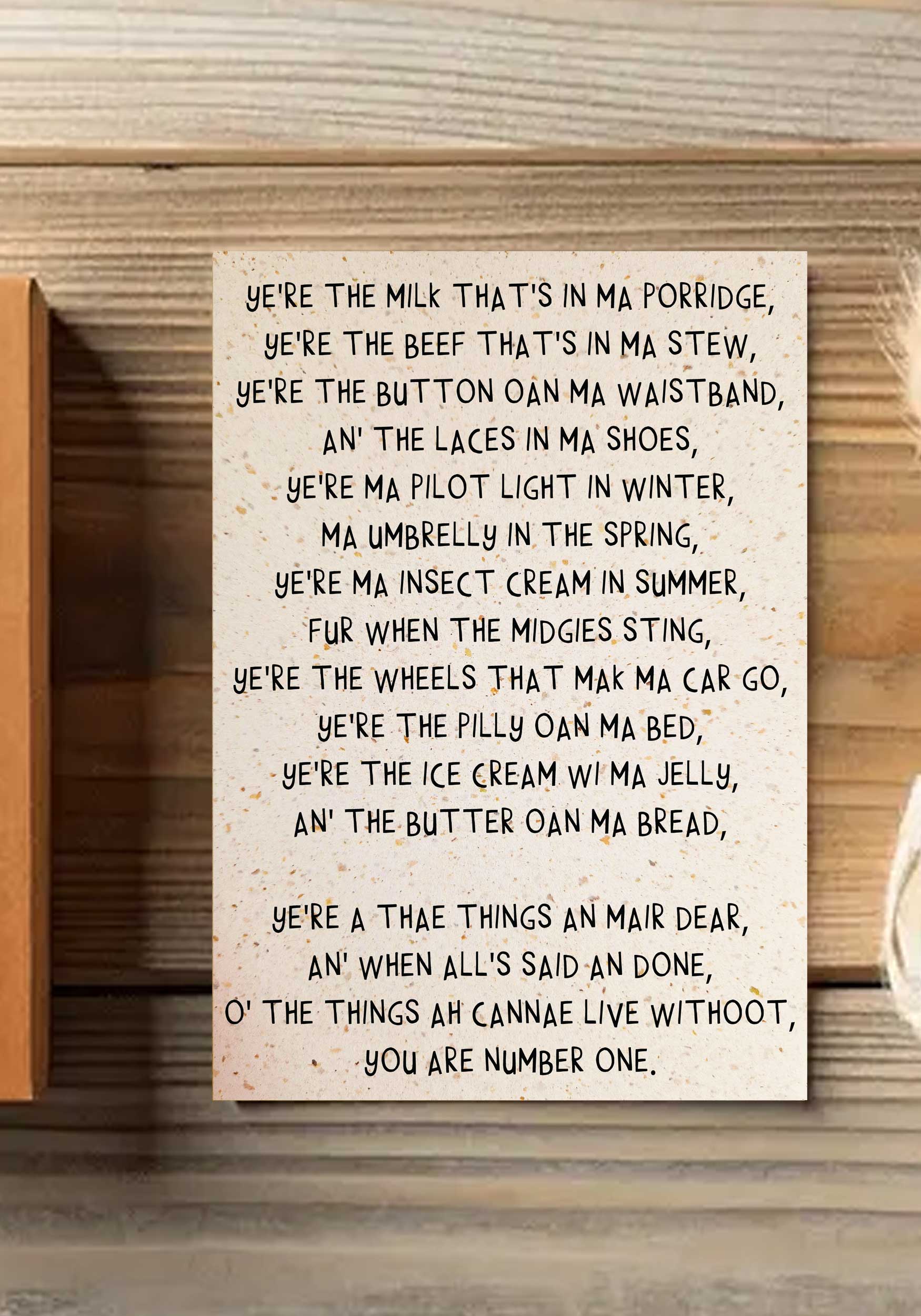 Somos uma editora familiar de cartões comemorativos com sede em Fife, Escócia, que se orgulha de oferecer cartões peculiares de alta qualidade para todas as ocasiões, muitos com uma forte inclinação escocesa. Criamos todos os nossos cartões em nosso pequeno estúdio, inspirando-se na cultura escocesa e nas brincadeiras cotidianas da vida escocesa. Desde pequenos começos, nosso negócio cresceu com a família, passando por muitas facelifts, para se tornar uma editora de cartões contemporânea, fornecendo lojas de varejo de prestígio em toda a Escócia e além. Nossa equipe é composta por dois parceiros - Greg (gerente de produção, assistente de tecnologia e solucionador de problemas+marido de Laura) e Laura (mantém o lugar como gerente de execução, guru gráfico e “pessoa de ideias” + esposa de Greg).