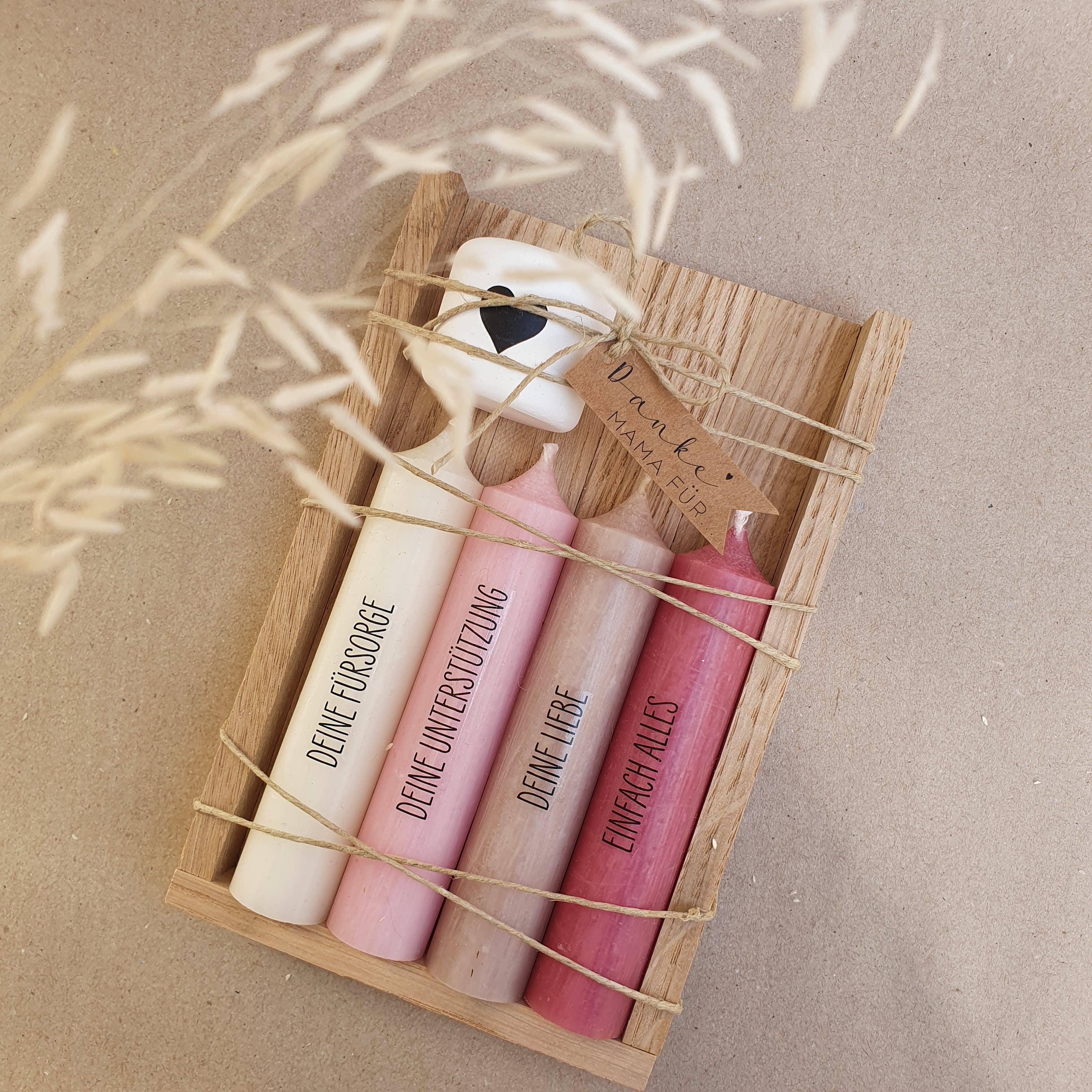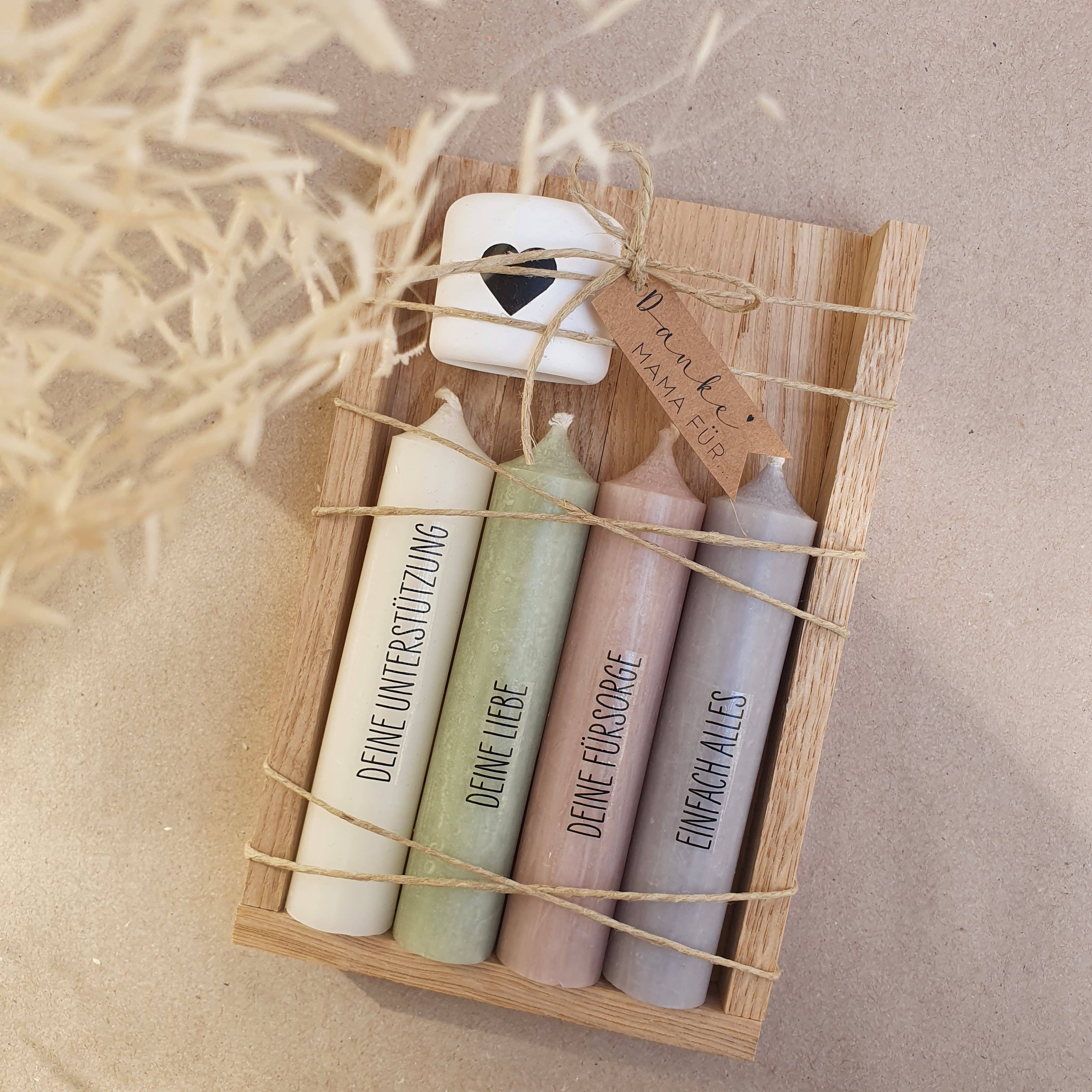 Que bom que nos encontrou ♥ Conosco, vai adorar encontrar artigos de presente artesanais para a sua loja. Cada um dos nossos produtos é feito à mão na nossa pequena fábrica na Alta Áustria com grande atenção e atenção aos detalhes. Os castiçais e vasos dos conjuntos são moldados e cortados à mão. Os ramos de flores secas amarrados à mão. Algumas das flores e gramíneas utilizadas para esse fim vêm mesmo do nosso próprio prado de flores. Cada bandeira de papel é impressa por nós e recortada à mão e cada vela é impressa à mão (com filme de lâmina de água que queima facilmente). Isto torna-nos muito flexíveis na concepção dos nossos conjuntos de velas e dá-nos muita margem de manobra para os projetar. Um produto de cor diferente, com um slogan diferente ou mesmo o seu próprio logótipo? Não há problema nenhum para nós! Basta entrar em contacto connosco para discutir os detalhes. Amor da Alta Áustria, Sandra e Dolly 🐈