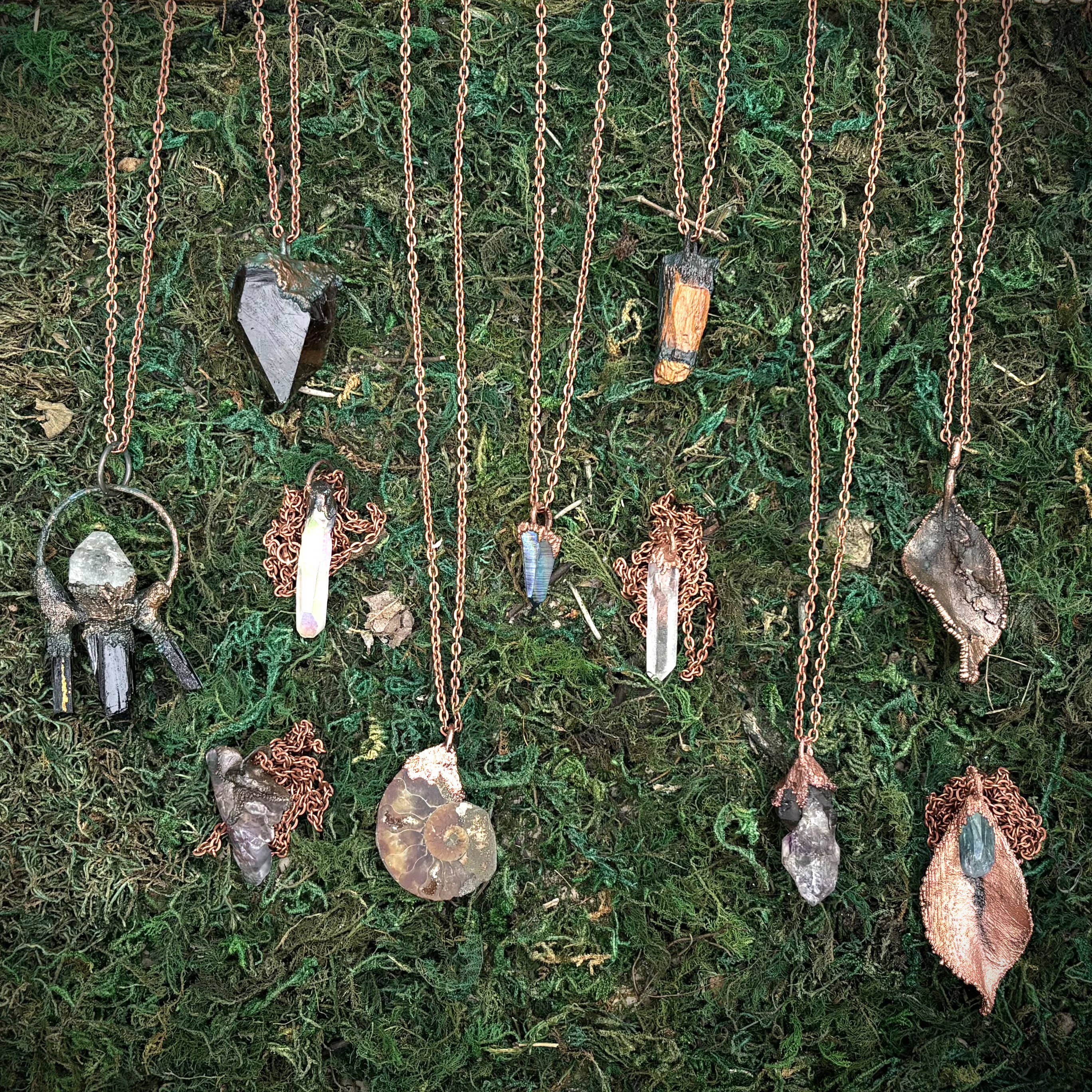 "As minhas criações são concebidas para adornar o vaso do espírito divino. Cada peça é intrinsecamente trabalhada com amor da Fonte e infundida com intenções astrológicas e pessoais através de cerimónia sagrada. Uma fusão harmoniosa da elegância bruta da Terra e da arte das mãos humanas. Este é o meu trabalho E o meu jogo. Esta é a minha oferta para ti."