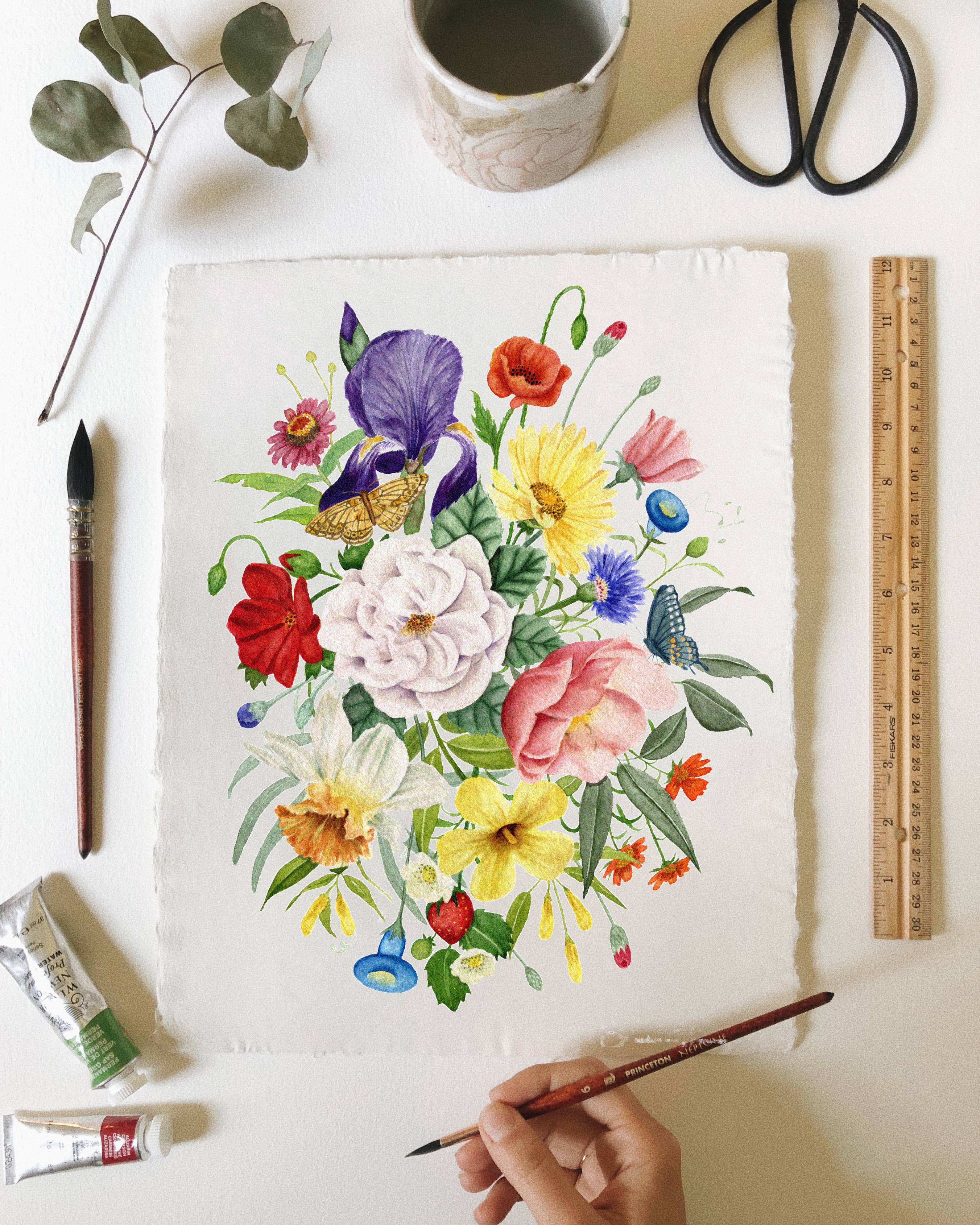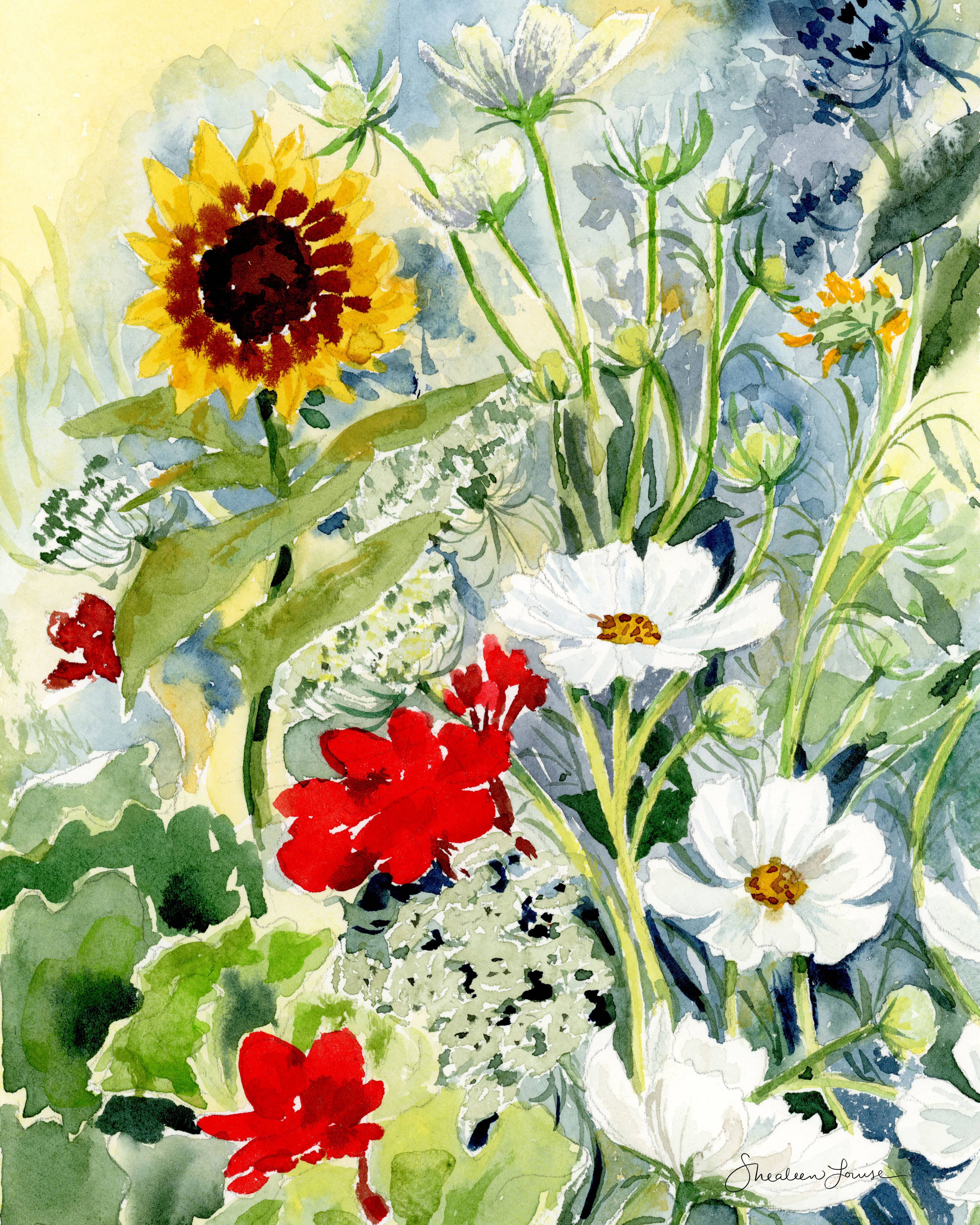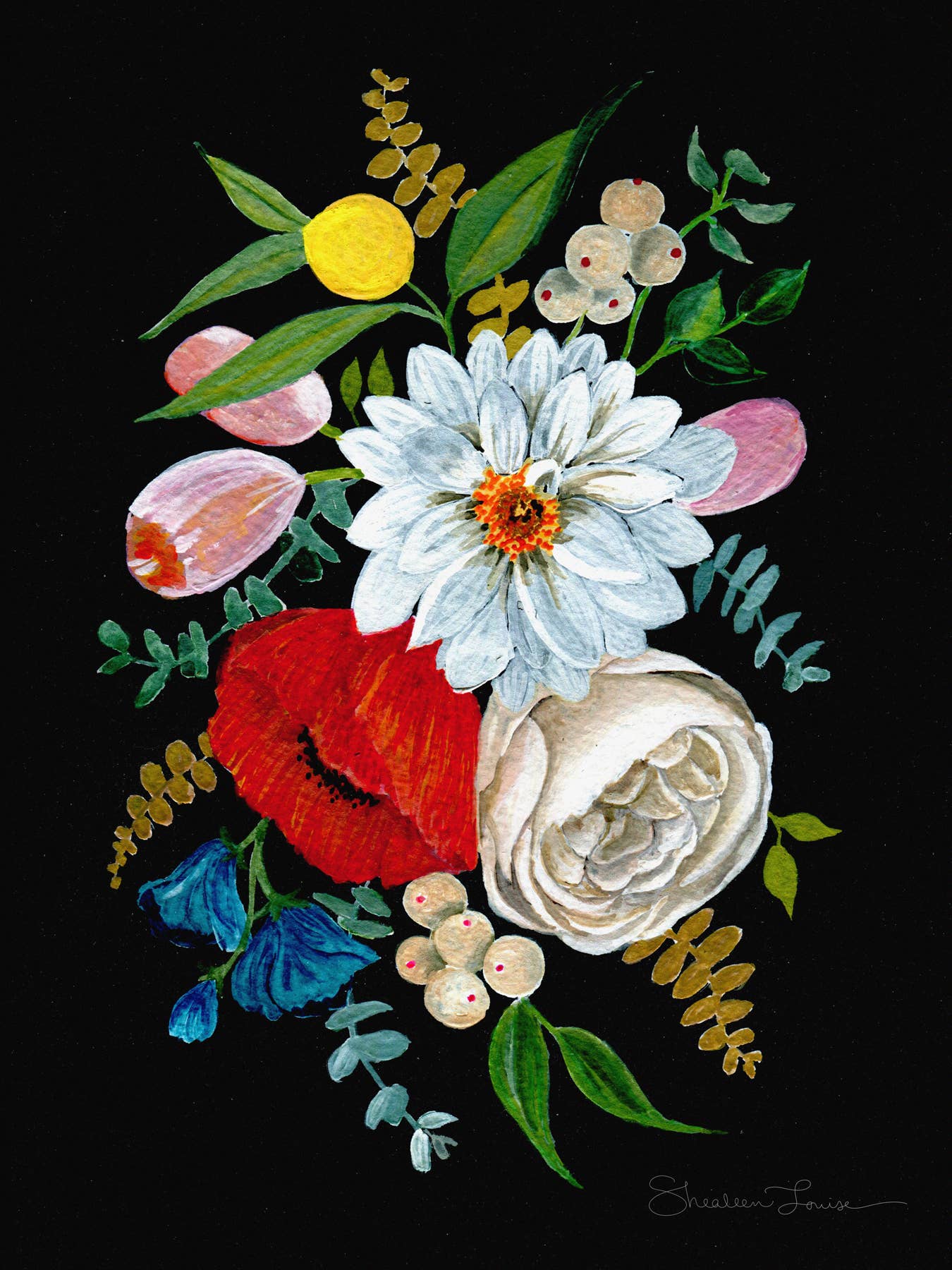 Olá! Sou Shealeen Louise Bishop — uma artista e educadora de aquarela que vive em Corrales, Novo México. Pinto flores detalhadas e expressivas que combinam beleza intemporal com um toque de charme moderno. Como mãe que fica em casa, muitas vezes pinto durante a sesta ou nos momentos tranquilos do dia (que são raros... Mas existem!). Acredito que este ritmo de criação lenta traz um toque intencional e sincero ao meu trabalho. Sou inspirada por flores (claramente), pela beleza do dia a dia e pelos momentos lentos e significativos da vida. A minha esperança é que cada peça traga paz e beleza onde quer que seja exibida.