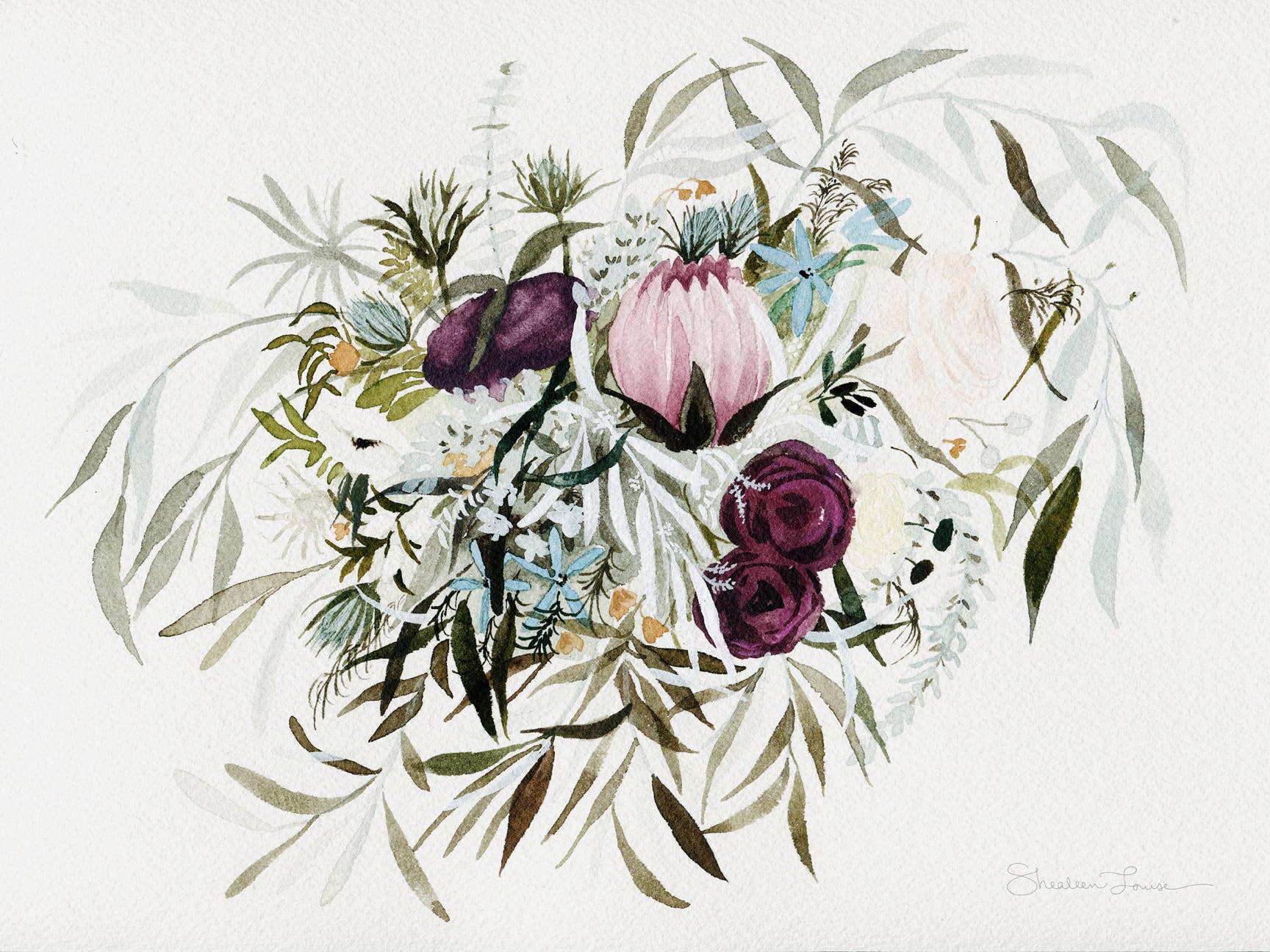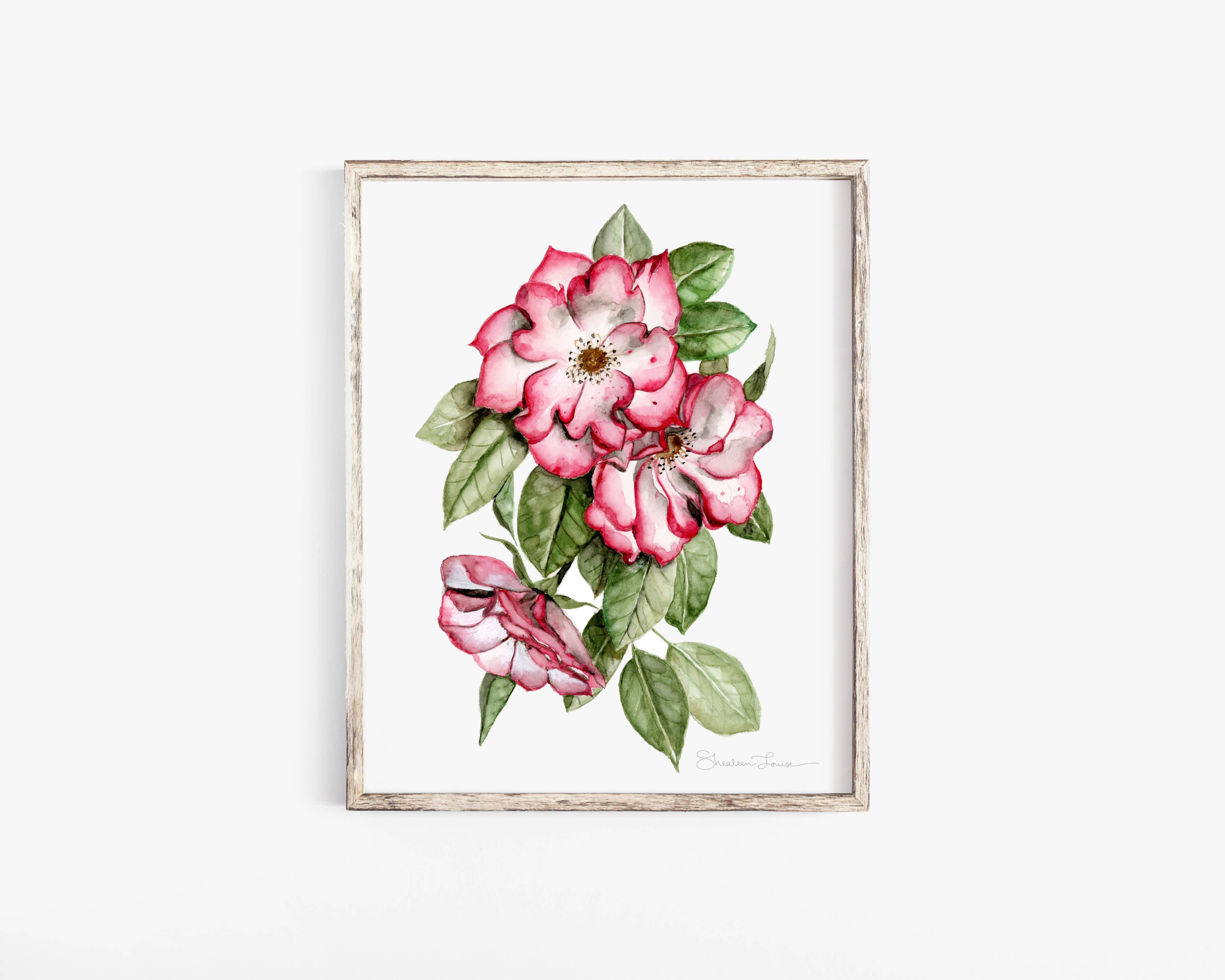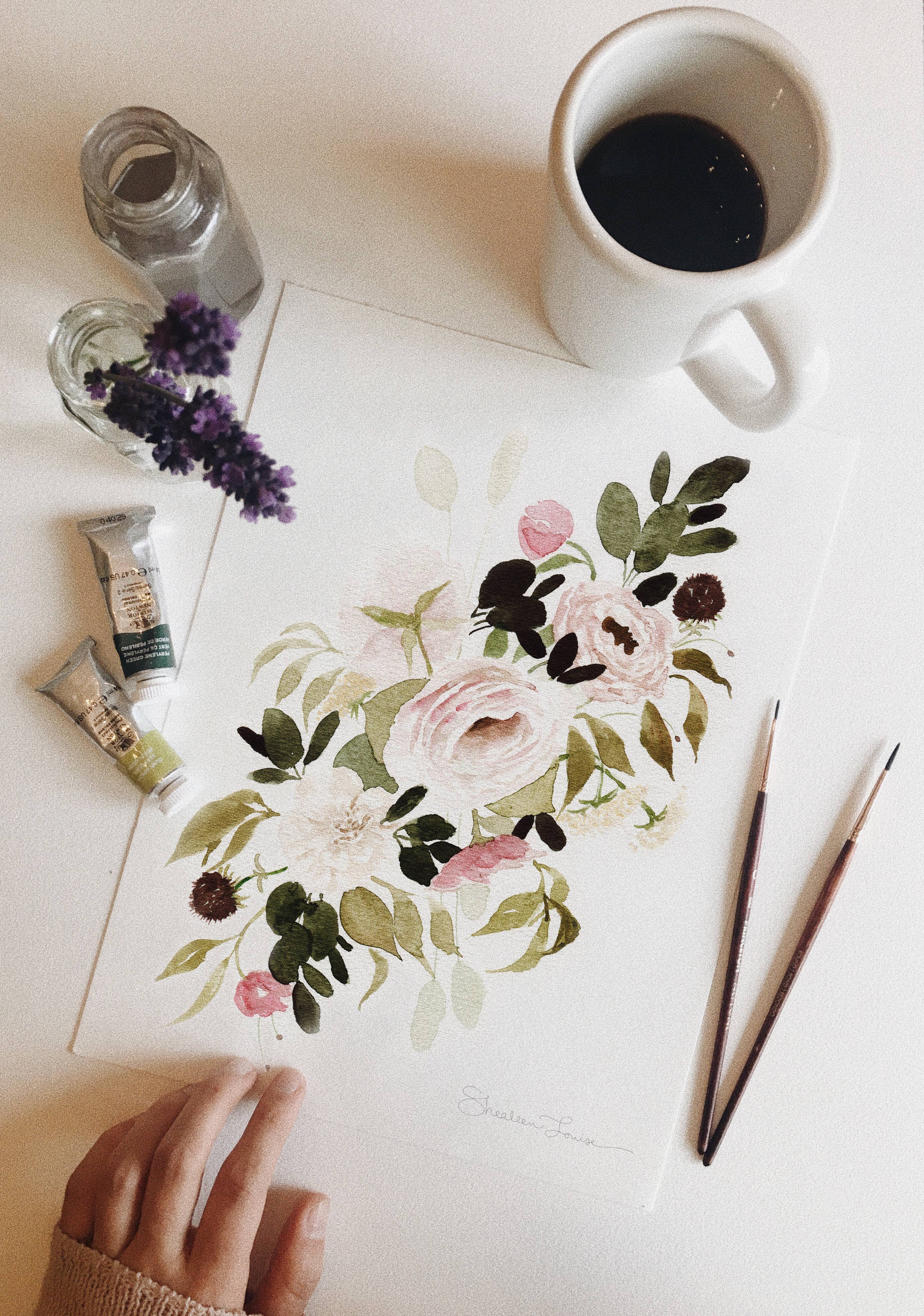 Olá! Sou Shealeen Louise Bishop — uma artista e educadora de aquarela que vive em Corrales, Novo México. Pinto flores detalhadas e expressivas que combinam beleza intemporal com um toque de charme moderno. Como mãe que fica em casa, muitas vezes pinto durante a sesta ou nos momentos tranquilos do dia (que são raros... Mas existem!). Acredito que este ritmo de criação lenta traz um toque intencional e sincero ao meu trabalho. Sou inspirada por flores (claramente), pela beleza do dia a dia e pelos momentos lentos e significativos da vida. A minha esperança é que cada peça traga paz e beleza onde quer que seja exibida.