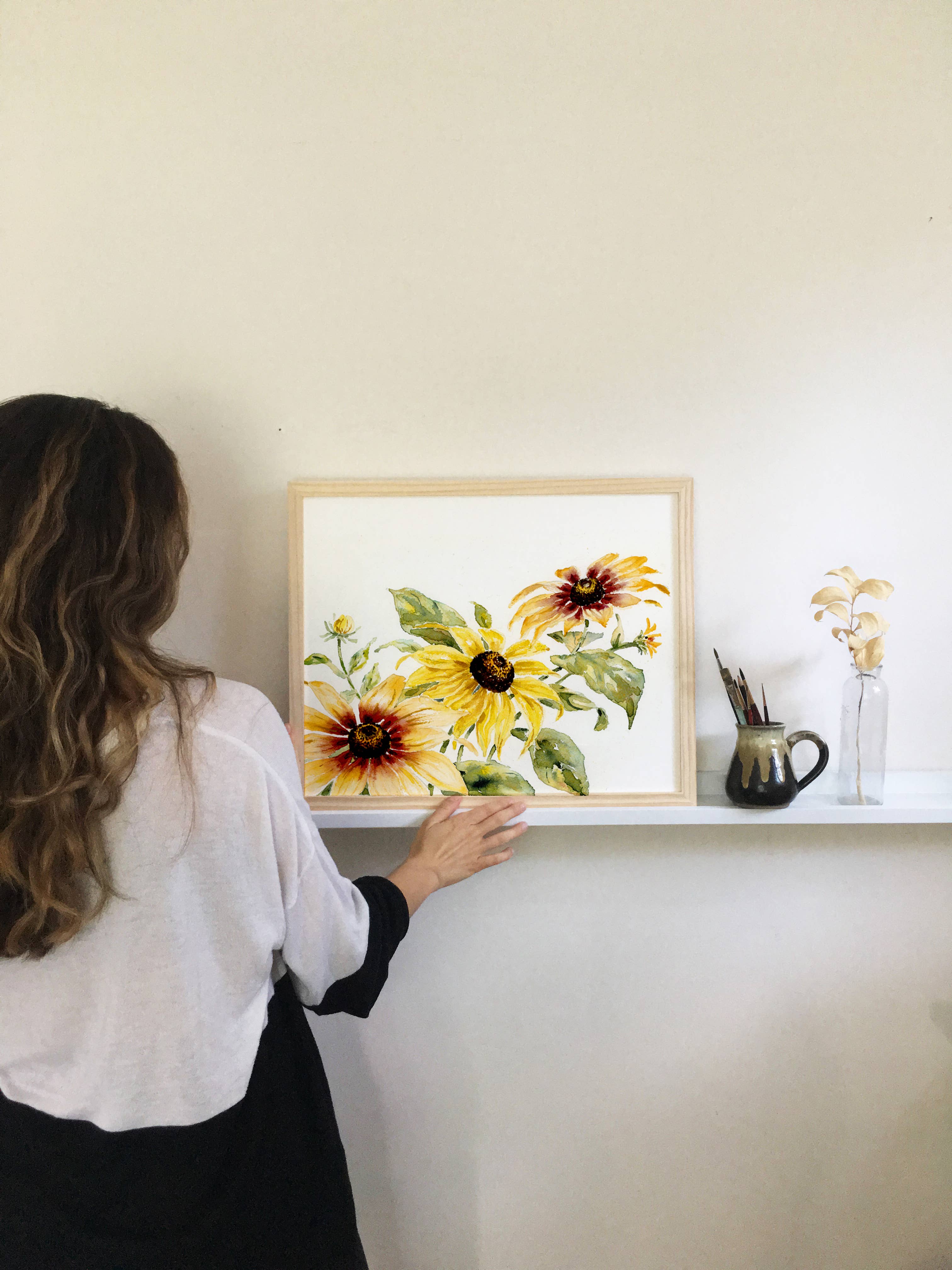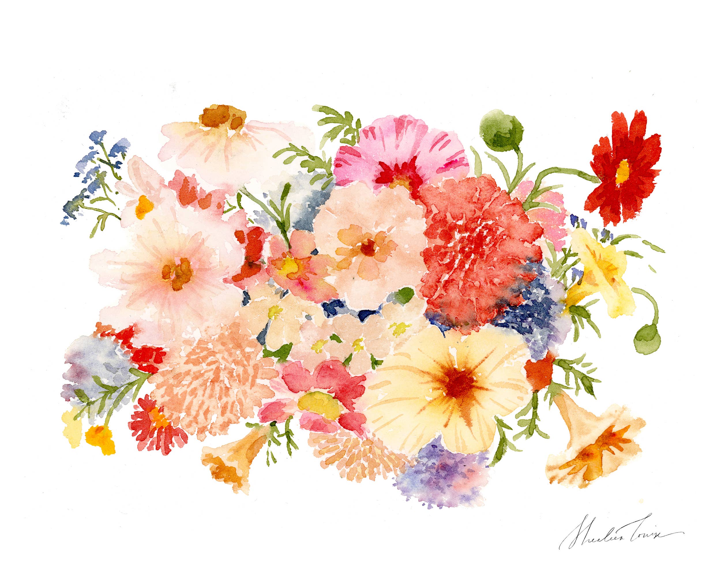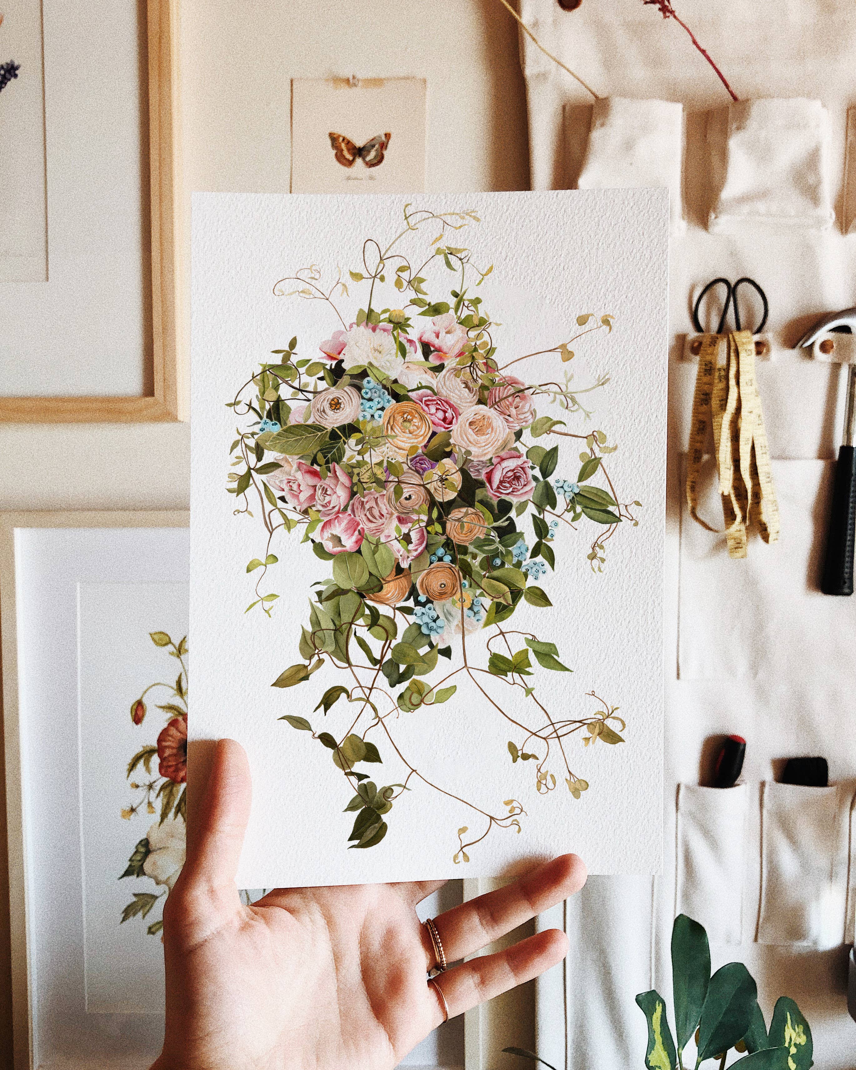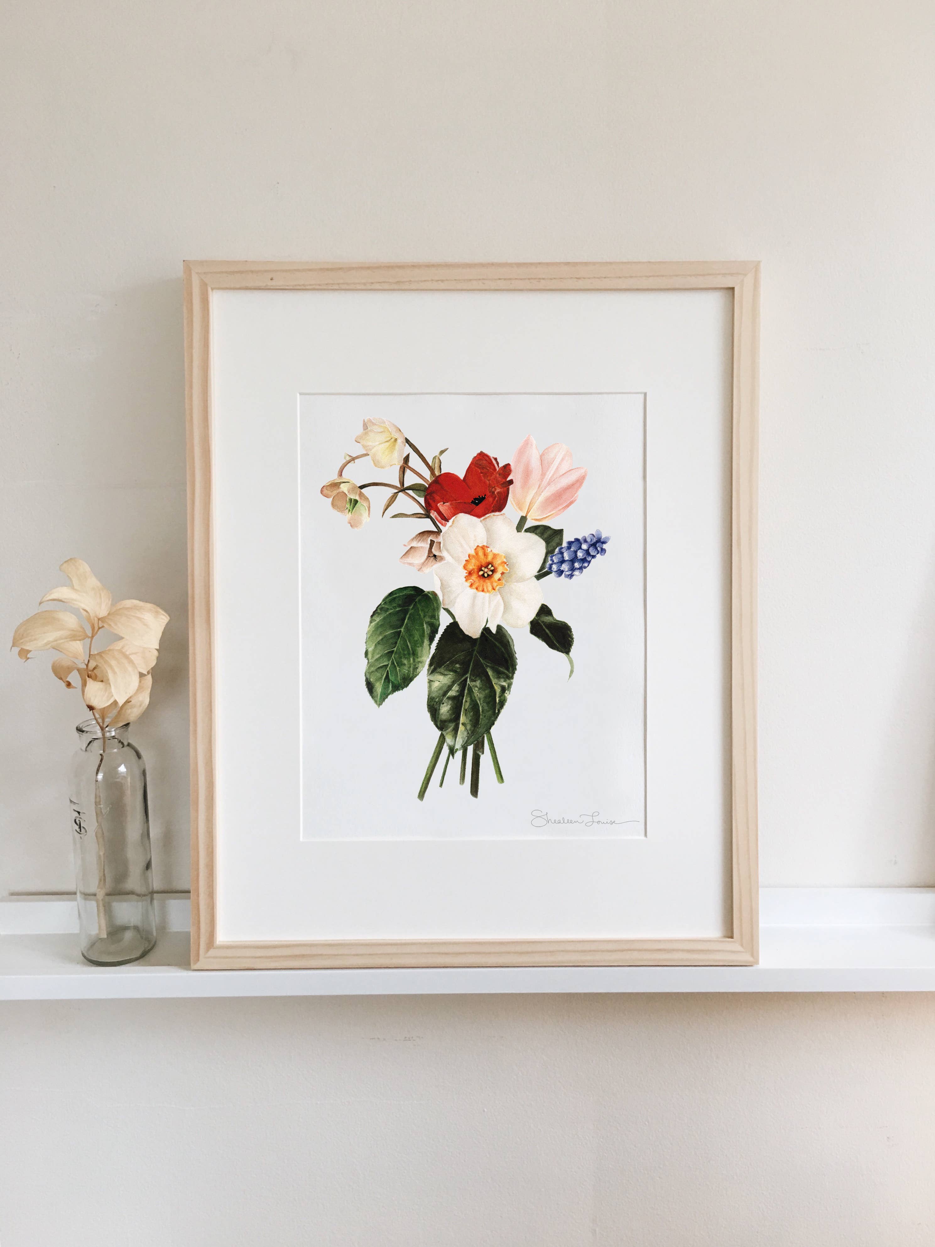 Olá! Sou Shealeen Louise Bishop — uma artista e educadora de aquarela que vive em Corrales, Novo México. Pinto flores detalhadas e expressivas que combinam beleza intemporal com um toque de charme moderno. Como mãe que fica em casa, muitas vezes pinto durante a sesta ou nos momentos tranquilos do dia (que são raros... Mas existem!). Acredito que este ritmo de criação lenta traz um toque intencional e sincero ao meu trabalho. Sou inspirada por flores (claramente), pela beleza do dia a dia e pelos momentos lentos e significativos da vida. A minha esperança é que cada peça traga paz e beleza onde quer que seja exibida.