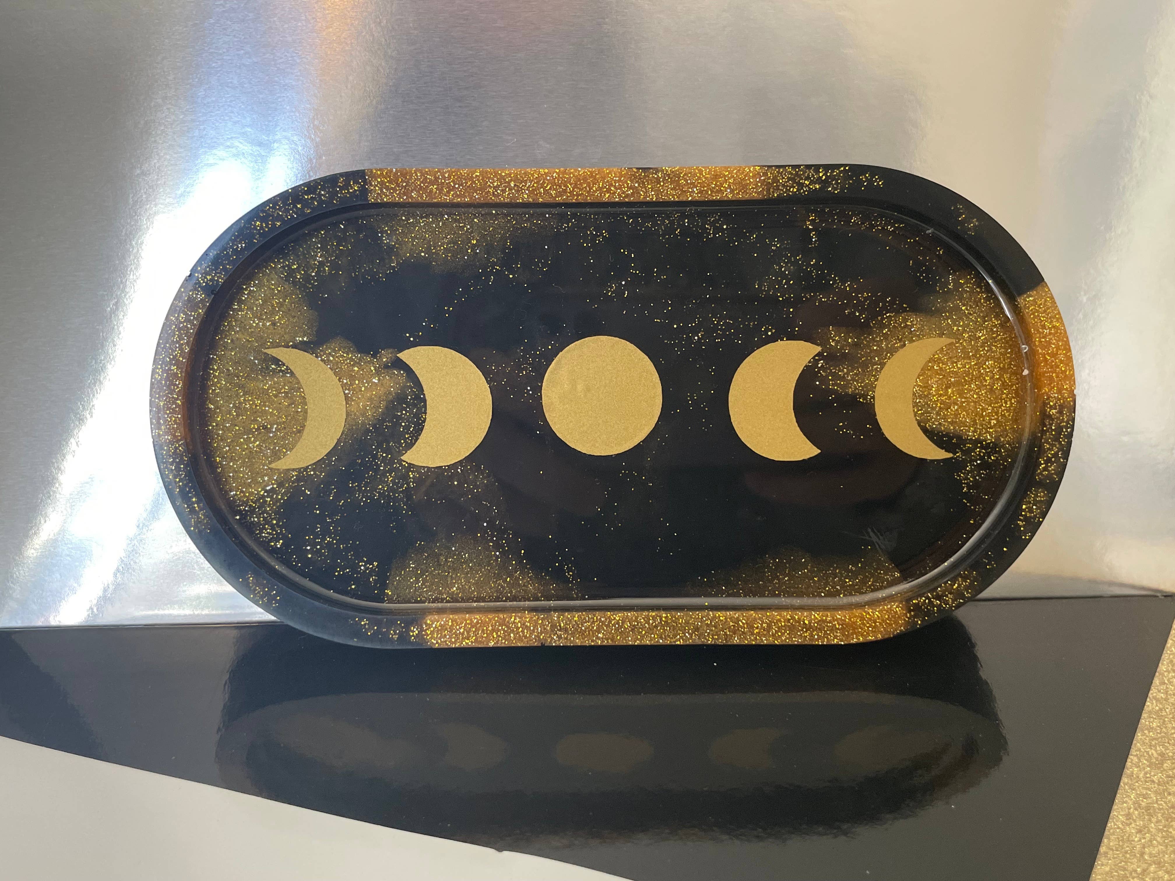 Alex é um artista sediado em Ion Long Island, Nova Iorque. Gosta de experimentar todo o tipo de meios, no entanto, tende a favorecer a resina. Há possibilidades infinitas e nada bate o seu brilho clássico! Ligeiramente obcecada com a lua, que está no centro da maior parte dos nossos “designs”.