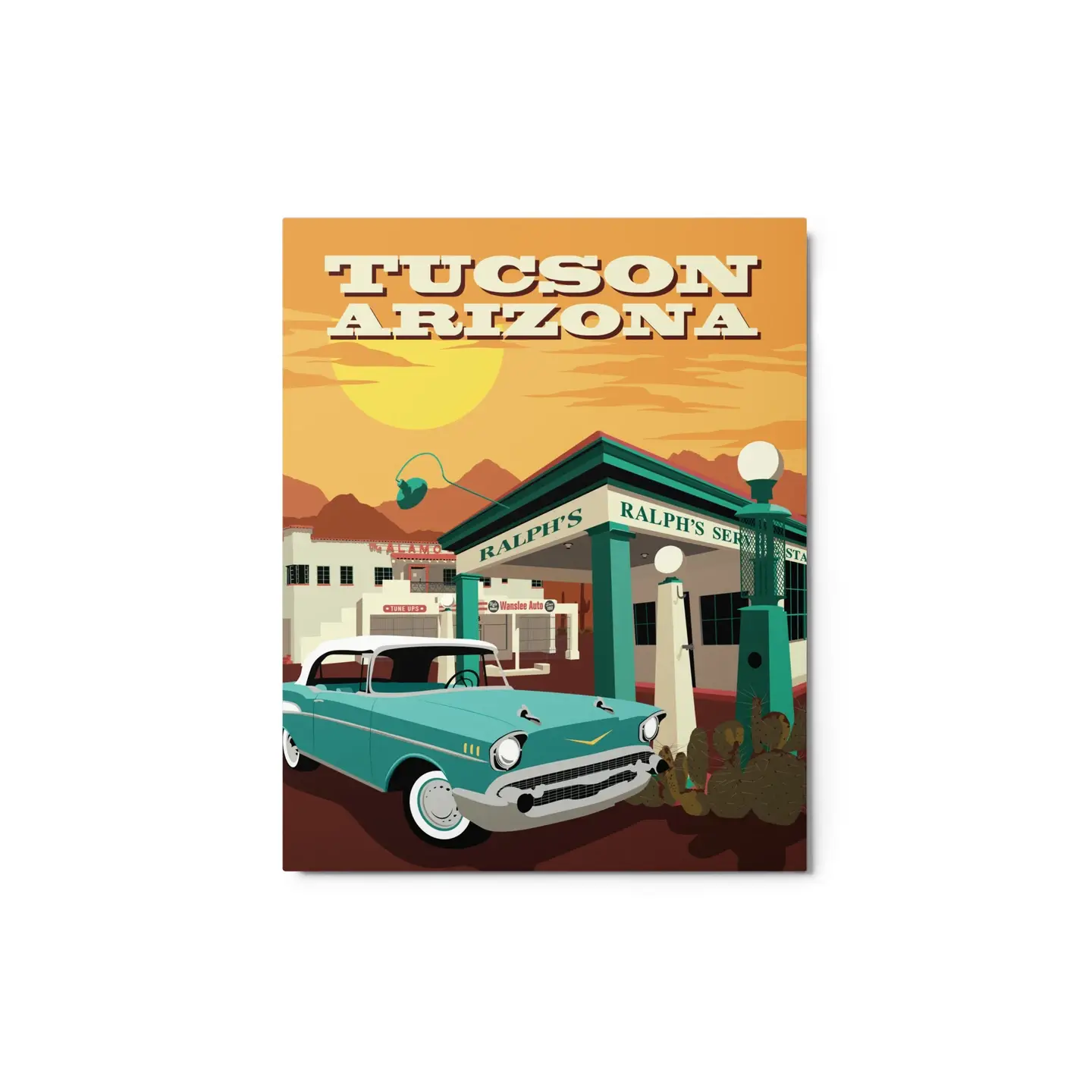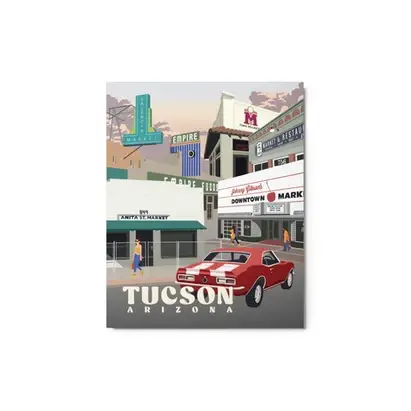 Em 2007, Dale teve a ideia de criar uma imagem retro impressionante para uma etiqueta de bagagem para tornar a sua mala de corpo duro identificável no aeroporto. O seu conceito e paleta de cores foram tão belamente ilustrados pelo artista gráfico Pete Marenfeld que uma parceria foi formada. Dale e Cricket, a sua outra metade, rapidamente decidiram que a beleza desta arte não podia ficar confinada às etiquetas de bagagem e continuaram a expandir as linhas de produtos juntos nos últimos dezessete anos. A RetroTrek oferece uma variedade de produtos com imagens icónicas de Tucson, incluindo autocolantes, impressões, etiquetas de bagagem, panos de prato, cartões postais, porta-chaves, cartazes e o nosso item de destaque todos os anos, o calendário. Temos o prazer de apresentar o melhor de Tucson e do Sudoeste em geral nos nossos produtos, que são produzidos em Tucson sempre que possível. Adoramos refletir a vibração da Tucson e interagir com clientes que apreciam a nossa visão.