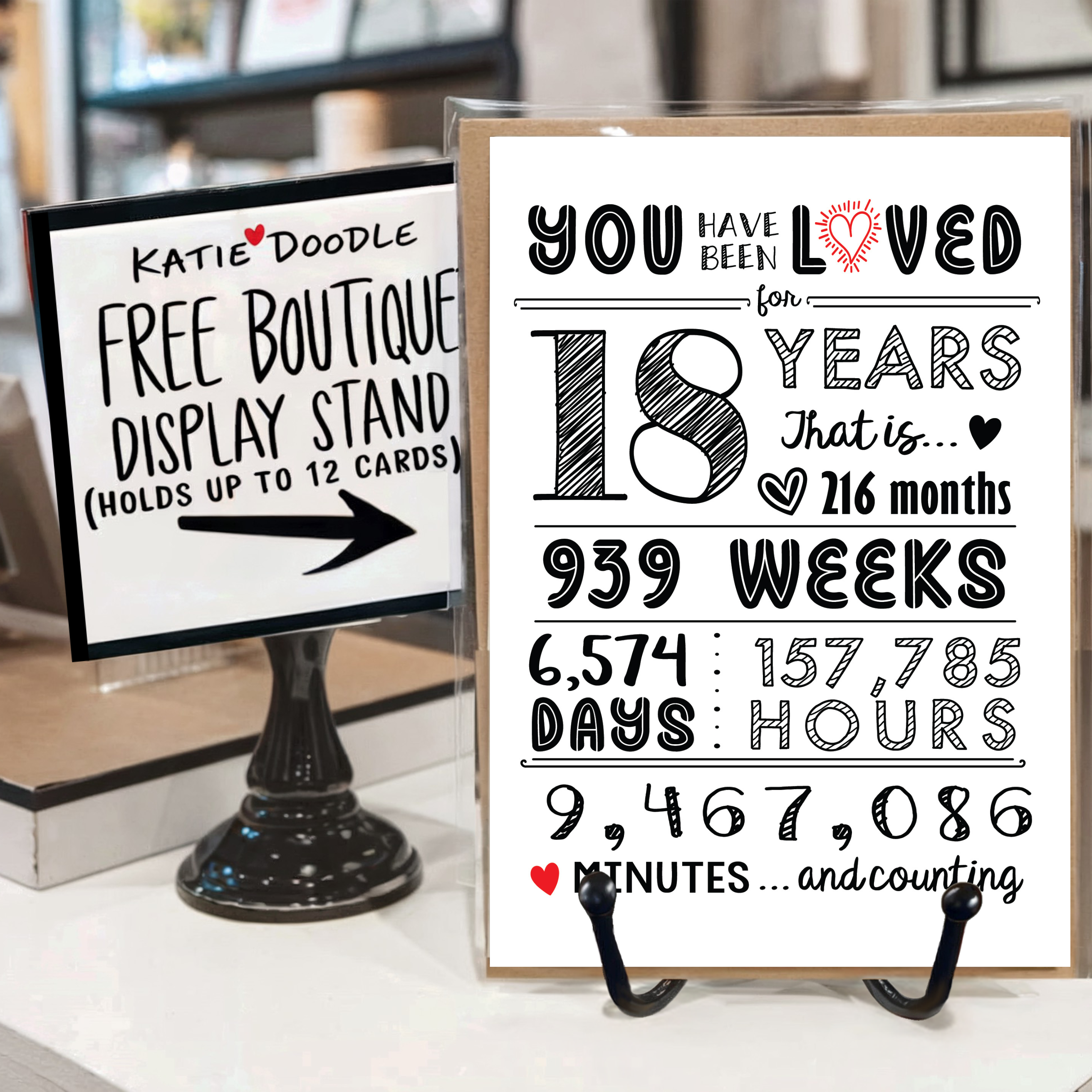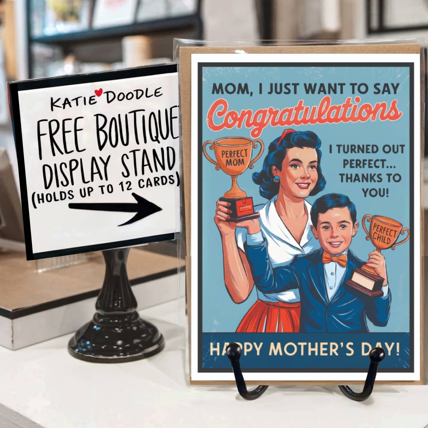SOBRE A KATIE DOODLE Fundada por Jamie em 2012, a marca começou com impressões personalizadas para a sua filha, Kate, e rapidamente ganhou popularidade à medida que amigos e familiares procuravam designs personalizados. Com mais de 1.500 lojas de presentes e boutiques nos EUA e no Canadá a venderem os seus cartões, a Katie Doodle estabeleceu-se como uma escolha de confiança para os retalhistas. A marca também apoia a Our Daughters International, uma organização comprometida em acabar com o tráfico humano no Nepal e além. Todos os cartões de felicitações da Katie Doodle vêm com um suporte de exposição GRATUITO, melhorando a sua apresentação nos balcões de venda. Este elegante suporte de metal preto suporta até 12 cartões, tornando-o uma adição perfeita para boutiques que procuram exibir a sua seleção de forma bonita e fácil! A Katie Doodle oferece envio gratuito todos os dias em todas as encomendas.