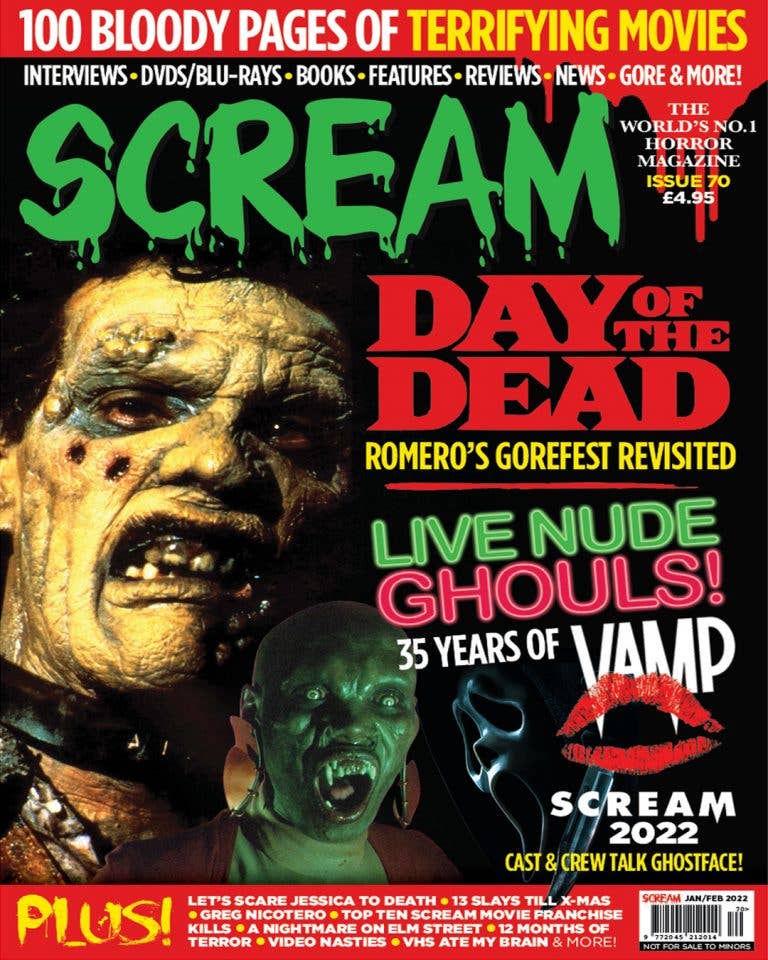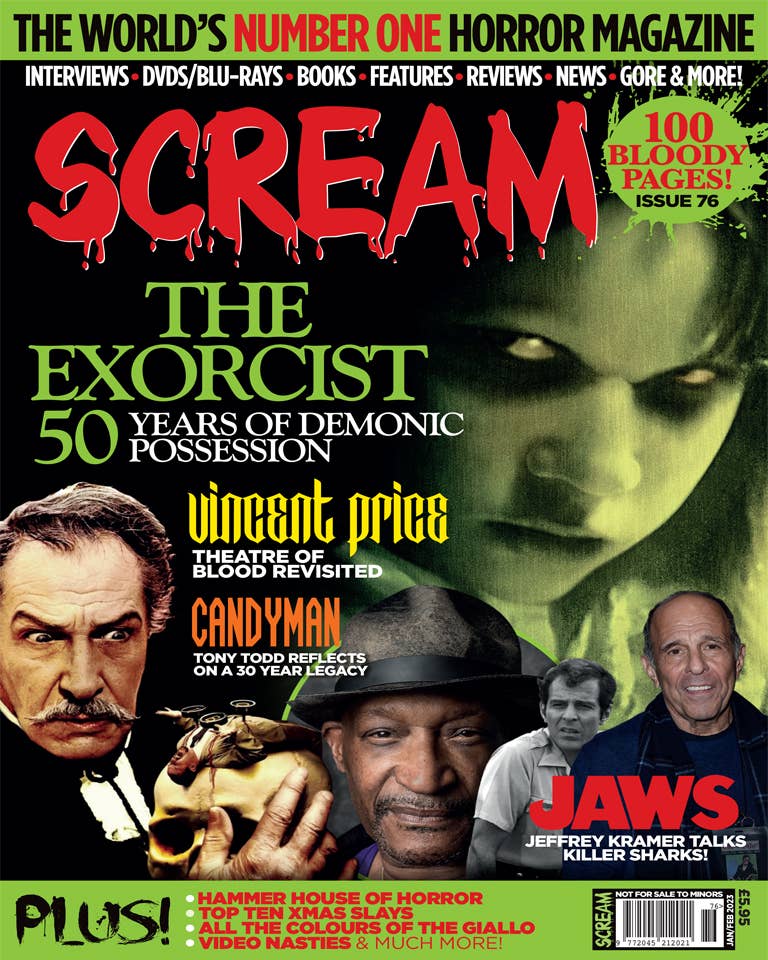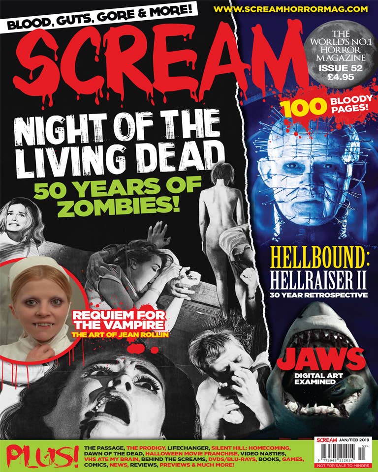 A publicação mais assustadora do mundo, SCREAM — Sangue, Tripas, Gore & muito mais! Somos a Revista NÚMERO UM HORROR DO MUNDO. Cobrimos filmes, entrevistas de celebridades, DVDs/Blu-rays, festivais, livros, jogos, banda desenhada, romances gráficos, ficção/não-ficção, fotografia, vestuário/moda, notícias, críticas, antevisões, competições, reportagens cinematográficas on-location & muito, muito mais! A SCREAM MAGAZINE (100 páginas por número) é publicada bi-mensal em estampado a cores sangrentas brilhantes.