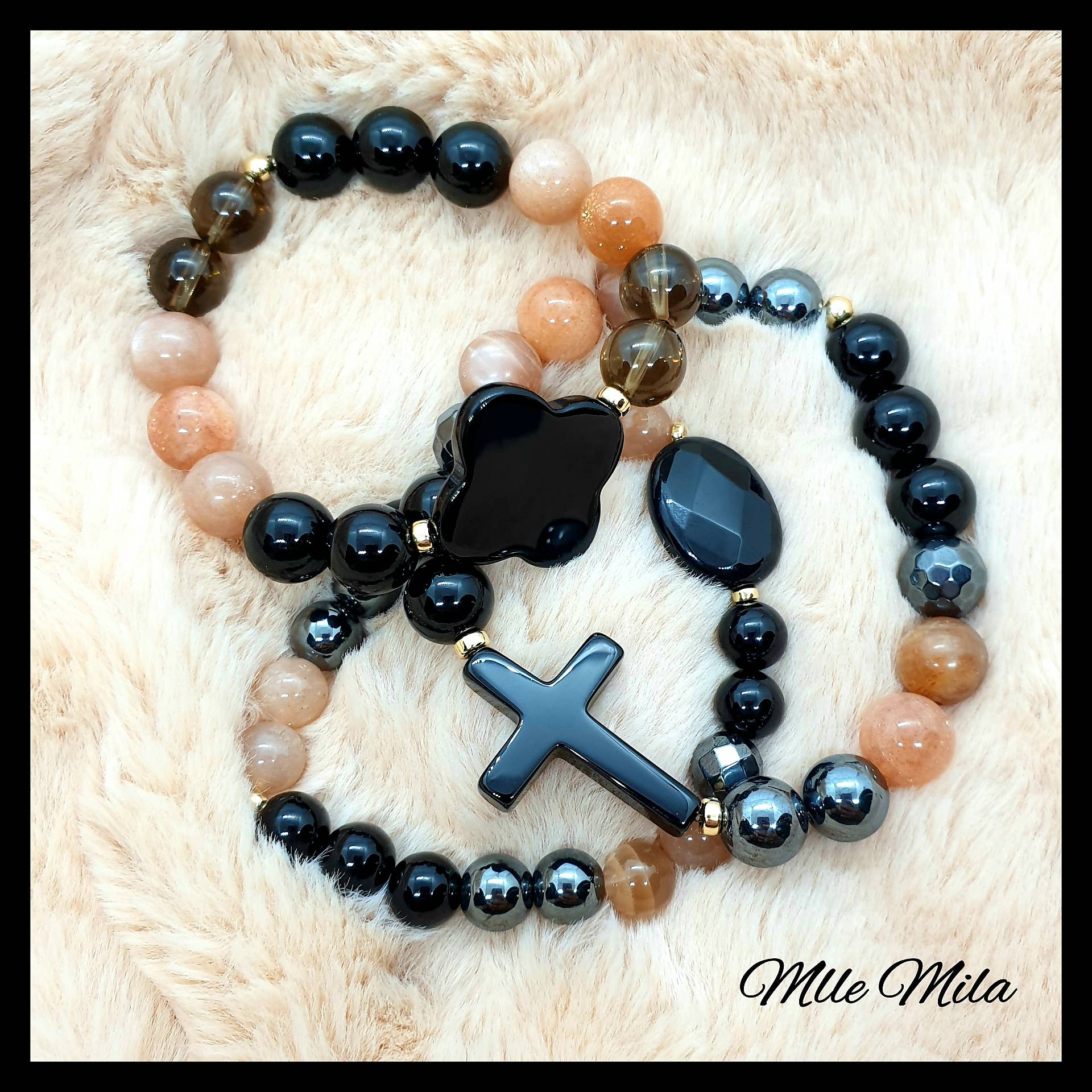 Criações únicas de pedras naturais semipreciosas, feitas à mão na França. Quem somos nós? Criada em 2018, Miss Mila nasceu de uma paixão por minerais que trouxe nossa família para Madagascar, a ilha dos recursos naturais e tesouros de pedras preciosas muito variados, que queremos compartilhar com o mundo inteiro através de nossas criações. Ofereço-lhe jóias exclusivas e artesanais de pedras naturais semi-preciosas cuidadosamente selecionadas para nossos clientes. Todas as nossas jóias são criadas na França, em nossa oficina em Auvergne e, em nossas coleções, damos preferência a: - A qualidade das pedras finas, AA+ (pedra solar, jade, quartzo rosa, ametista, ágata, pedra da lua, labradorita, cristal de rocha, lápis-lazúli, cornalina, olho de tigre...). - A autenticidade e origem dos nossos minerais são certificadas sem tratamento ou reconstituição. - Fixadores e lacunas em Gold Filled (5x mais grosso que o chapeamento de ouro) ou prata 925. Nossos modelos Coleção feminina, masculina e infantil Pulseira, colar, colar, colar, brincos, tornozeleira, rosário, anel e tornozeleira. Nossas jóias vêm em vários tamanhos de pérolas, diferentes cores e padrões (trevos, cruzes, flores, corações, hexágonos, quadrados, retângulos...). Insisto na minha capacidade de oferecer joias feitas sob medida e totalmente personalizáveis. Senhorita Mila