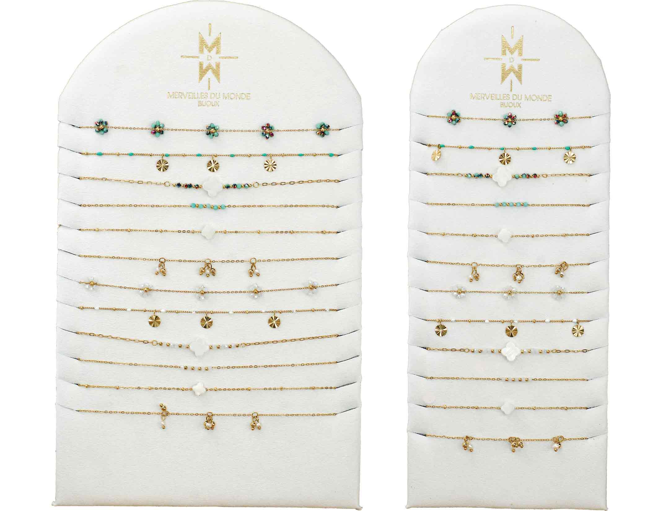 Maravilhas do mundo é uma marca francesa, criada em 2001, sediada em Hauts de France. Criamos bijuterias, acessíveis e de alta qualidade para Homem, Mulher e criança. A nossa coleção é composta por bijuterias em Aço Inoxidável, bijuterias em materiais naturais como a Madrepérola, a Madeira e as pedras. As nossas pedras são frequentemente tratadas por razões principalmente estéticas. As bijuterias em pedras são vendidas pela sua estética cuidada e não pelas suas virtudes, uma vez que não há fatos cientificamente comprovados sobre as virtudes das pedras. As nossas bijuterias são vendidas a retalho ou em pack "pronto a vender". Para os nossos clientes revendedores, aconselhamos uma Margem de 3 a 4. Os nossos prazos de entrega são de 24/48 horas. Todas as nossas bijuterias têm garantia de 1 ano.