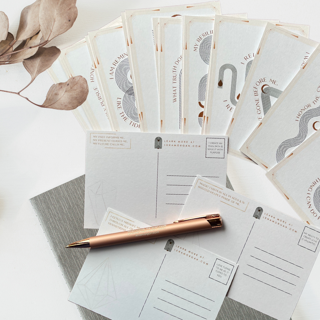 Parteira há mais de uma década, Lena está trazendo a sabedoria da sala de parto para todas as transições da vida. A coleção StoryHealer é uma maneira moderna e significativa de traçar um novo caminho para a cura pessoal. Com um baralho de belos cartões de afirmação e diário correspondente, qualquer pessoa pode se parteira através de seu próprio renascimento. Um conjunto de cartões postais expande os cartões de afirmação para criar conexão com aqueles que estão distantes. A caneta gravada é uma bela adição ao conjunto de cartões postais e ao diário. As impressões artísticas completam a coleção trazendo arte com profundidade para qualquer espaço. O caminho para a cura agora pode ser tão bonito quanto significativo.