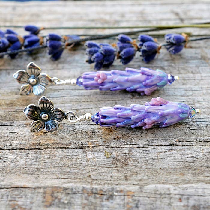 Andrea é o único artesão por trás de Lavender Beads. Baseada nas belas ilhas de San Juan, situada no coração do noroeste do Pacífico, desenvolve os seus métodos de tocha há mais de 25 anos. Fundindo as suas paixões pelo trabalho em vidro e lavanda, inspira-se nas muitas variedades únicas que crescem na quinta biológica local onde trabalhou nas últimas duas décadas desenvolvendo produtos de valor acrescentado a partir de flores de lavanda e óleo essencial. Andrea passa os seus dias no seu estúdio de joalheria, a criar flores de lavanda intrincadas e botanicamente precisas a partir de vidro. Inspirada nas variedades da querida quinta local, trabalha para captar a essência da forma da planta, desde a primeira fase de brotamento até a plena floração. A partir daí, ela usa folhas de prata esterlina e cristais Swarovski para dar retoques finais cintilantes a pingentes, pulseiras e brincos. As suas pulseiras de aromaterapia neutras em termos de género mais vendidas usam pedras de lava porosas para absorver o óleo essencial de lavanda, para que possa levar consigo o doce cheiro de ervas onde quer que vá. Cada peça da linha de joalharia serve não só como acessório, mas também uma lembrança única de uma visita a uma loja de lavanda ou loja de quinta. Encontre a sua próxima linha de joalheria única aqui, na Lavender Beads!