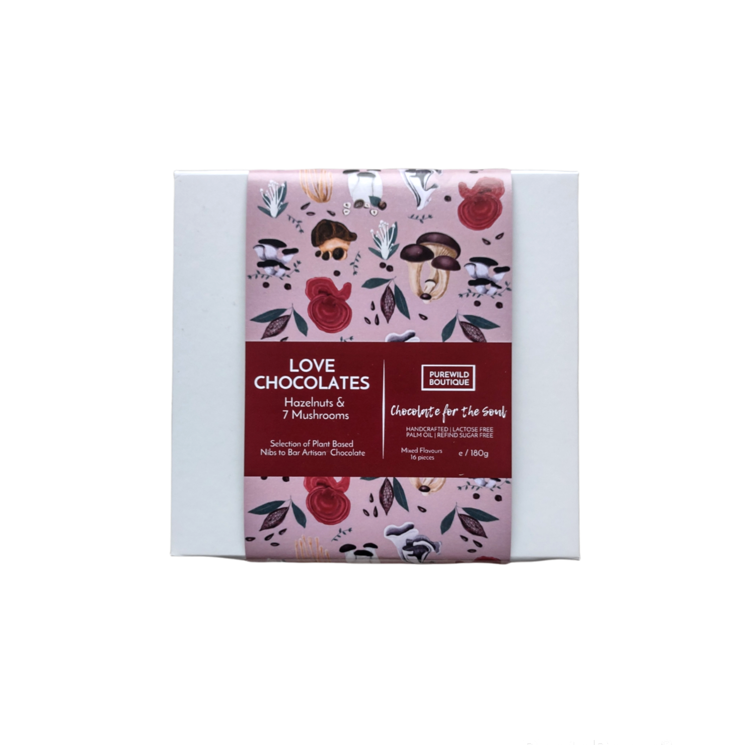 A BOUTIQUE PUREWILD É UMA PRODUTORA ARTESANAL DE CHOCOLATE ARTESANAL EM PEQUENA ESCALA. NOSSOS CHOCOLATES SÃO À BASE DE PLANTAS, SEM GLÚTEN, SEM ÓLEO DE PALMA FEITOS COM INGREDIENTES ORGÂNICOS. NOSSO FOCO É CRIAR A MELHOR E MAIS SAUDÁVEL EXPERIÊNCIA DE CHOCOLATE. COM PAIXÃO E AMOR, ACREDITAMOS NO PODER DE CURA DO CACAU. ALGUNS DOS BENEFÍCIOS SÃO AUMENTAR O FOCO E A CONCENTRAÇÃO, PERMITINDO QUE VOCÊ SE CONECTE COM SEU CORAÇÃO. É UMA FERRAMENTA BONITA E PODEROSA. É POR ISSO QUE CRIAMOS ESSES CHOCOLATES INCRÍVEIS. COM UMA MISTURA EXTRA DE COGUMELOS MEDICINAIS AJUDARÁ A NUTRIR, DESPERTAR SEU CORPO E ALMA A CADA MORDIDA QUE VOCÊ DER! Os cogumelos medicinais têm sido usados na medicina oriental há milhares de anos. Lion's Mane para um impulso cerebral, Reish pode aliviar a ansiedade, aliviar a depressão e incentivar um sono melhor, Chaga pode ajudar com o envelhecimento da inflamação reduzindo o LDL, Shiitake pode ajudar com redução da saúde do coração do colesterol pressão arterial e circulação, Cordyceps pode ajudar o corpo a utilizar oxigênio de forma mais eficiente e melhorar o fluxo sanguíneo, Maitake pode ajudar a reduzir o colesterol, melhorando a funcionalidade da artéria, Tremella Hidratante da Pele e Reduzindo Rugas.
