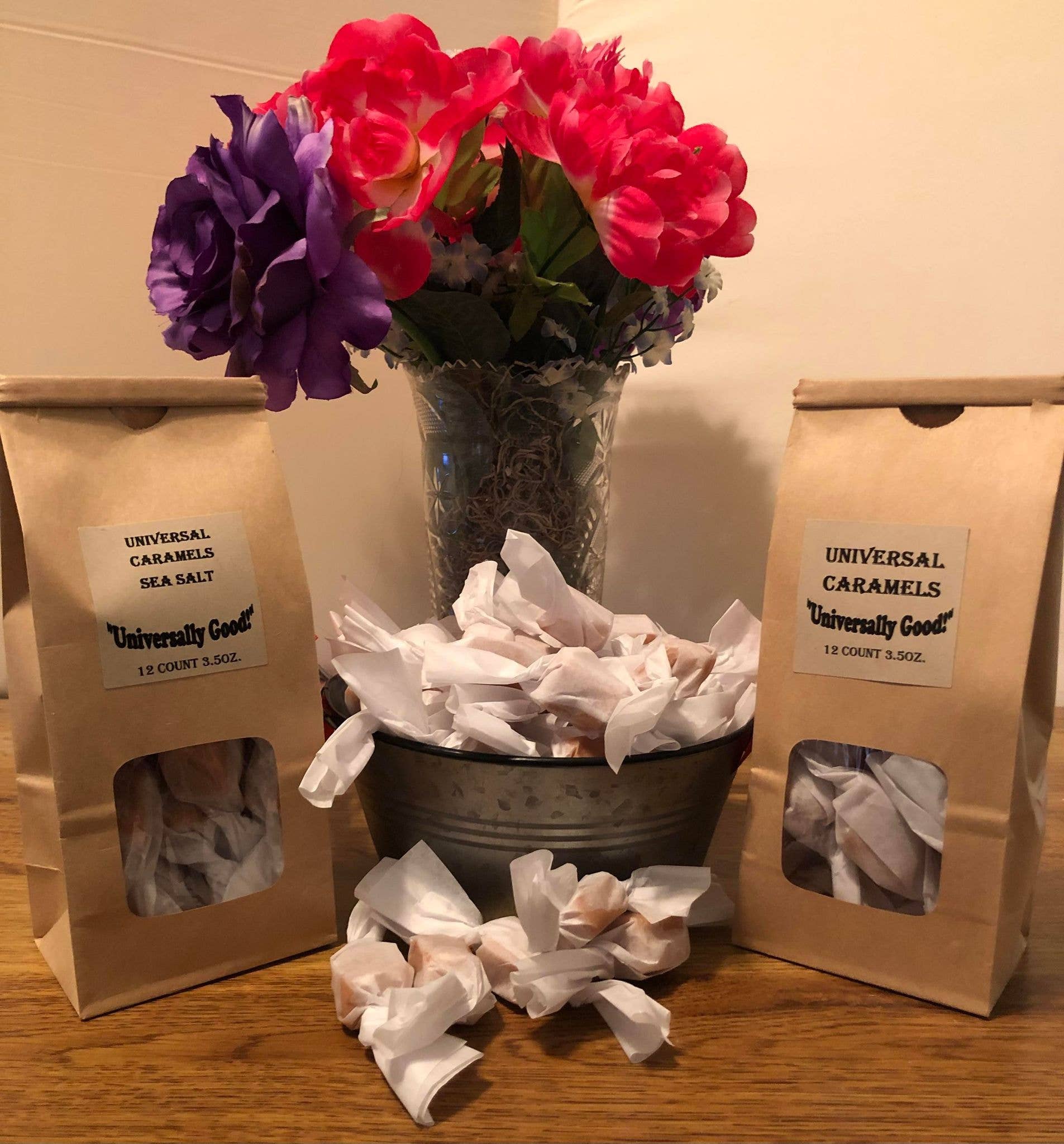 A Universal Caramel Company usa apenas os ingredientes mais frescos para fazer os melhores caramelos do mundo. Localizada em Conway, Carolina do Sul, a Universal Caramel Company vende os seus deliciosos, gourmet e tradicionais caramelos em feiras, lojas de retalho, convenções e festivais por todos os Estados Unidos. 17 sabores e a crescer! Eles também enviam os seus caramelos para todo o mundo. Comprometidos em fazer o melhor produto possível, garantem que nunca provará um caramelo melhor. Ponto final. Essa é a sua Garantia de Satisfação a 100%. Visite a nossa loja e obtenha o seu saco de caramelos hoje. Temos a certeza de que concordará, eles são "Universalmente Bons"!