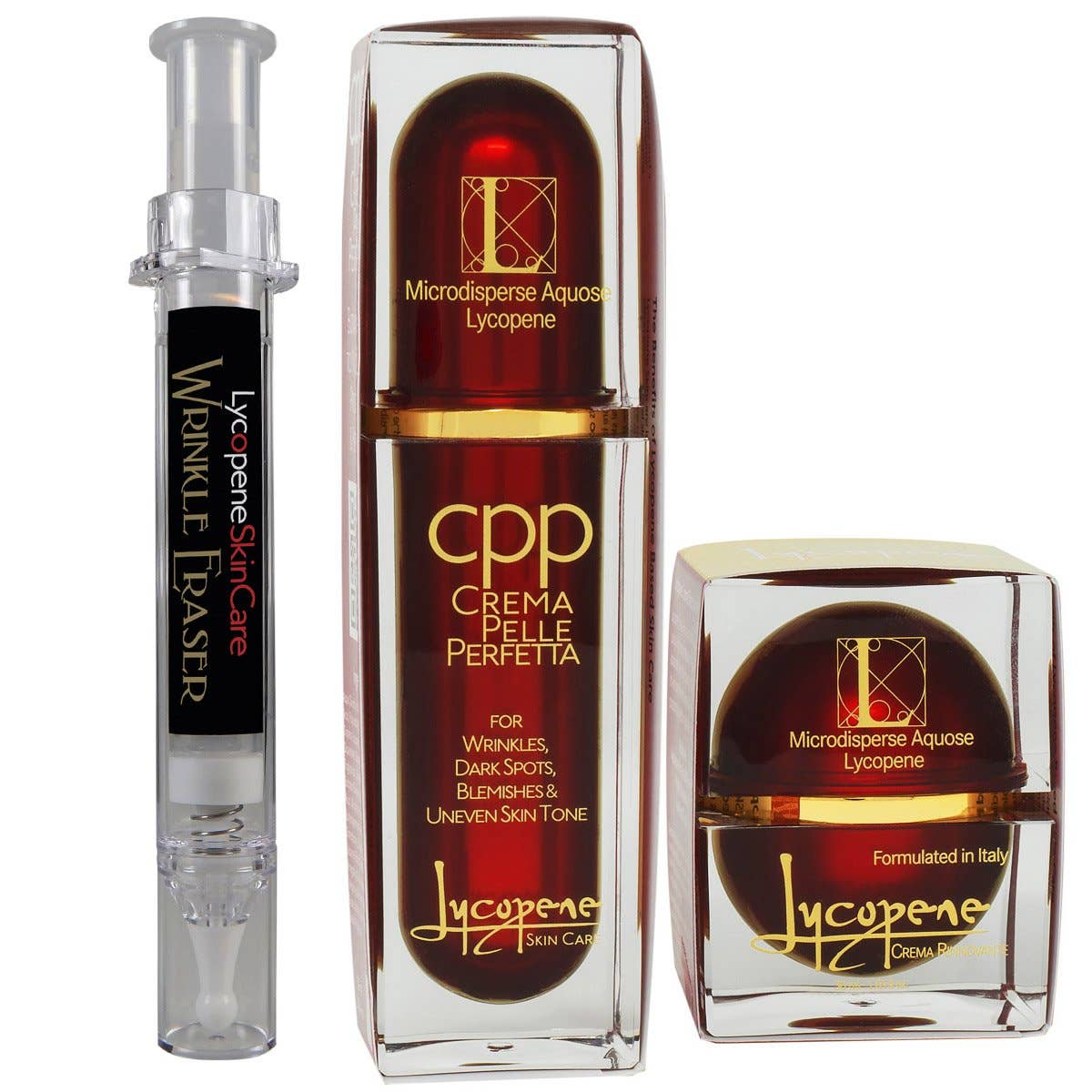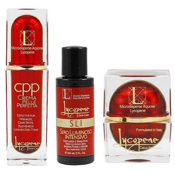 Os médicos da Lycopene Skin Care, em colaboração com uma das principais universidades italianas para pesquisa antienvelhecimento, desenvolveram uma linha completa de produtos para a pele incorporando uma formulação proprietária de Aquose Micro-Dispersed Lycopene junto com outros botânicos conhecidos ao longo dos tempos por seus propriedades benéficas na promoção da saúde da pele, em um complexo totalmente novo para a indústria de cuidados com a pele. A base deste complexo é uma forma concentrada, pura e altamente absorvível de licopeno extraída de tomates orgânicos italianos. Esta forma purificada de licopeno, livre de subprodutos residuais do tomate, é incomparável no combate aos efeitos nocivos da exposição constante a poluentes ambientais e aos raios UVA e UVB do sol conhecidos por acelerar o processo normal de envelhecimento da pele. Nossos produtos ricos e complexos hidratam, renovam, rejuvenescem e protegem sua pele, ao mesmo tempo em que abordam várias imperfeições da pele, como pele com manchas vermelhas irregulares, manchas escuras/da idade, inchaço sob os olhos e rugas.