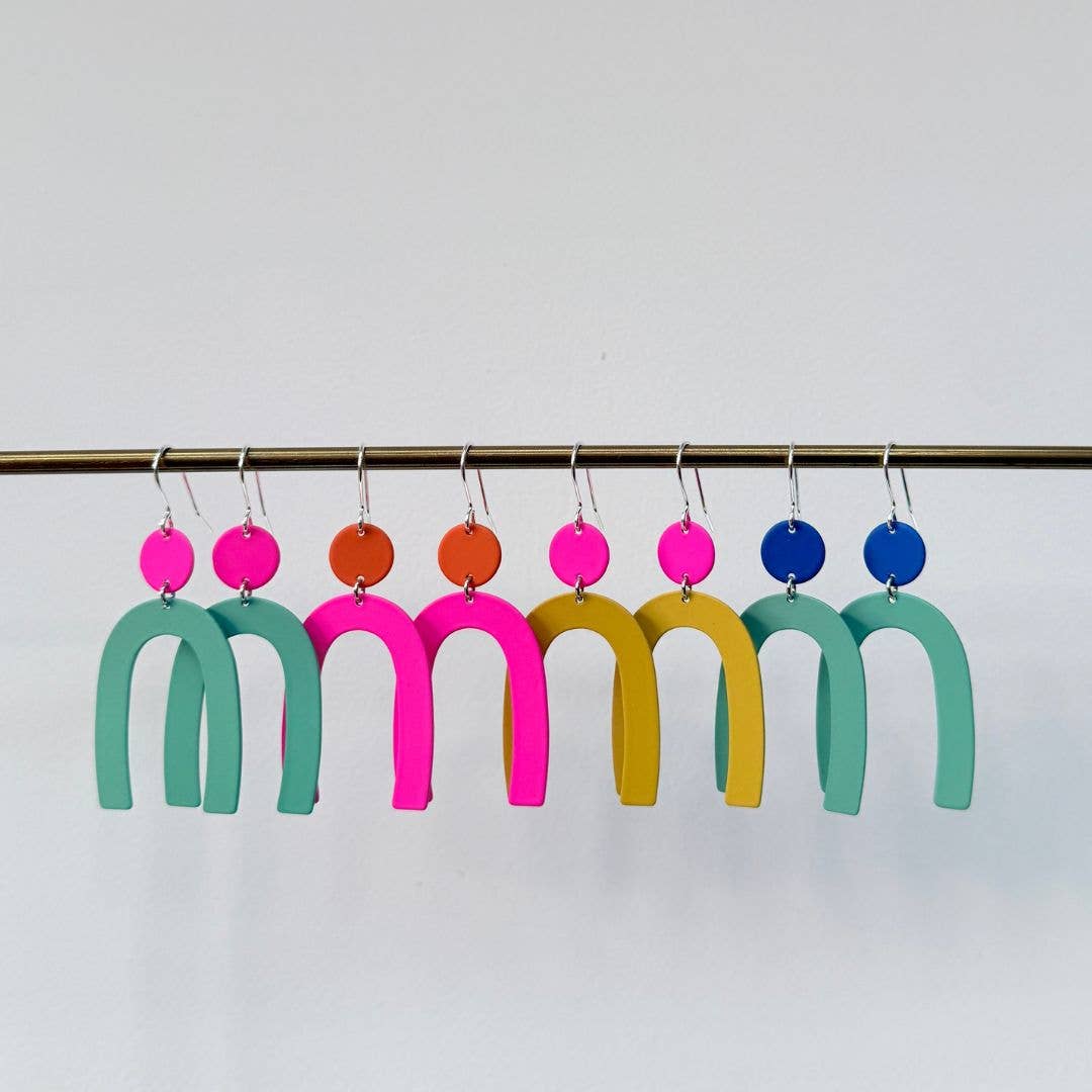 Fundado por Kylie Dunn em 2015, o negócio começou como um projeto de licença de maternidade (em homenagem aos avós de Kylie). Ao longo dos anos, tornou-se uma marca de joalharia premiada e vibrante, amada por clientes e armazenistas em todo o Reino Unido e agora nos EUA. Adoramos cores vivas, design minimalista e formas geométricas e criamos joalharia fácil de usar. É montado à mão e despachado do nosso estúdio em Wokingham, Berkshire. Temos um excelente serviço ao cliente e excelentes avaliações. Os nossos brincos são o pick-me-up perfeito e são concebidos para fazer o utilizador sentir-se bem. Pode sentir-se confiante ao encomendar connosco - sabemos que os seus clientes vão adorar usar as nossas joias divertidas e alegres e estarão de volta uma e outra vez para adicionar à sua coleção.