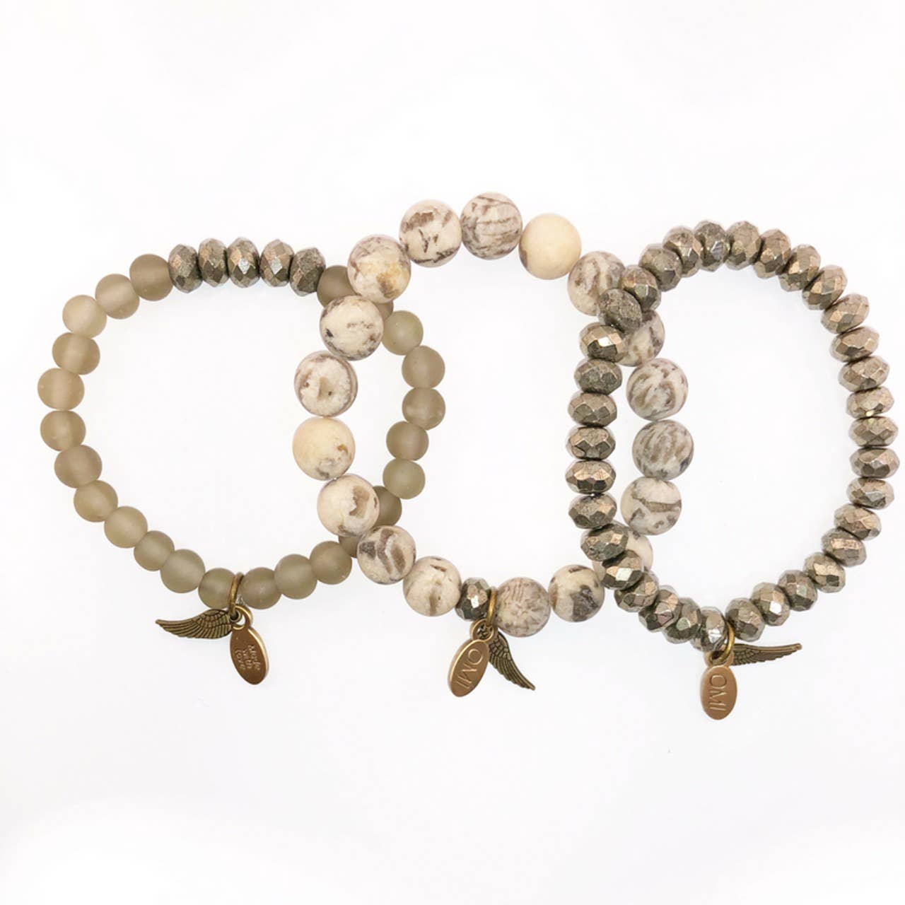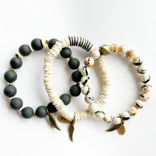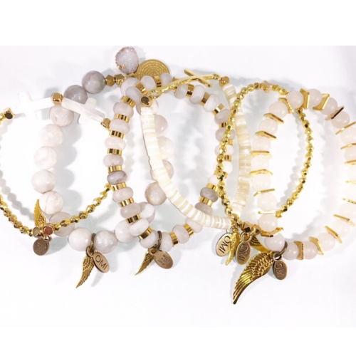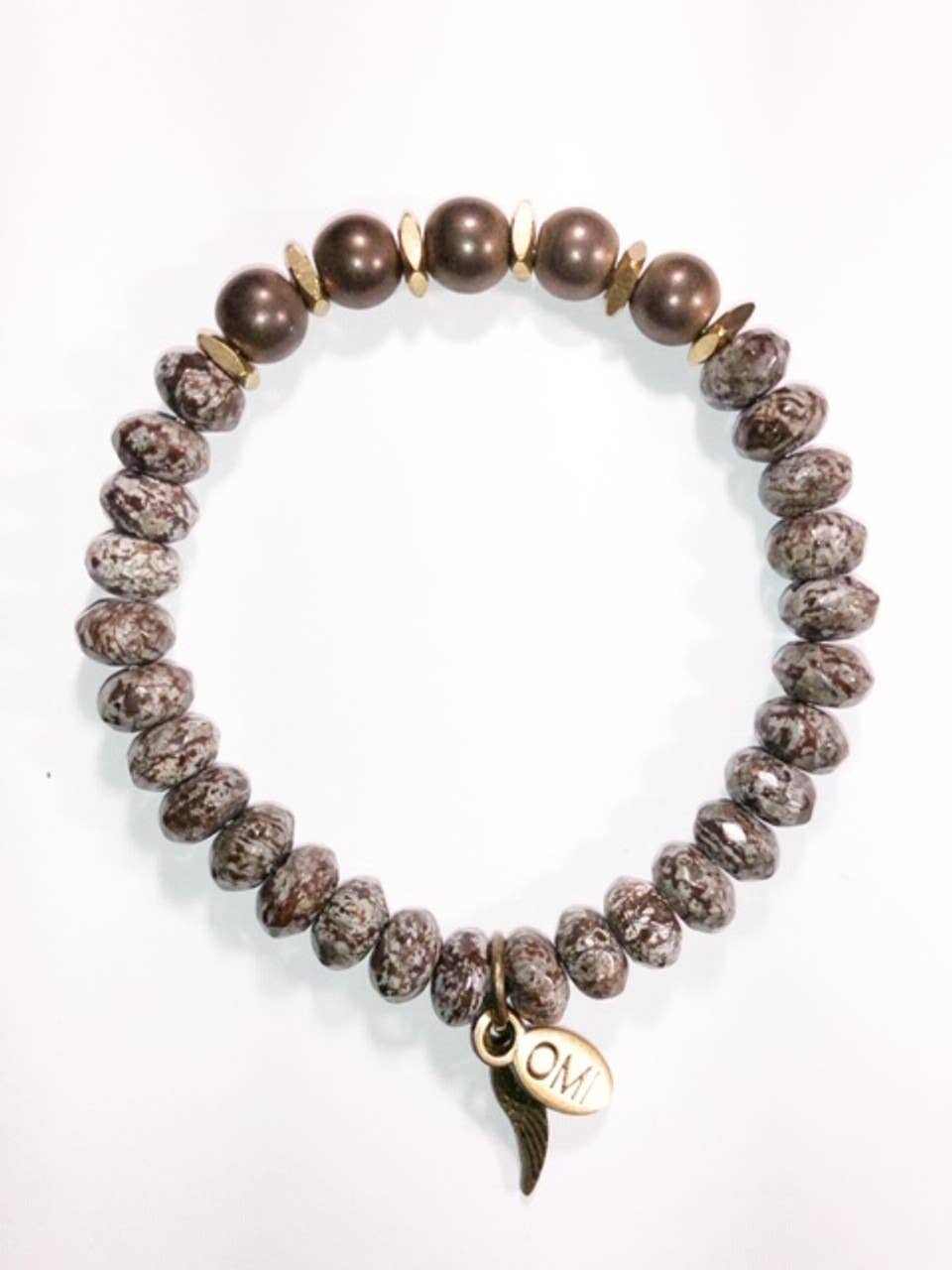 As Contas OMI são feitas pelo designer de joias com base em Nashville, Joy OMI Walling. As suas raízes são da Carmel, Califórnia onde o oceano foi sempre a sua maior inspiração. A visão da Joy era criar uma peça simples de joalharia para cada idade que as mulheres usassem dia ou noite. Feito com pedras semi-preciosas que dão energia positiva. Os encantos em cada pulseira são abençoados e dão proteção. Cada asa de anjo representa os seus belos anjos que observam você todos os dias. Todos os seus designs são feitos com amor no Tennessee. Você pode encontrar o OMI em mais de 200 lojas nos EUA e Canadá. Aproveite as suas novas jóias OMI Contas! PAZ ~ AMOR ~ FELICIDADE - Joy, OMI Contas