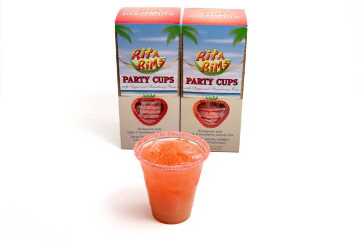 Copos de festa Rita Rims. Deliciosas xícaras de festa com bordas que estão prontas para ir quando você estiver. Rita Rims são xícaras com sabor prontas que são perfeitas para qualquer bebida em qualquer ocasião. Fique picante com Salt & Lime ou desfrute do sabor doce de Sugar & Strawberry ou da delícia de Bloody Mary. 100% comestível e duram incríveis 3-4 bebidas em cada xícara, sem problemas antes e sem bagunça depois. Essas xícaras são perfeitas para o barco, piscina, golfe, festas de aniversário, churrascos, festas mexicanas. Eles também são divertidos para festas infantis. Margaritas, especiais do clube, limeades, cerveja, daiquiris. Tudo fica melhor em um Rita Rim. Rita Rims é um ótimo presente para anfitriã, lembrancinha de festa e deve estar no topo da lista de verificação de suprimentos para festas.