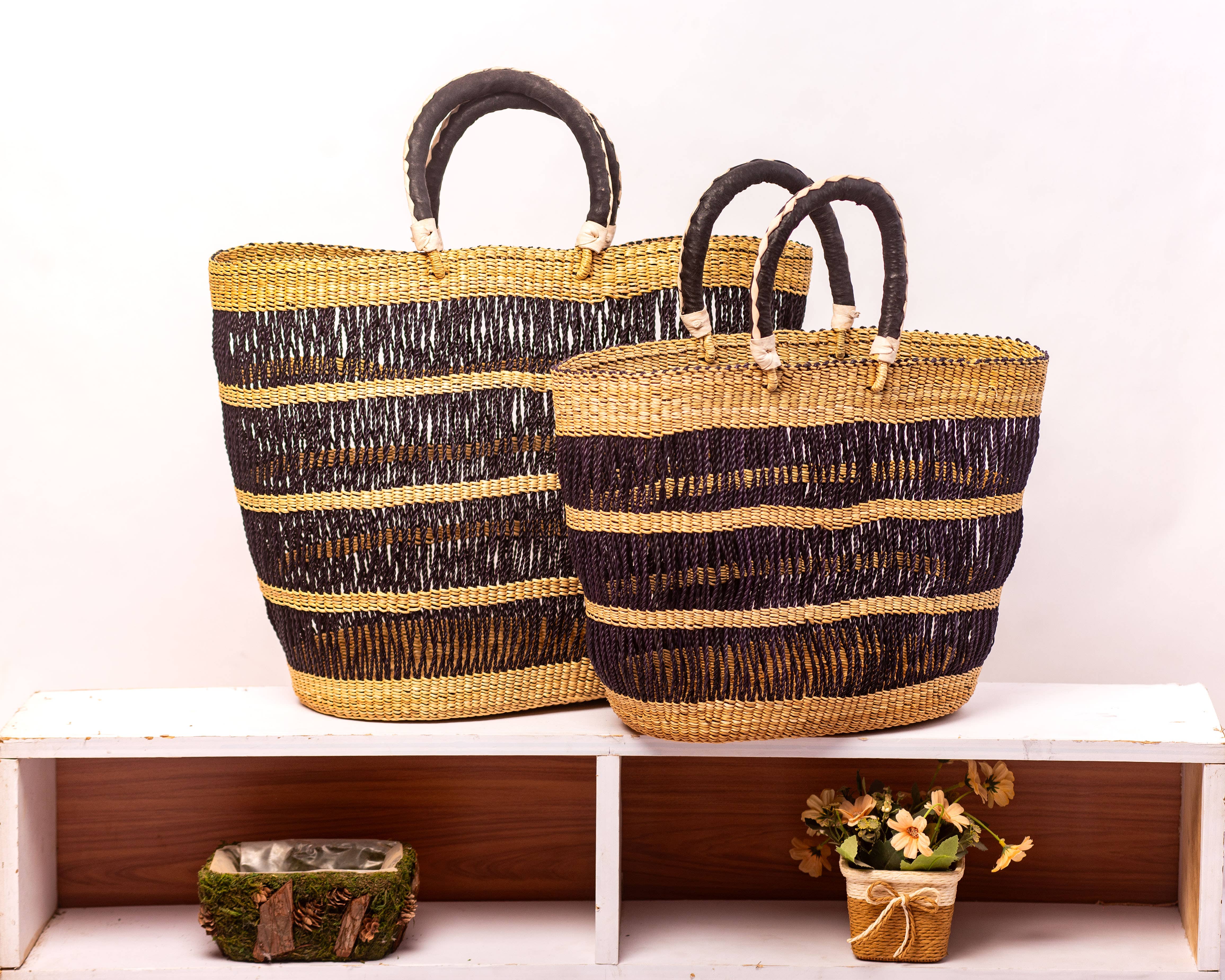As cestas Heritage Produzem Cestas e Sacos Bolga africanos de alta qualidade tecidos à mão autênticos e de alta qualidade. Estes cestos são cuidadosamente trabalhados e tecidos à mão por incríveis artesãos qualificados em Bolgatanga Gana. Os nossos cestos são eticamente feitos de toda a relva natural do mar, são funcionais, duráveis, bonitos e acima de tudo de longa duração