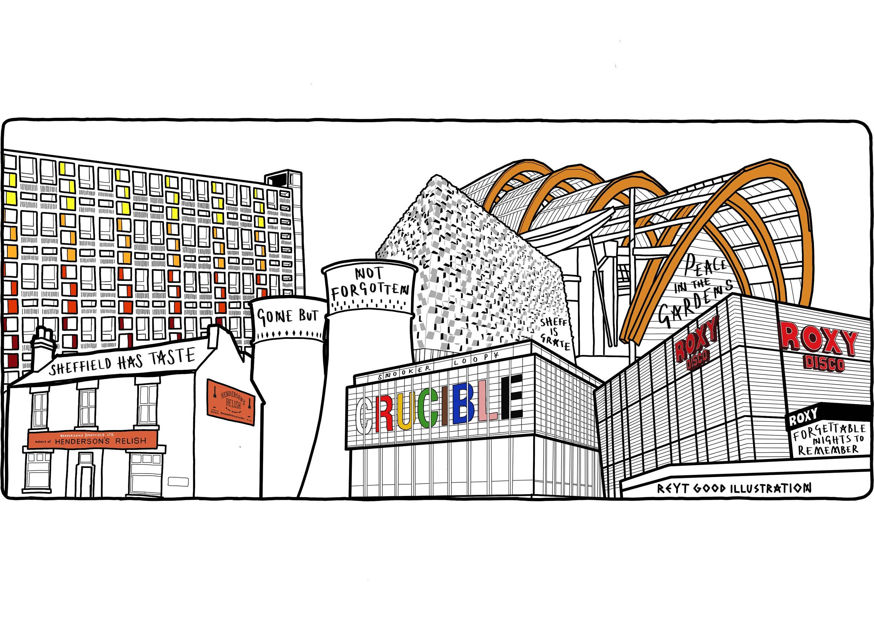 Reyt boa ilustração nasceu de todos os meus amores: ilustração, música, esporte, viagens e, claro, minha casa e maior amor - Sheffield. Adoro criar trabalhos no meu próprio estilo para permitir que as pessoas desfrutem e se regozijem com seus próprios amores, seja sua cidade natal, sua música favorita ou seu time de futebol favorito. Depois de estudar Arte e Design e suportar uma série de papéis de marketing insatisfatórios, decidi que era hora de morder a bala e seguir minha paixão pela ilustração em tempo integral. Com o objetivo de criar obras de arte que possam ser apreciadas e apreciadas comercialmente e pessoalmente, quero que meu trabalho junte comunidades, arquitetura e paixões compartilhadas.
