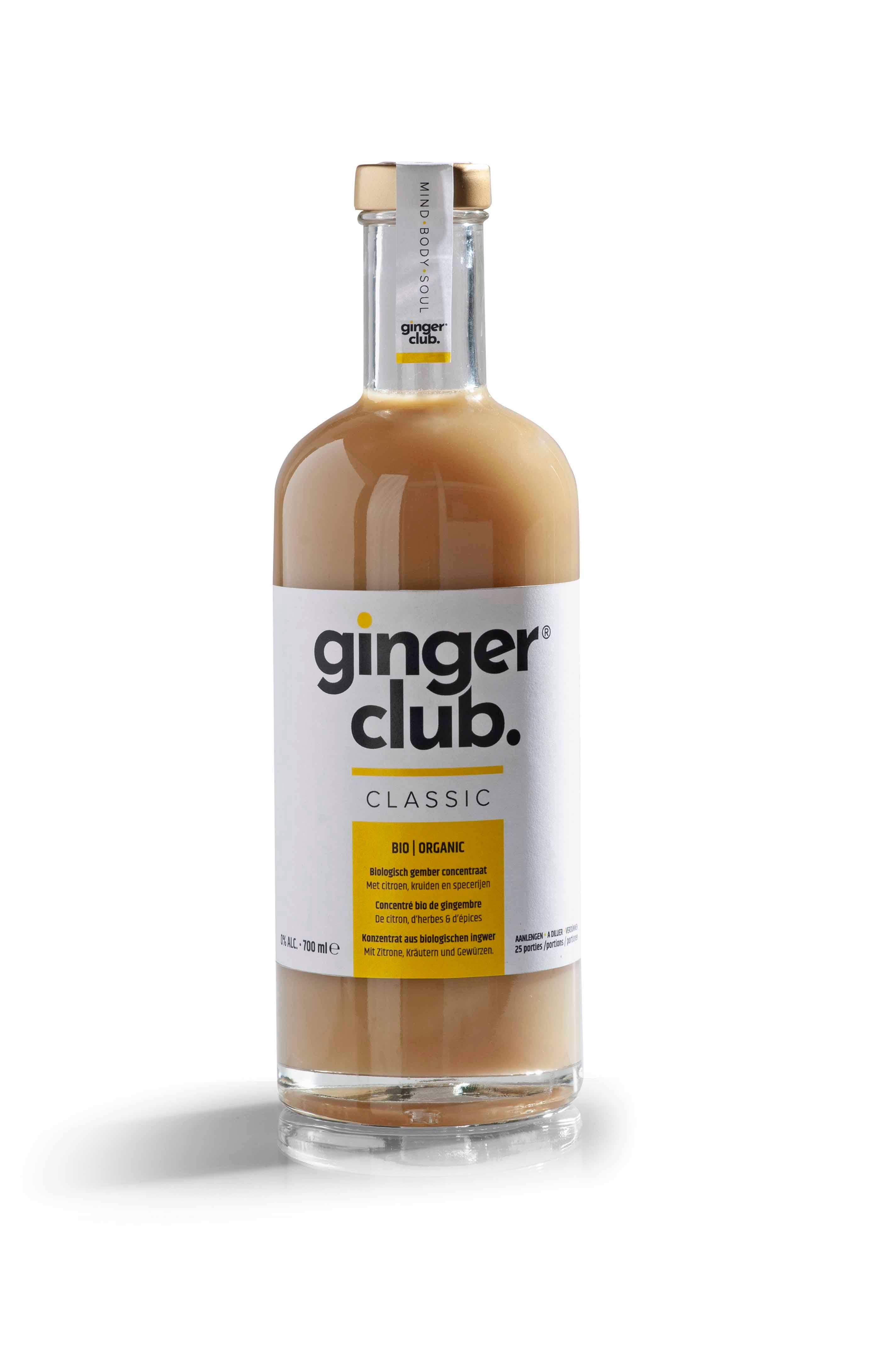 Depois de anos a ocupar cargos comerciais, Lieselot Dumoulin, mulher desportiva apaixonada e mãe de dois filhos, decide vir à ribalta. Hoje, lança a sua própria marca de concentrado orgânico de gengibre isento de álcool: 'gingerclub'. Lieselot procurava uma alternativa saudável às muitas bebidas alcoólicas, açucaradas e ricas em cafeína que já apareceram no mercado. O seu objetivo? Crie uma bebida honesta, local, saborosa e, acima de tudo, saudável sem ter de trabalhar com espremedores e outros eletrodomésticos de cozinha. Depois de um ano de provas e degustação, Lieselot cria 'clube de gengibre classic'. O concentrado de gengibre orgânico é feito com gengibre peruano e é macio no sabor, acessível e baixo teor de açúcares. A história do clube do gengibre não se fica por aqui. Lieselot experimenta mais com o sumo de cranberry em casa e muitas vezes combina o sumo com o gengibre peruano prensado em casa, um tipo que é muito mais cheio e rico em sabor. O seu ambiente reage tão entusiasticamente a esta combinação que prontamente leva a uma variante do picante 'clube de gengibre classic': o 'clube de gengibre cranberry'. Juntamente com os seus parceiros, a Lieselot continua à procura das soluções mais sustentáveis, locais e saudáveis e está preparada para conquistar corações com a gingerclub. clube de gengibre — Algo para a tua mente, o teu corpo e a tua alma O gingerclub está disponível em frascos de 700 ml, 500 ml e 200 ml.