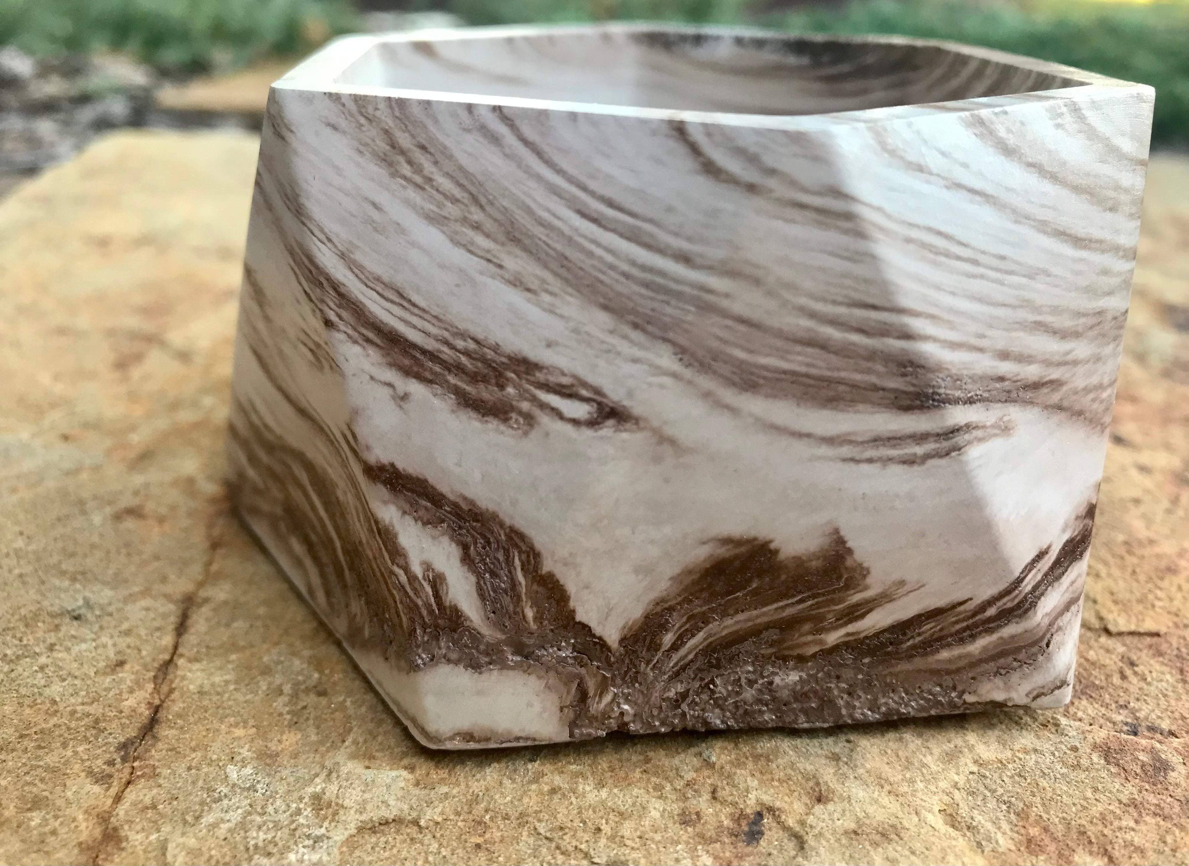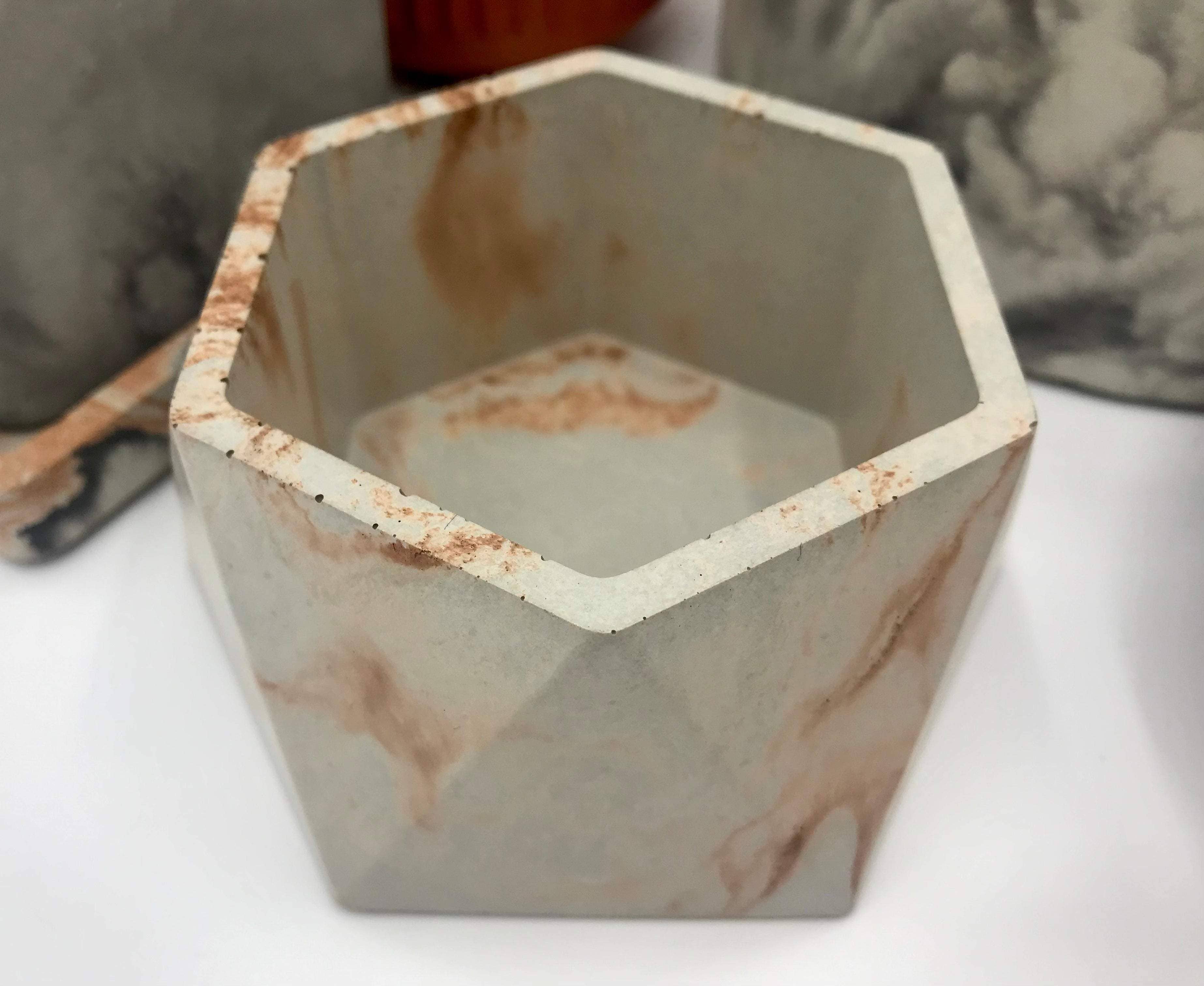 Cada vela é despejada em um recipiente artesanal exclusivo e deve ser reaproveitada assim que a cera for usada. Beeswax candles + vessels é o mais recente projeto da pintora e escultora Jennifer Dunn de Denton, Lithos Alight. O brilho âmbar quente e o cheiro de mel defumado da cera de abelha pura são únicos em um mundo de velas onde a fragrância é tão popular; oferecendo uma alternativa limpa para aqueles que têm sensibilidades. Emparelhado com vasos criados para adicionar interesse visual, completos com nomes inspirados na natureza. O concreto artesanal e o pigmento mineral se formam em padrões aleatórios que acendem uma sensação de beleza e inspiram admiração no mundo do movimento capturado, como se fosse um instantâneo no tempo.