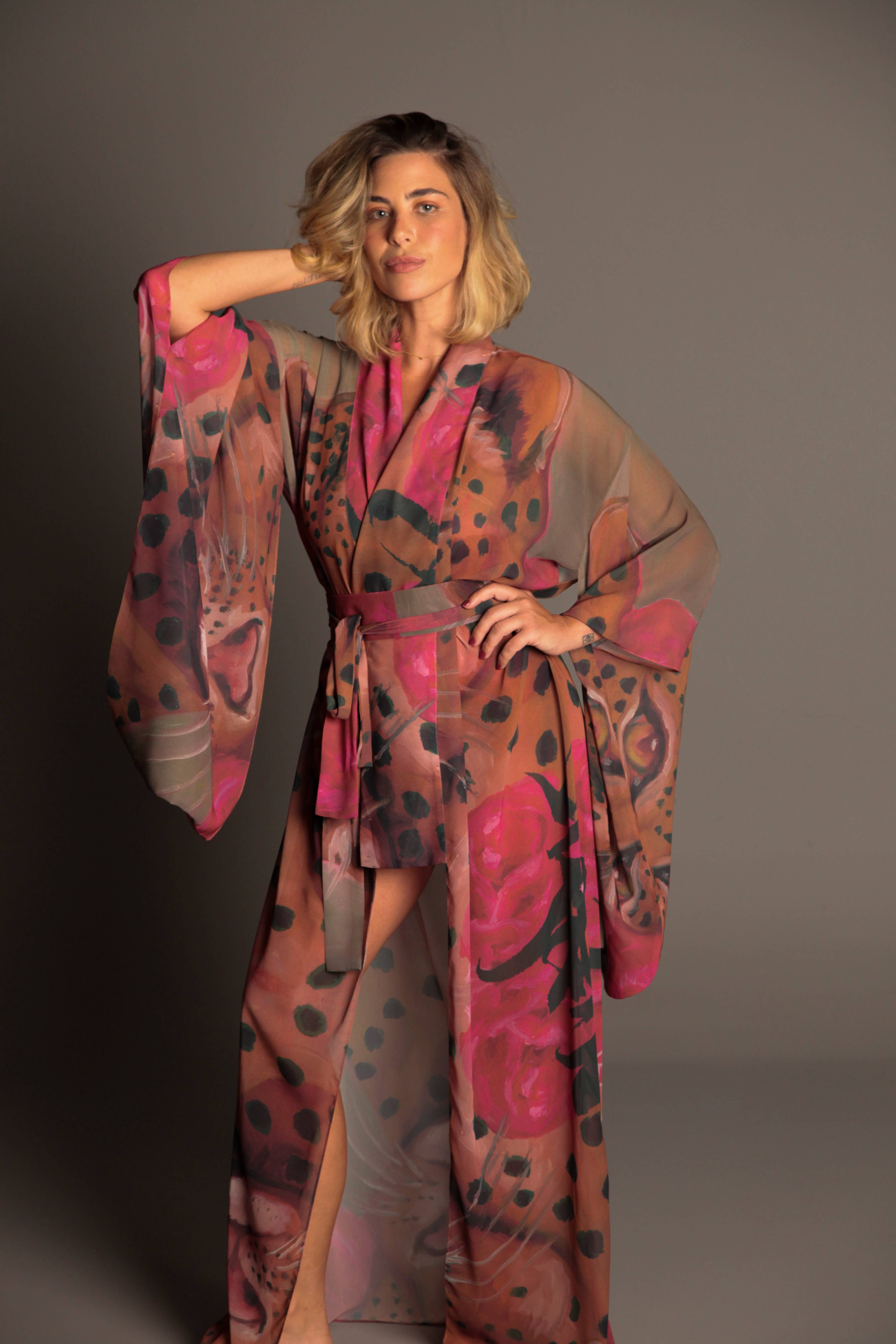 A marca de quimonos MariaSanz nasceu em 2013 como uma forma de transformar conversa em tecido. MARIA QUERIA ALGO QUE TRANSCENDESSE A MODA E AS TENDÊNCIAS. Que resgatasse a essência de quem o veste, que servisse como um amuleto e que pudesse ser tão íntimo que, ao menor medo de exposição, se tornasse proteção. As estampas são criadas por ela, inspiradas muito mais pelas suas experiências do que pelas tendências. É por isso que todos que o conhecem se apaixonam. Os seus quimonos representam a arte de se vestir. QUIMONO PARA SAIR. PARA VIAJAR. PARA FESTEJAR. Para ser. Porque na prática ela os vê como mais do que apenas uma peça de roupa ou um vestido – mas como um “Estilo de Vida”.