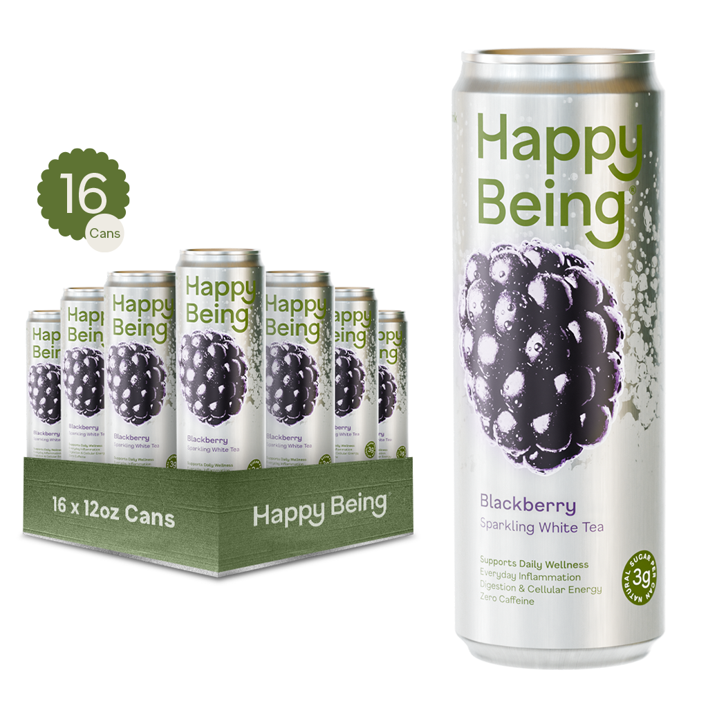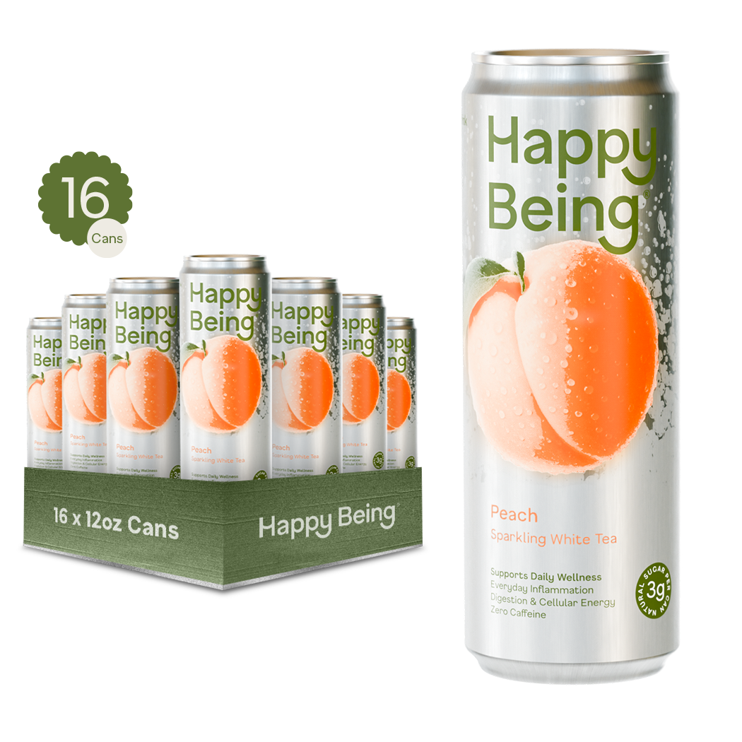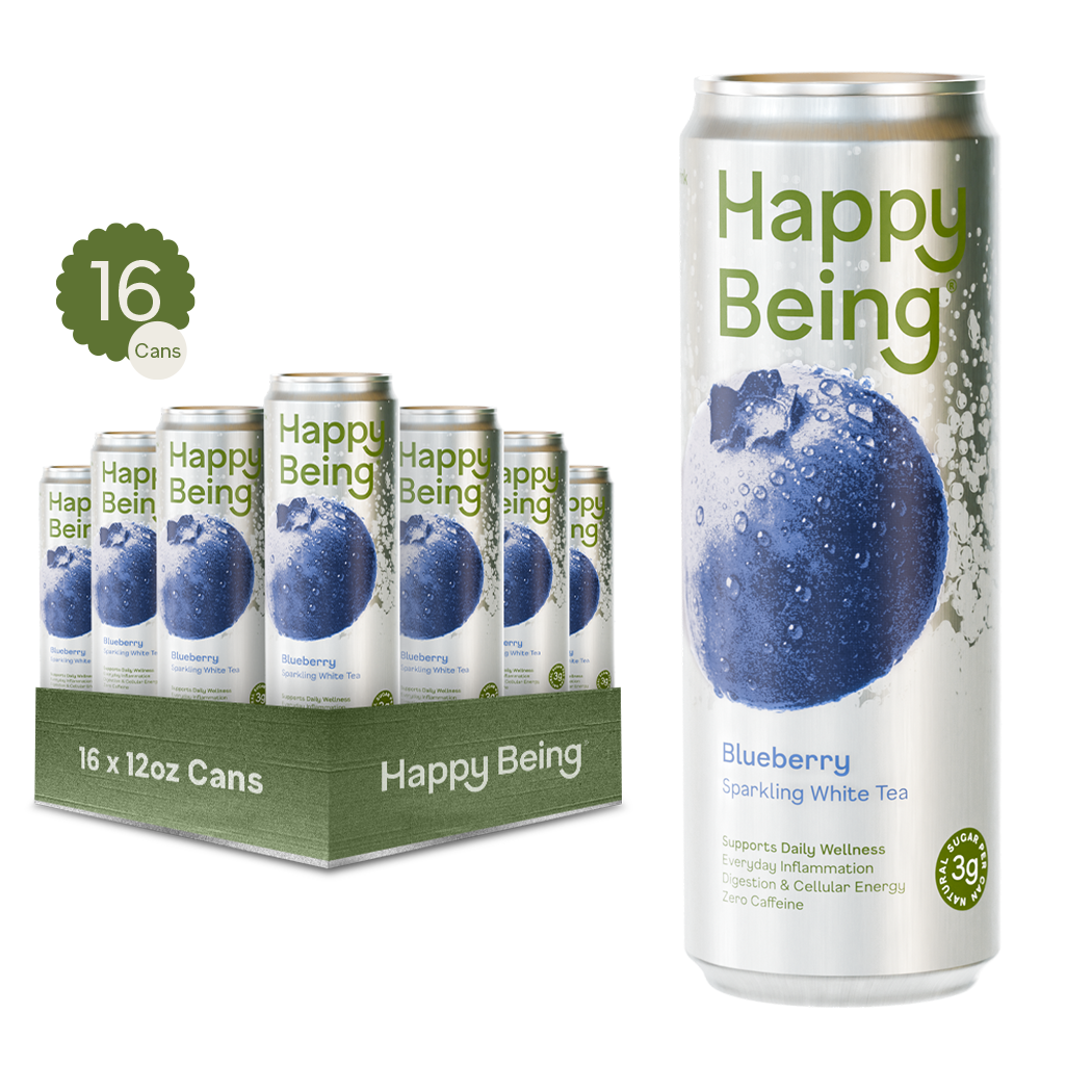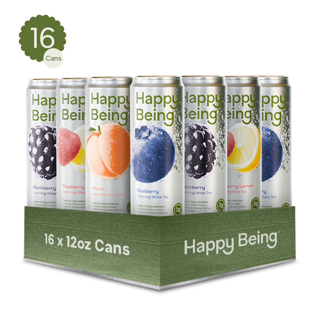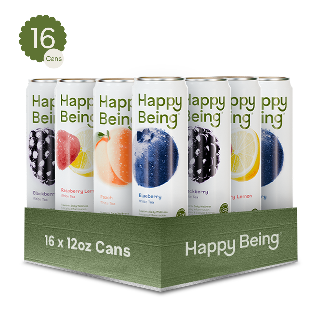 Saúde e felicidade, feitas de forma fácil e deliciosa. Happy Being é um chá branco refrescante elaborado com ingredientes para nutrir as áreas-chave da saúde que mais impactam diretamente a sua felicidade: reduzindo a inflamação, aumentando a vitalidade natural e apoiando a digestão. Happy Being é uma Potência de Bondade, criada por médicos que se preocupam tanto com a sua saúde quanto você. Os médicos de renome mundial Gerald Lemole, MD, e Leo Galland, MD, trouxeram mais de 50 anos de experiência clínica combinada para a criação do Happy Being®. Colocamos os compostos mais saudáveis em cada porção nas doses recomendadas pelos médicos e em formas bio-disponíveis, para resultados comprovados pela ciência. Colocamos os compostos mais saudáveis em cada porção nas doses recomendadas pelos médicos e em formas bio-disponíveis, para resultados comprovados pela ciência. Cada lata de 12oz está repleta dos incríveis benefícios para a saúde das quantidades ativas recomendadas pelos médicos de Cúrcuma, EGCG (chá verde), Pterostilbeno (de mirtilos), Sabugueiro e Vitamina C. Quanto mais você bebe, melhor se sente. Happy Being está disponível em 4 sabores deliciosos diferentes: Mirtilo, Amora, Framboesa Limão e Pêssego. Mesmos benefícios, diferentes sabores refrescantes.