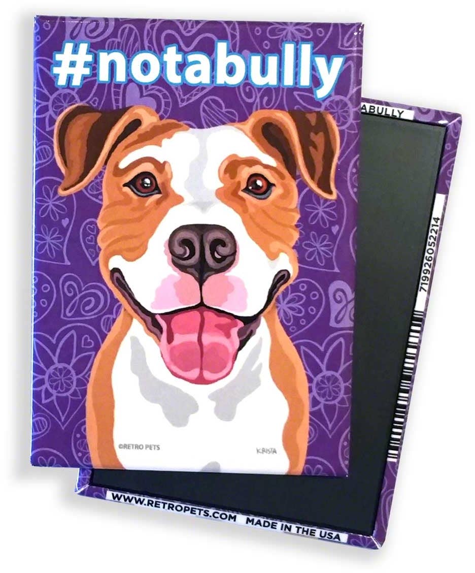 Ímã de geladeira resistente de 2,5" x 3,5", feito nos EUA. Este pacote de 4 ímãs para cães específicos da raça da artista Retro Pets Krista Brooks apresenta um Rottie resoluto que protegerá sua casa com uma atitude “Eu tenho suas costas”!